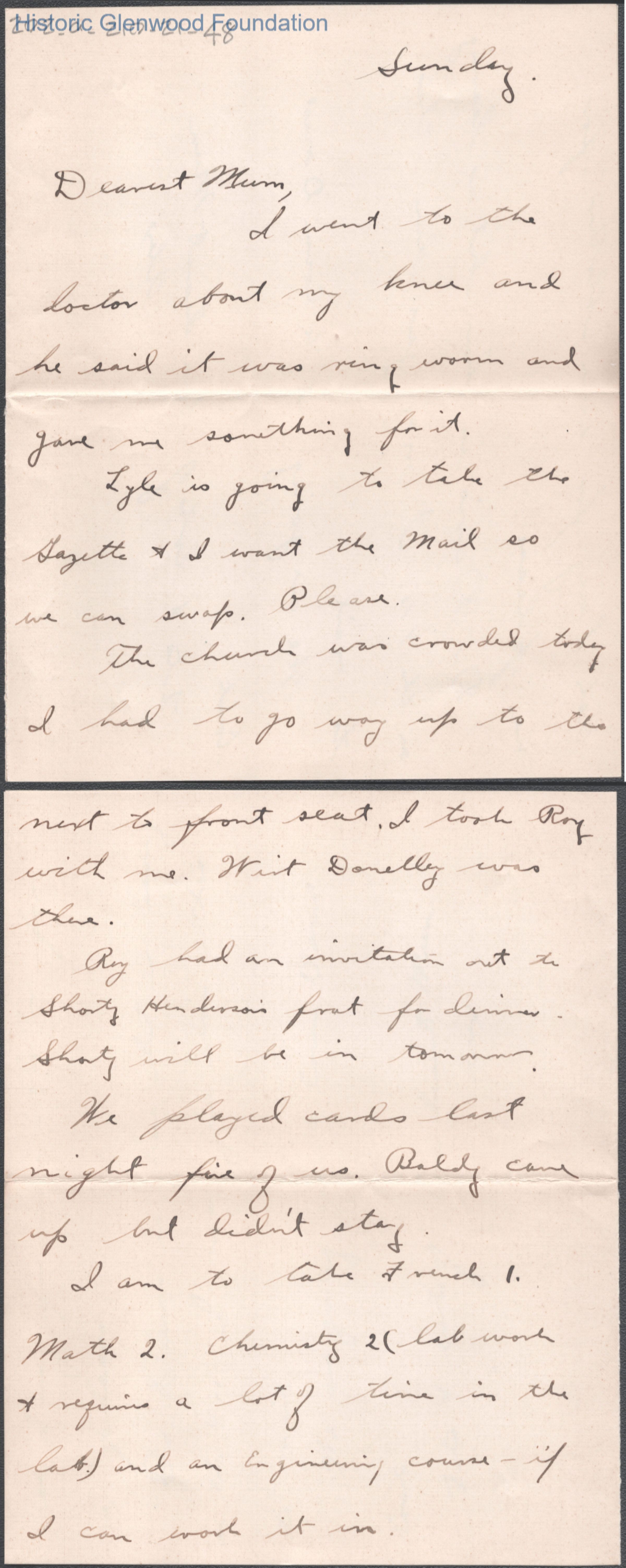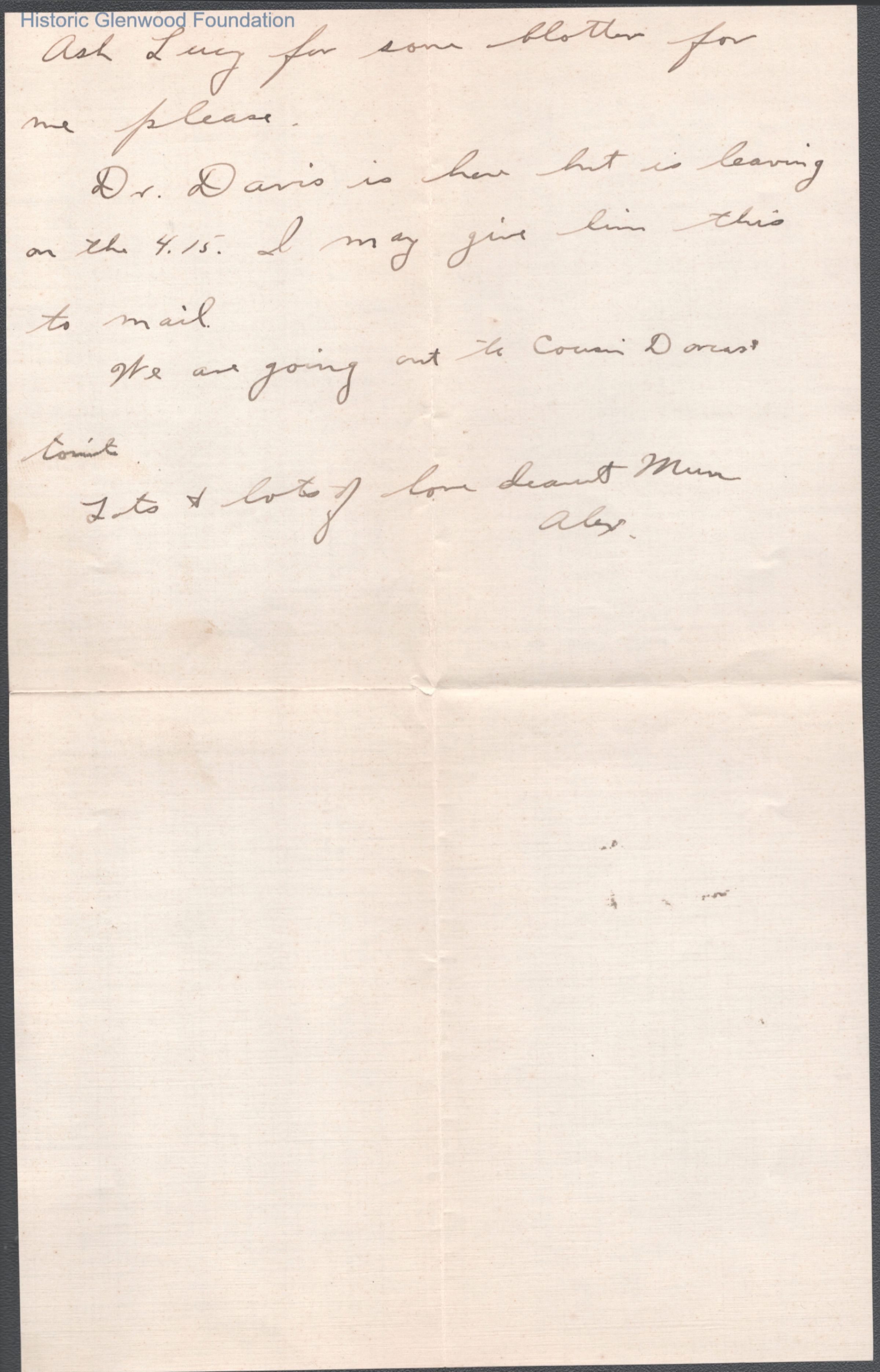Three-page letter to Elizabeth S. Quarrier from her son Alexander W. Quarrier, c. 1921.