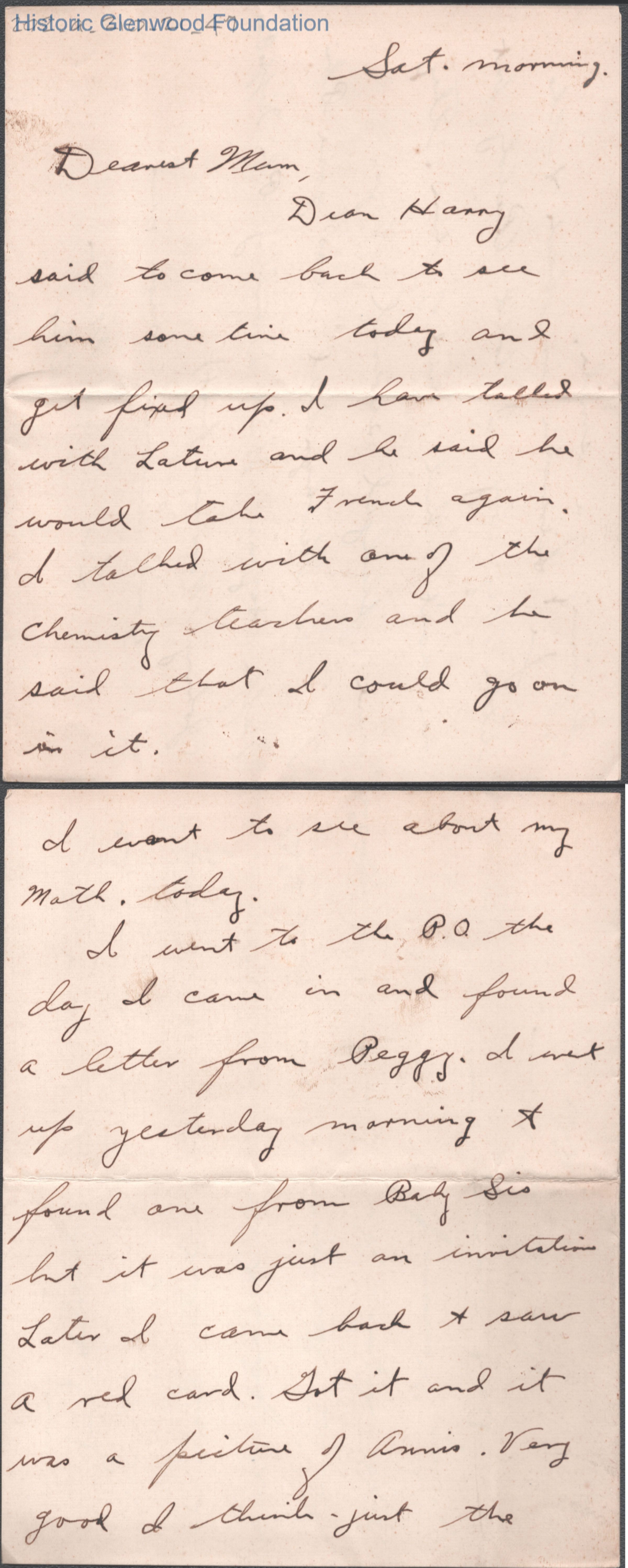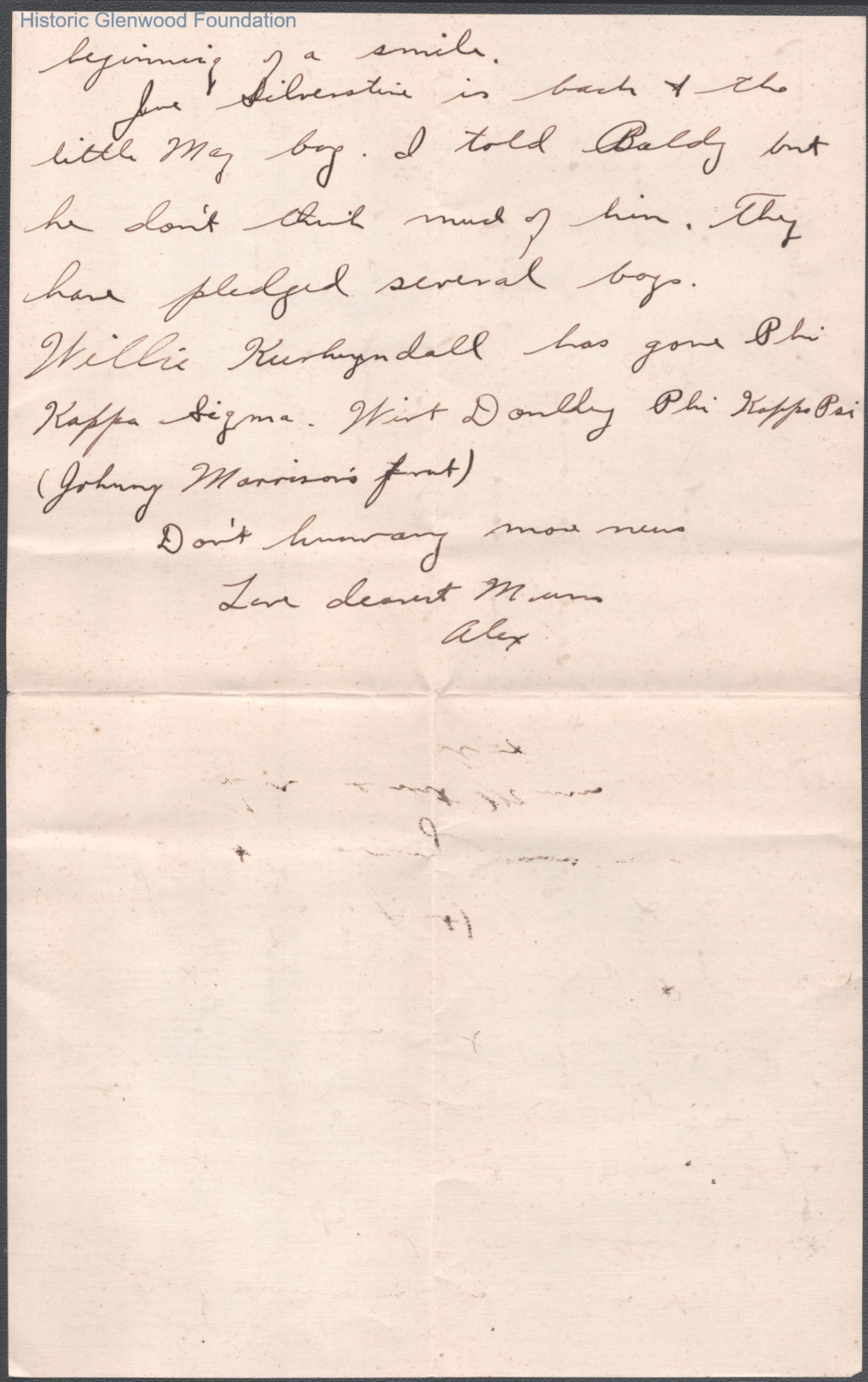 Three-page letter to Elizabeth S. Quarrier from her son Alexander W. Quarrier, c. 1921.