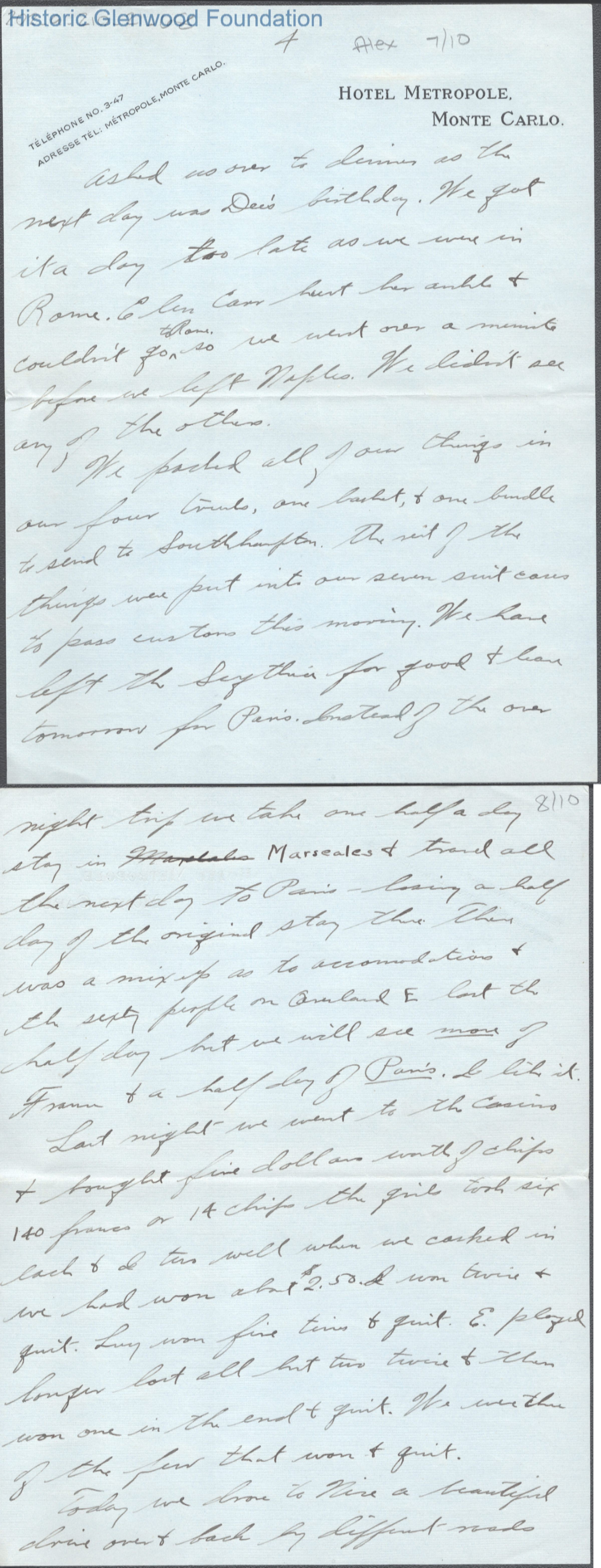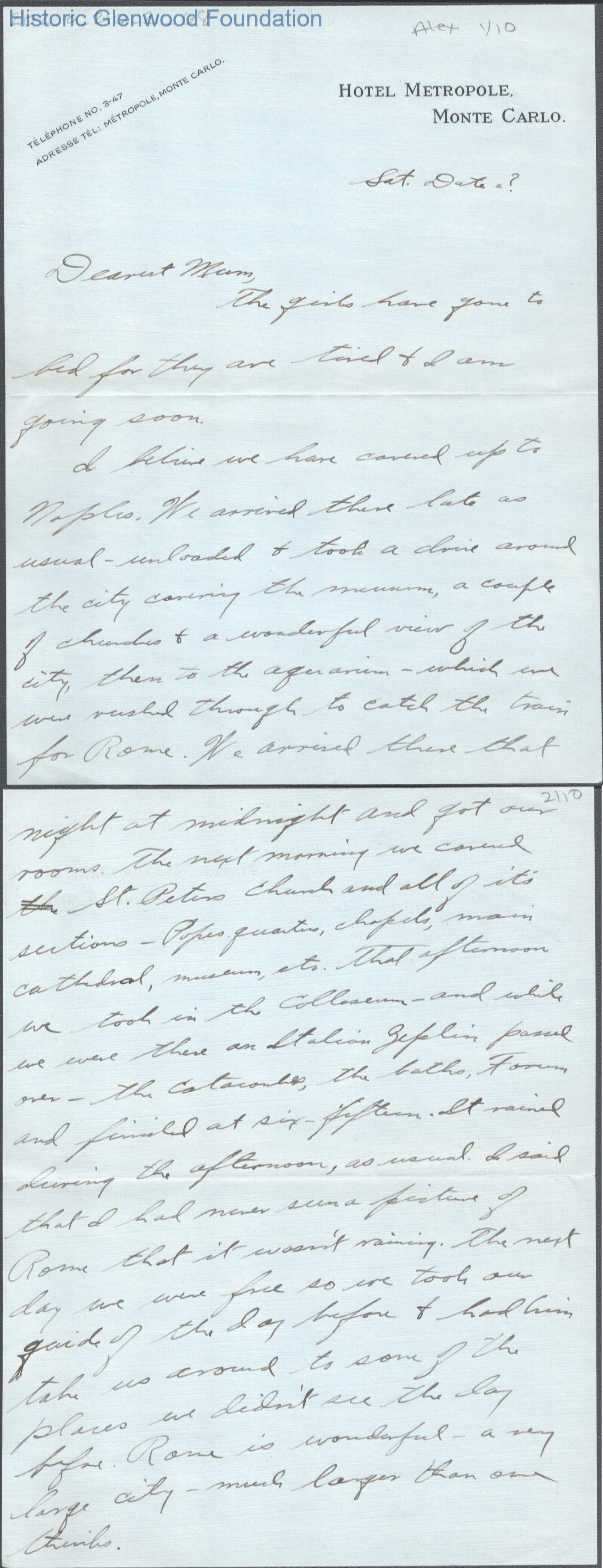Ten-page letter to Elizabeth S. Quarrier from her son Alexander W. Quarrier, c. 1926.