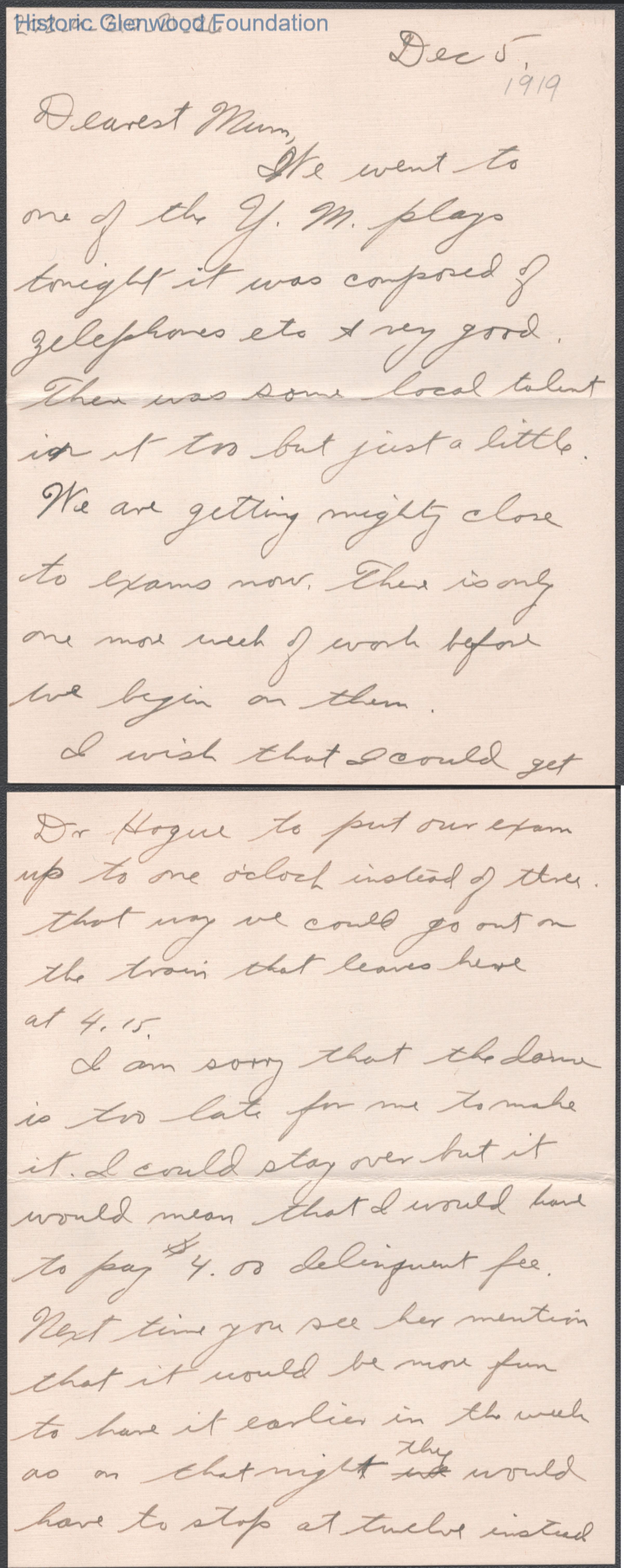 Three-page letter to Elizabeth S. Quarrier from her son Alexander W. Quarrier, dated Dec 5, 1919.