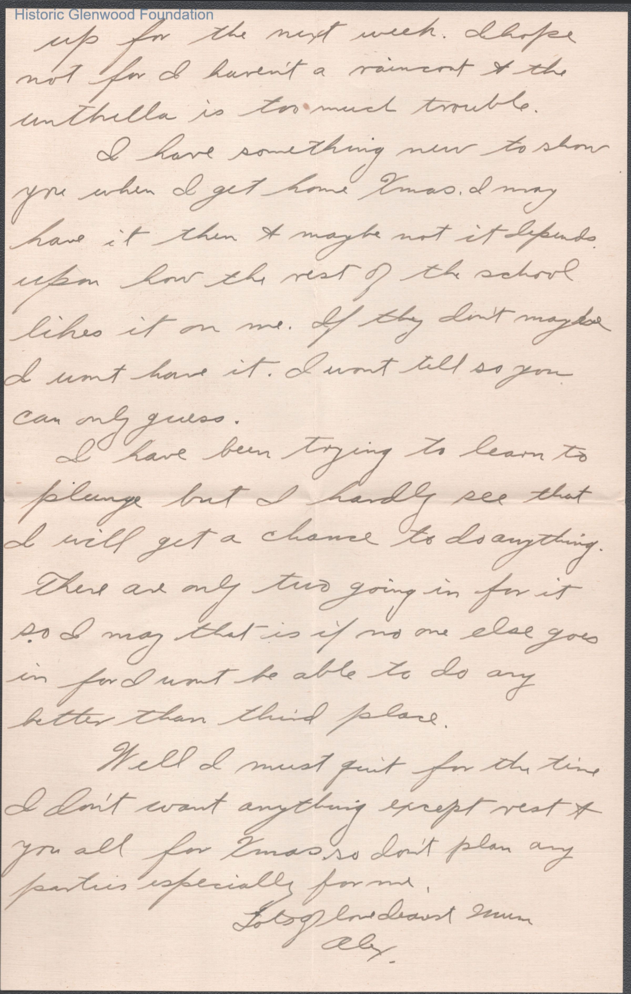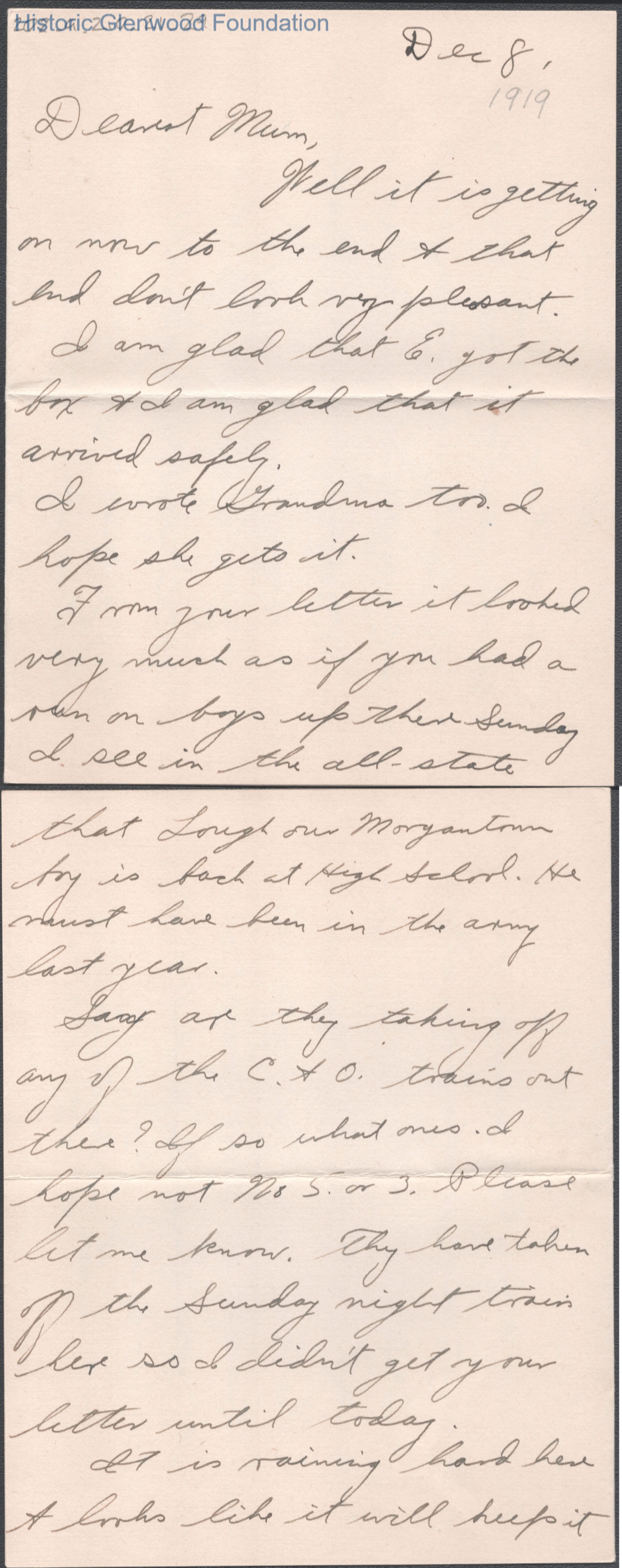 Three-page letter to Elizabeth S. Quarrier from her son Alexander W. Quarrier, dated Dec 8, 1919.