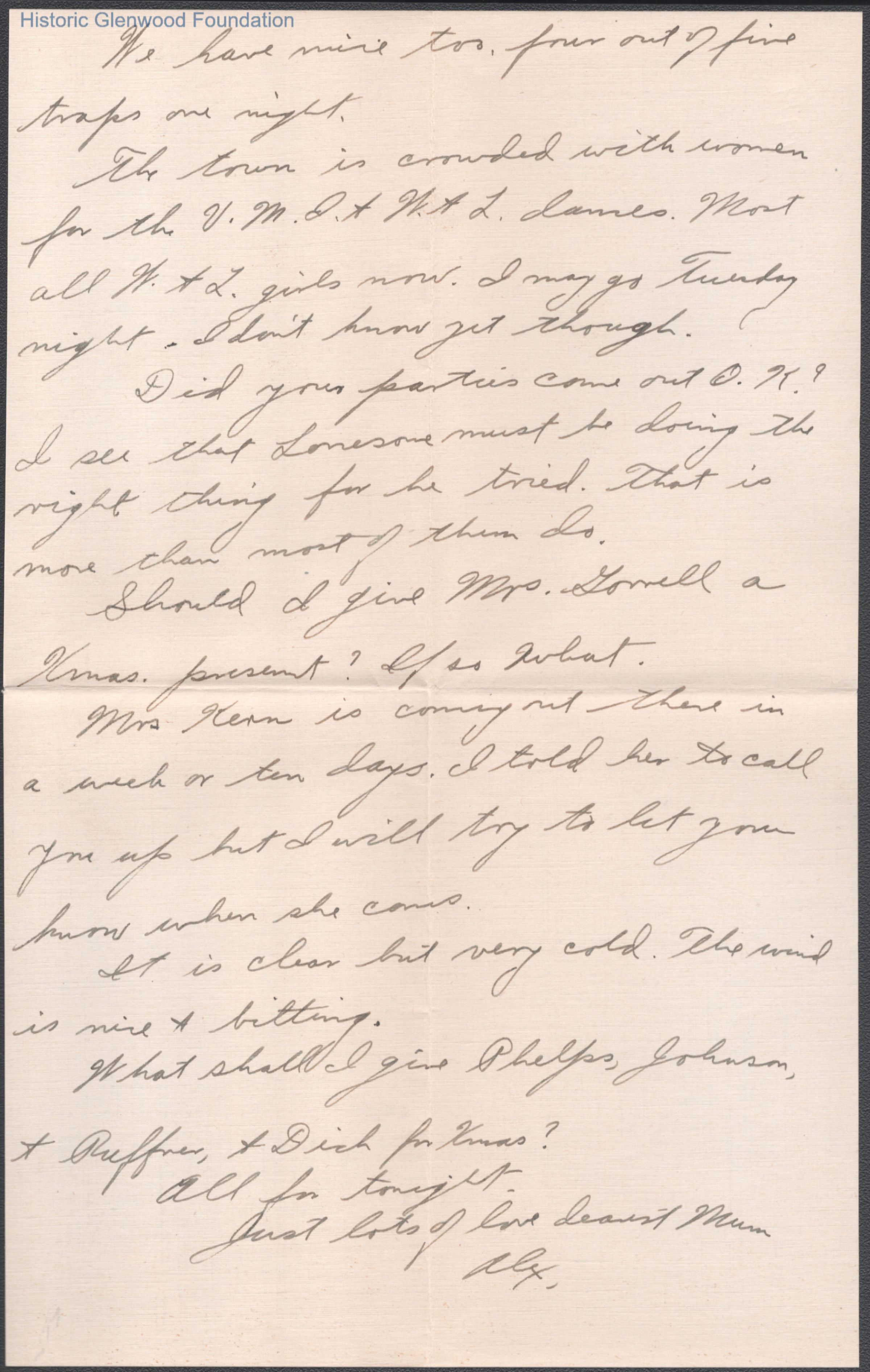 Three-page letter to Elizabeth S. Quarrier from her son Alexander W. Quarrier, dated Nov 30, 1919.