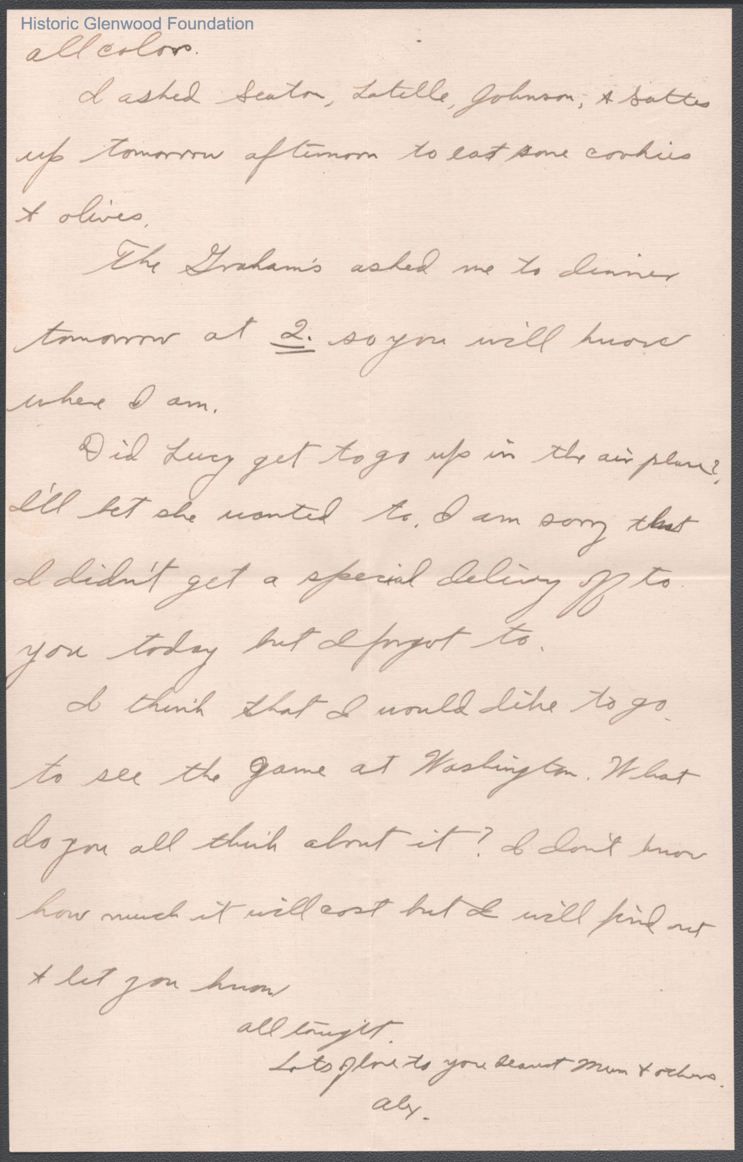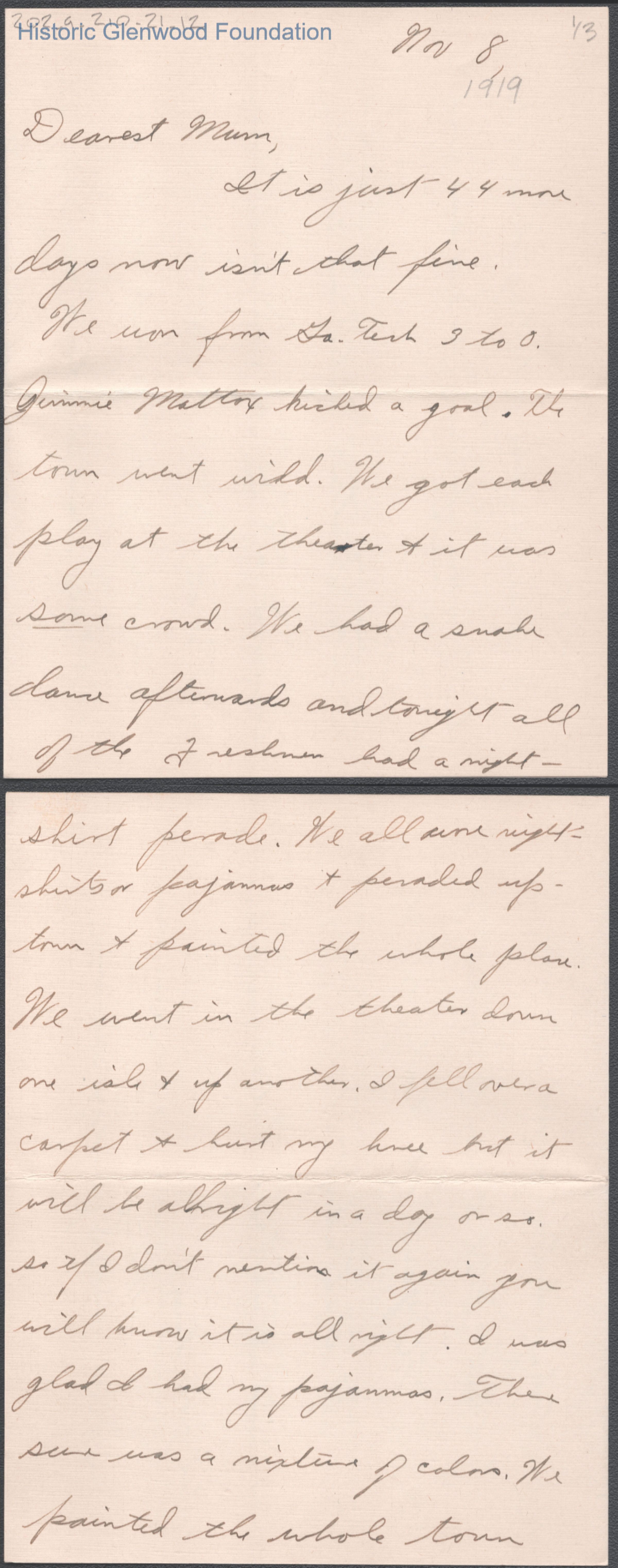 Three-page letter to Elizabeth S. Quarrier from her son Alexander W. Quarrier, Nov 8, 1919.
