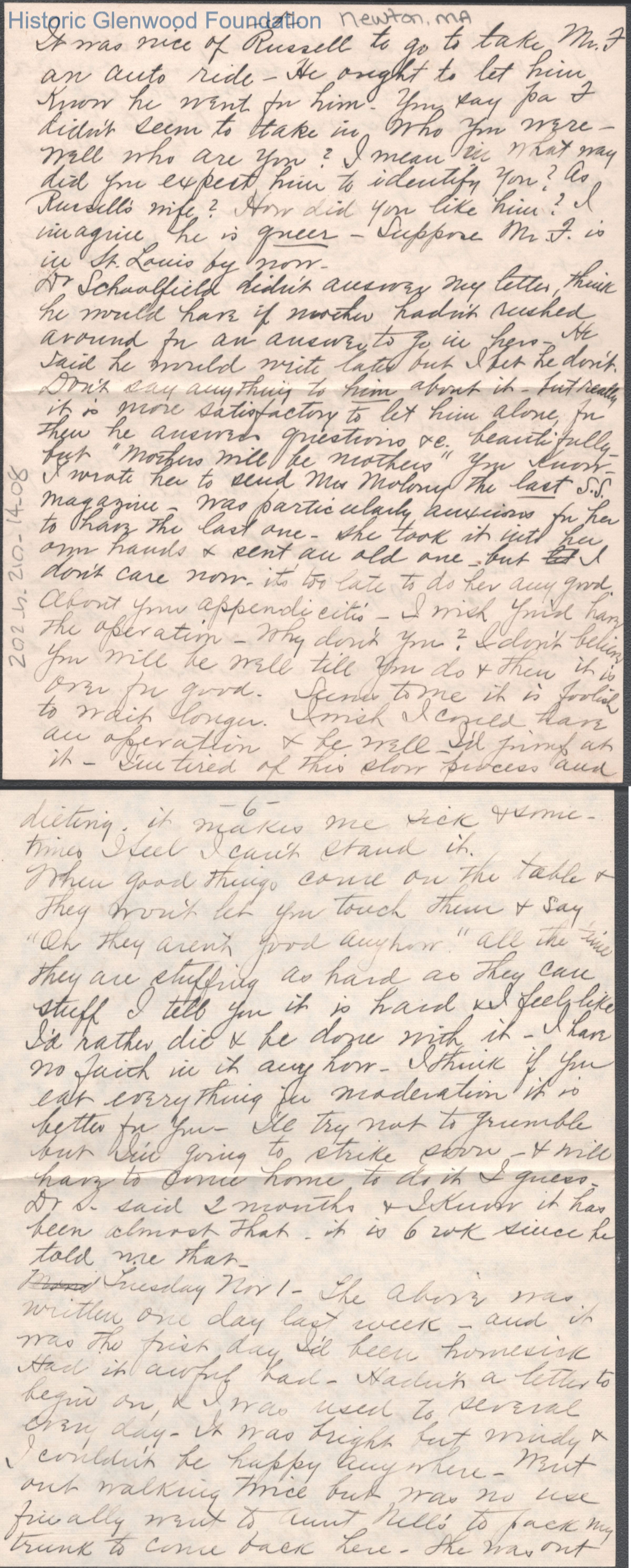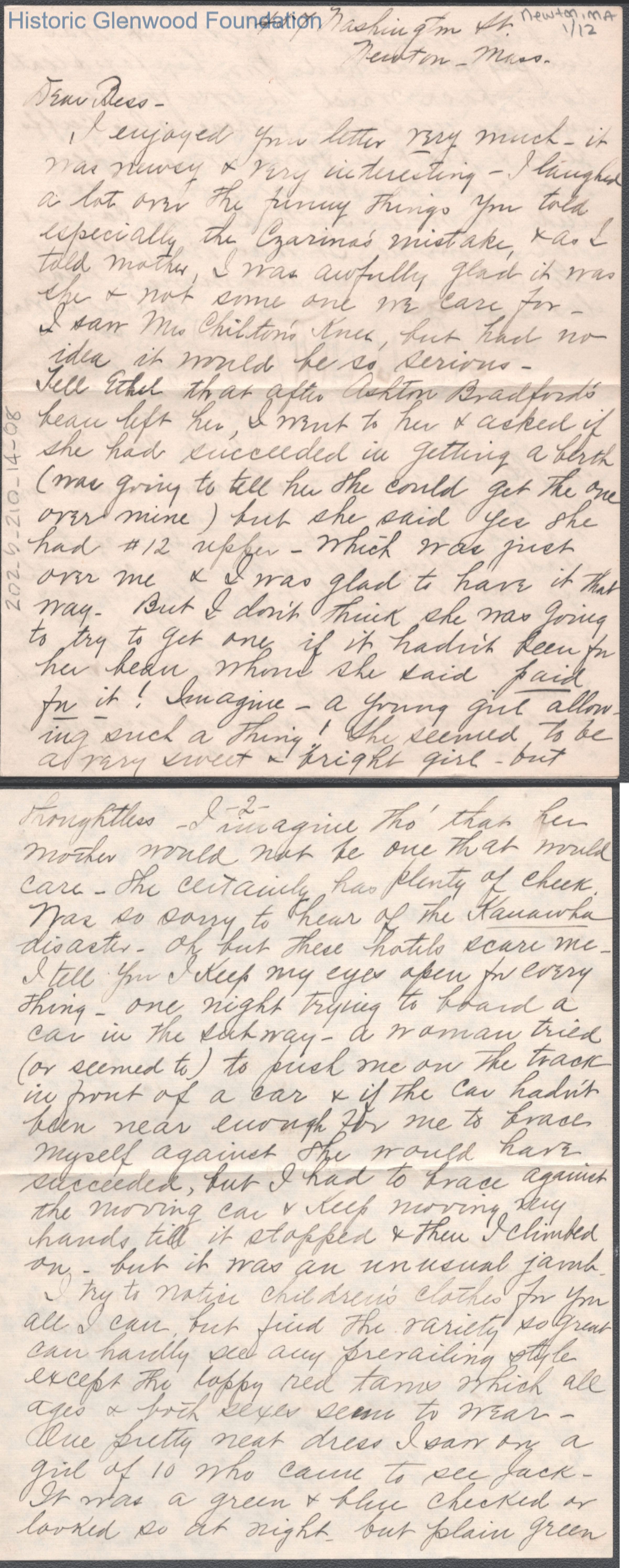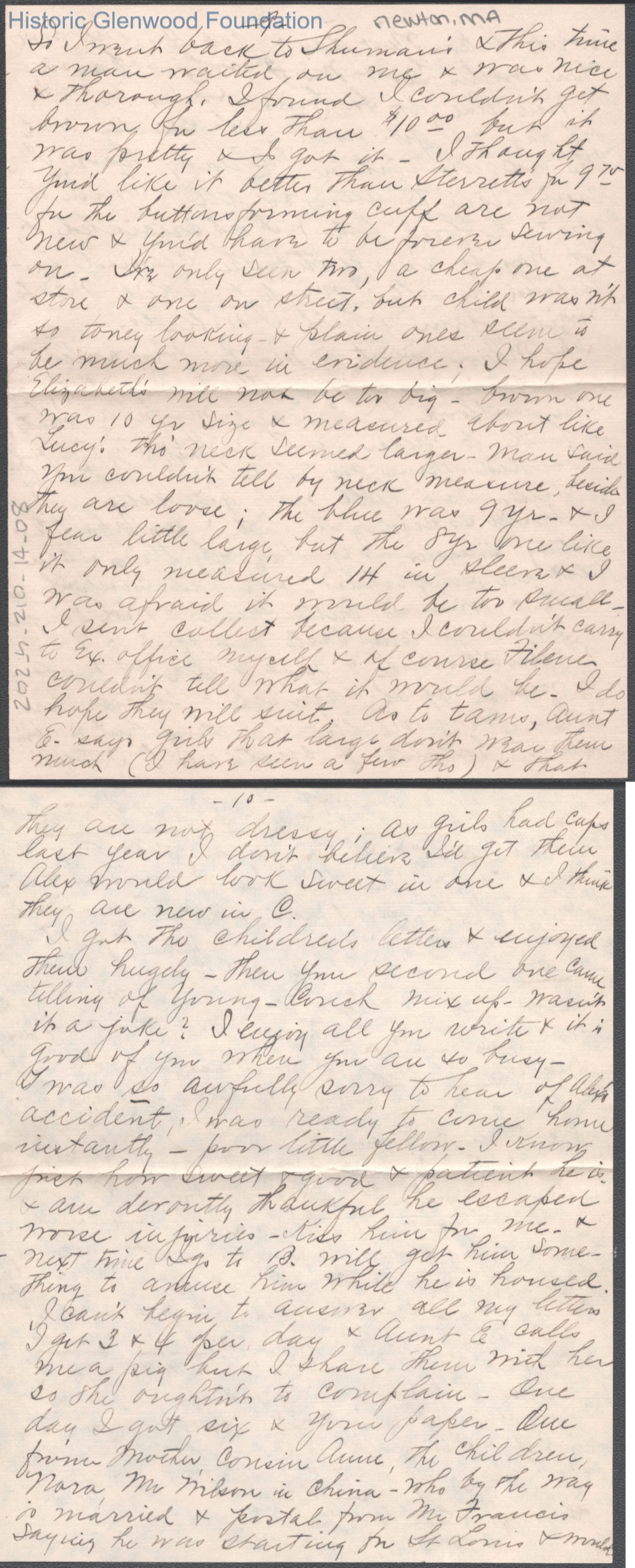Twelve-page letter to Elizabeth S. Quarrier from Amacetta Summers, no date.