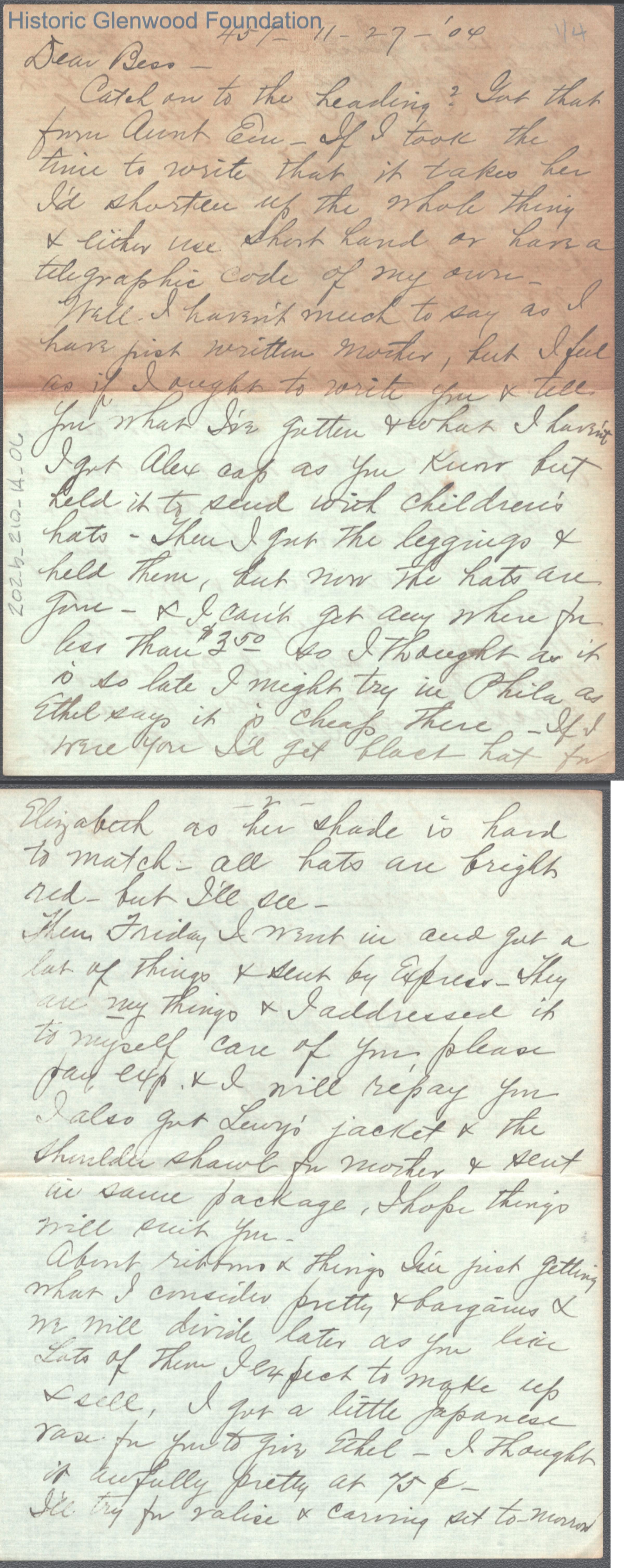 Elizabeth S. Quarrier from Amacetta Summers, Nov 27, 1904