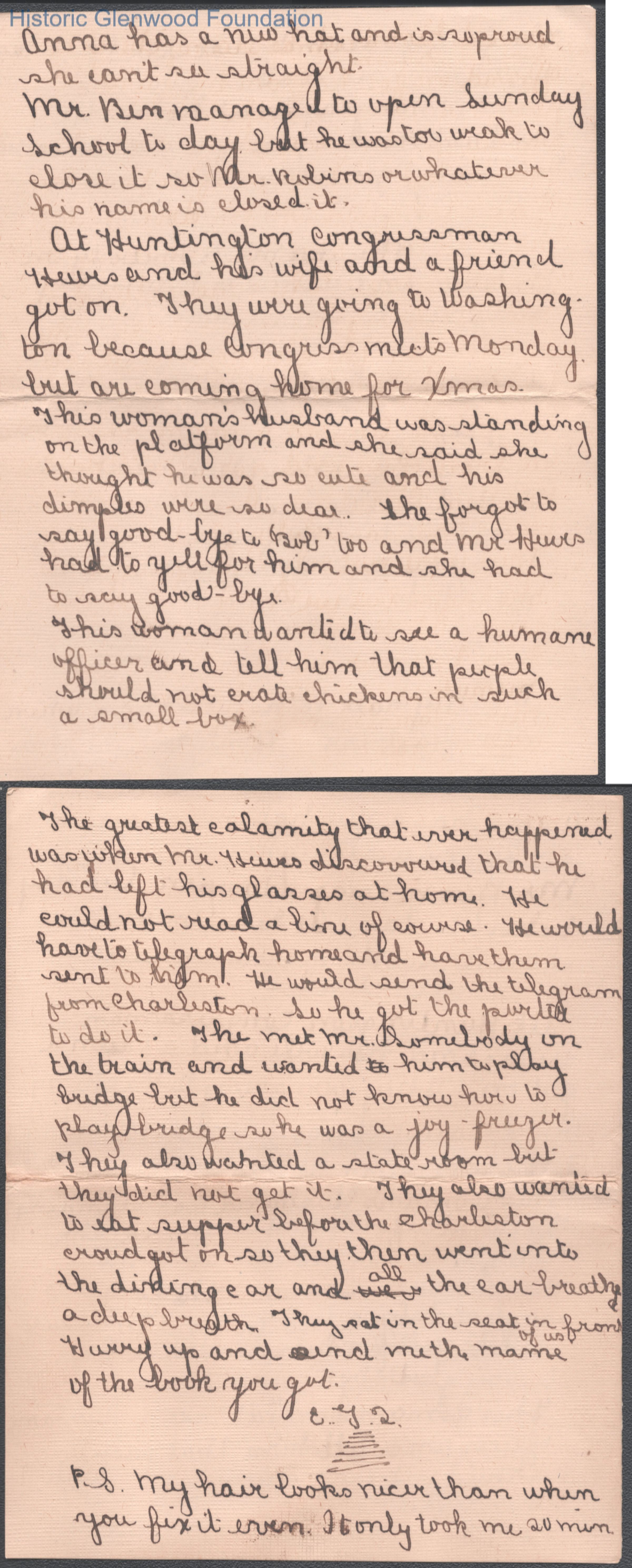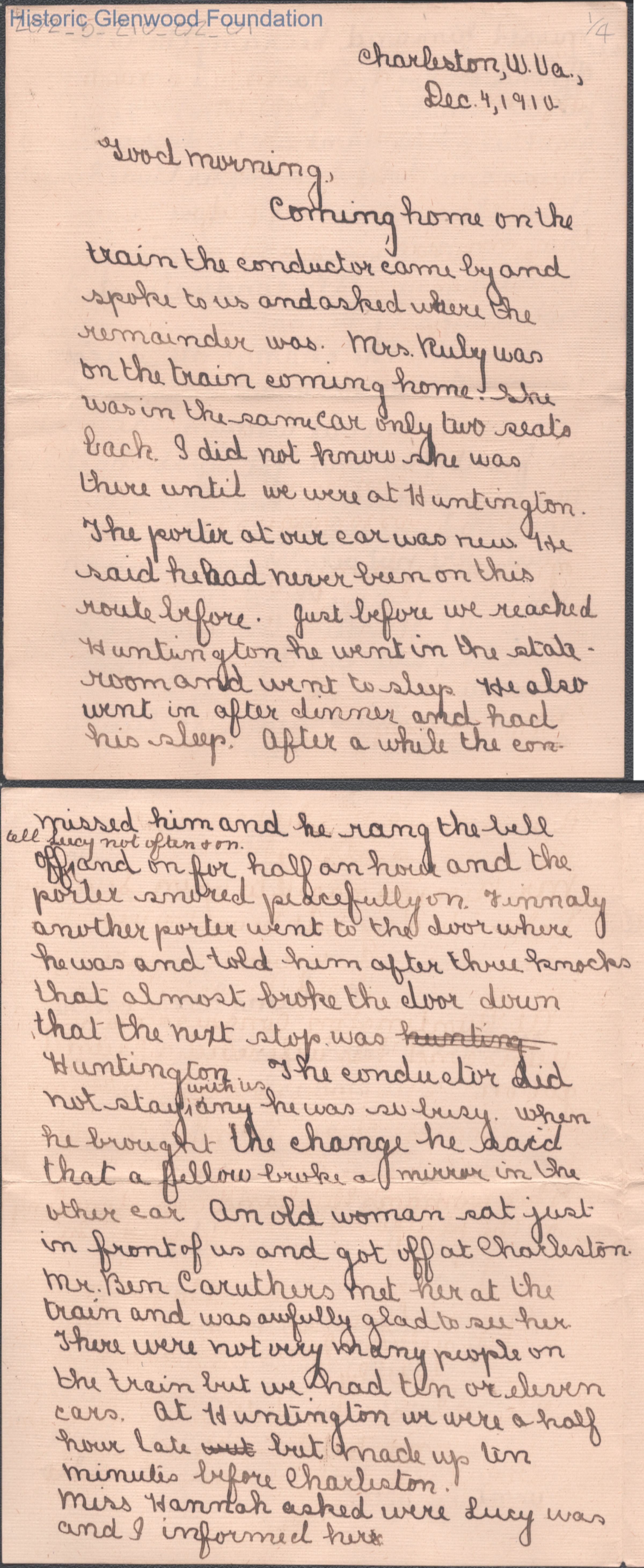 Four-page letter to Elizabeth S. Quarrier from Elizabeth G. Quarrier, Dec 4, 1910.