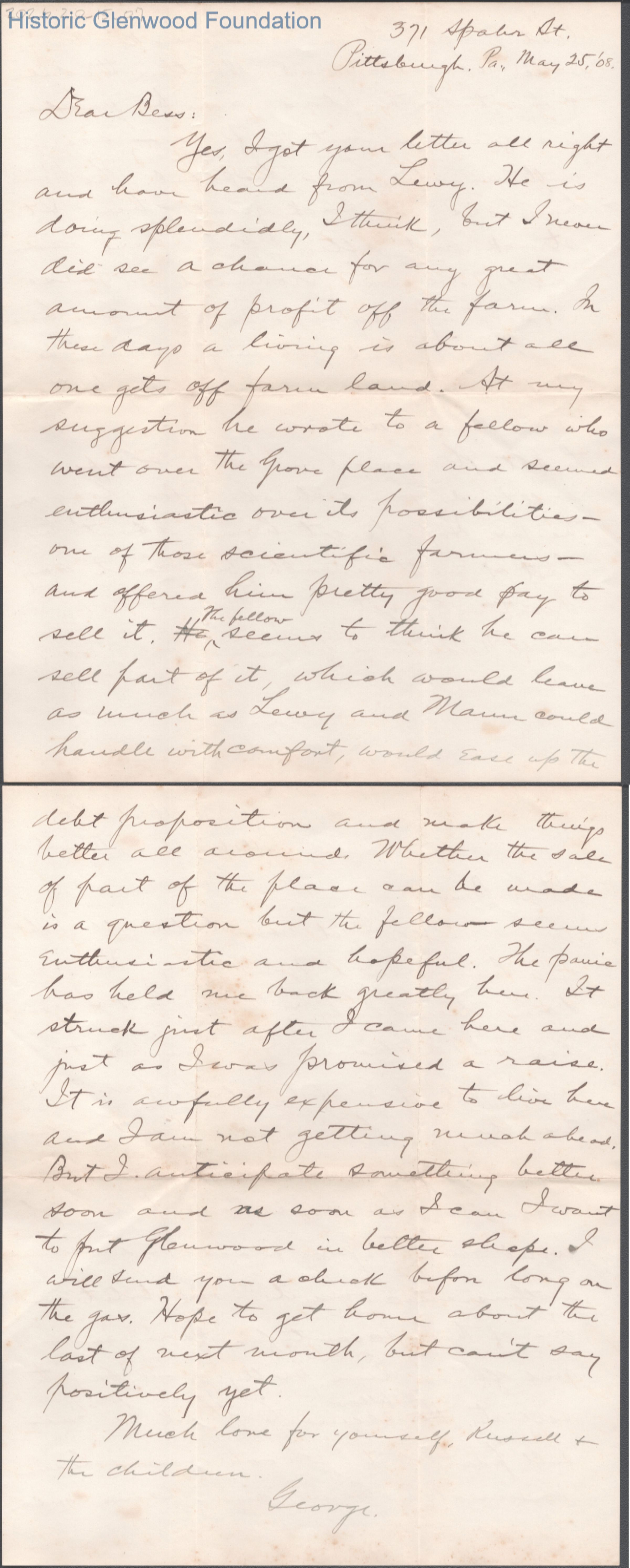 Two-page letter to Elizabeth S. Quarrier from George W. Summers, May 25, 1908.