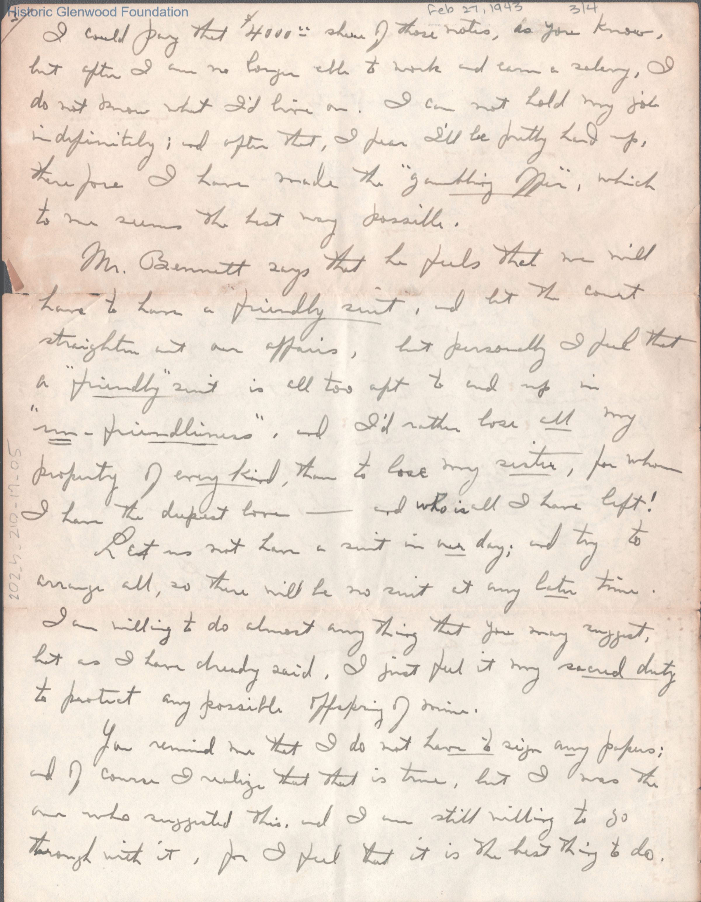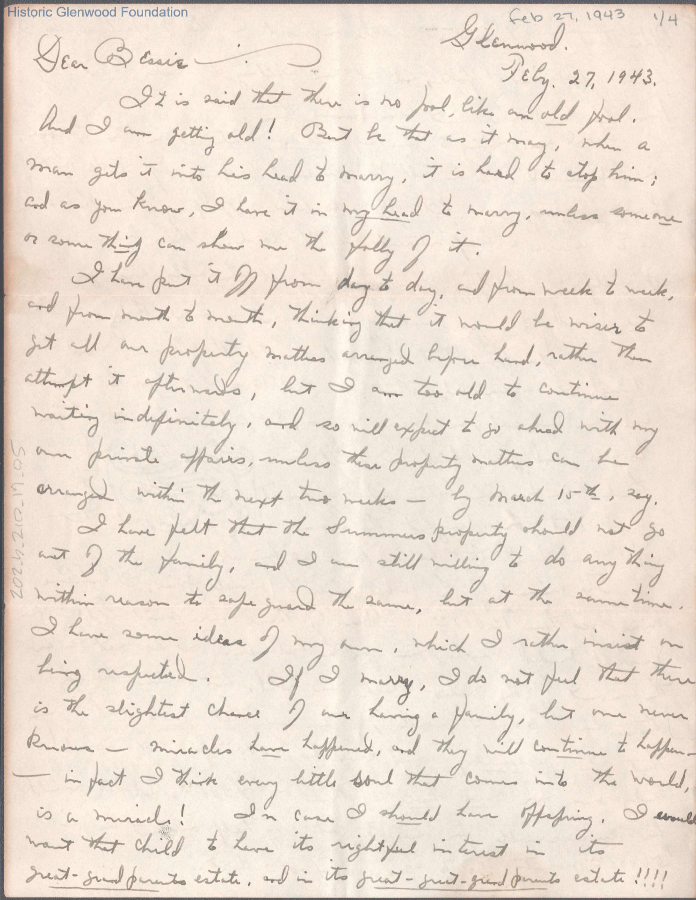 Four-page letter to Elizabeth S. Quarrier from Lewis Summers, Jr., Feb 27, 1943.