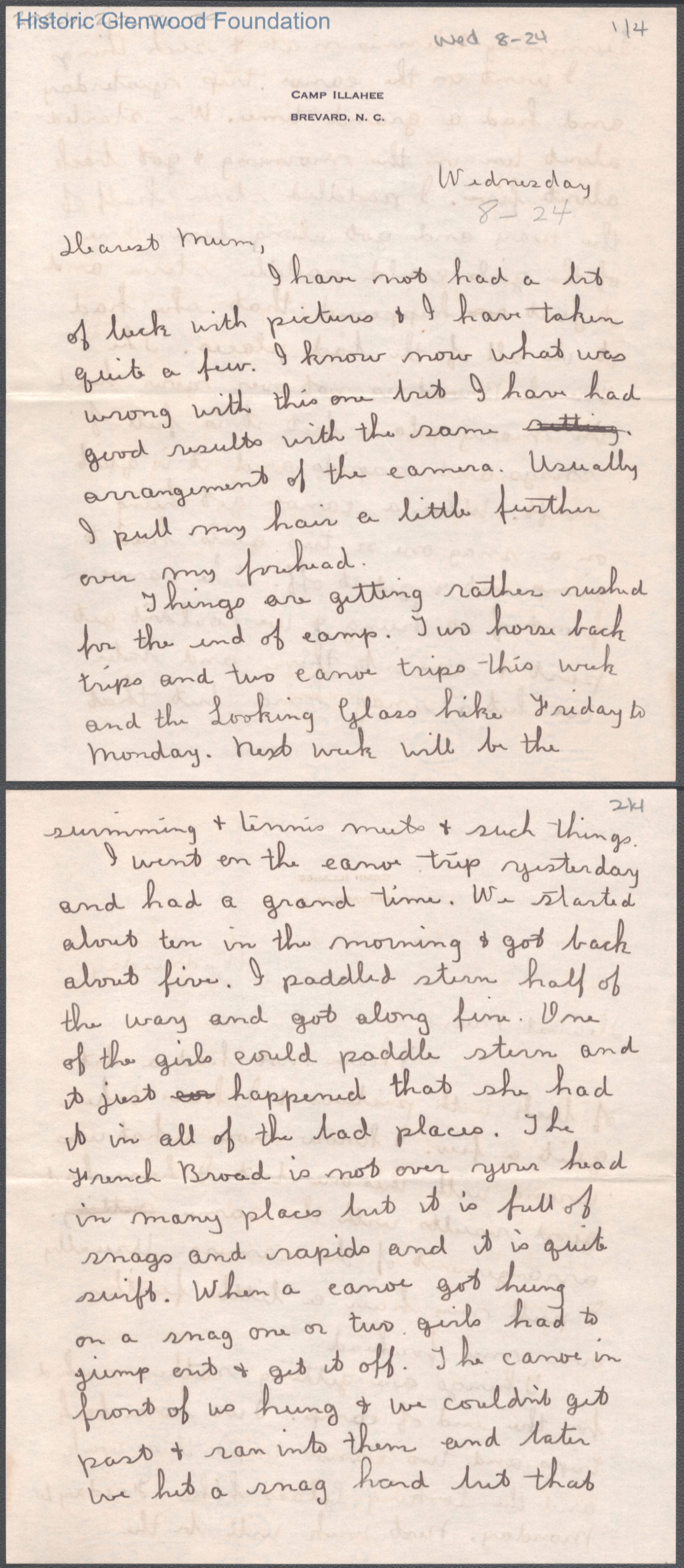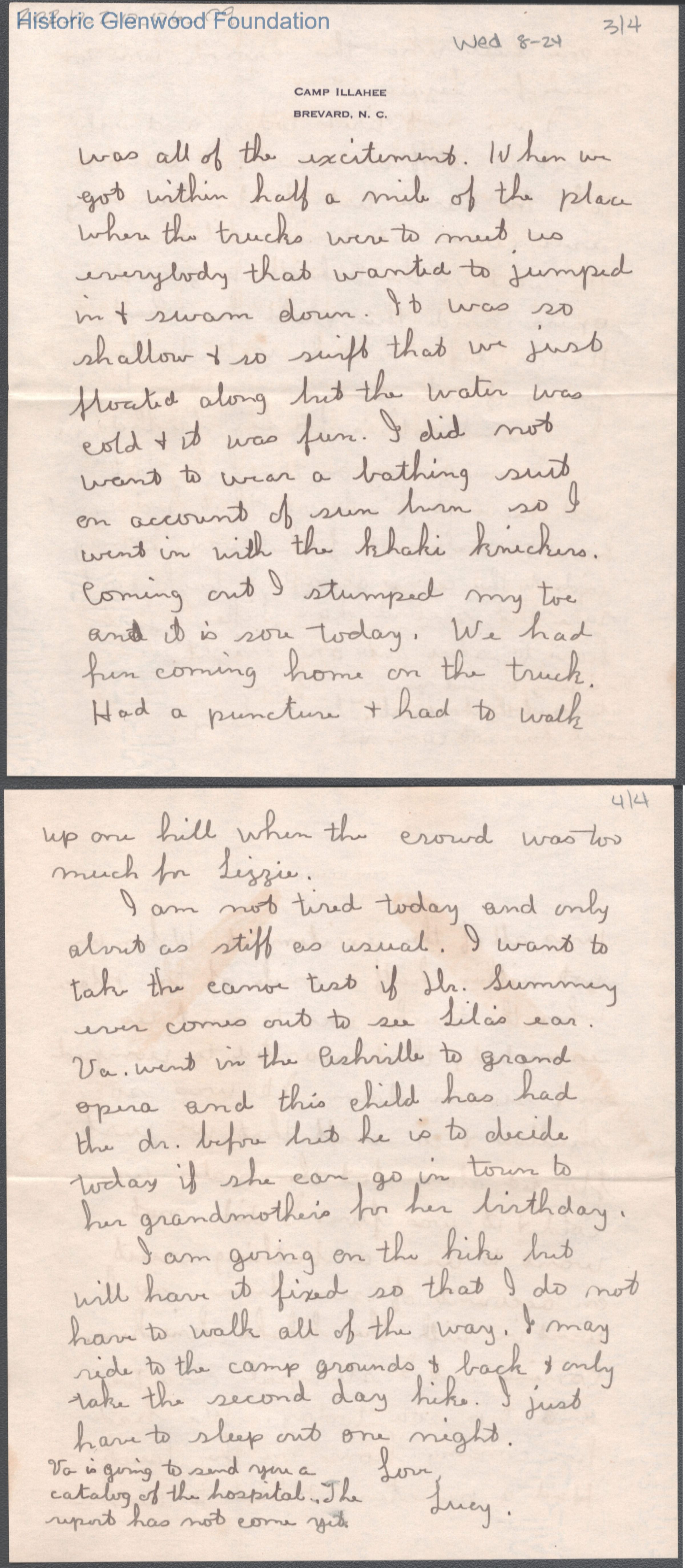 Four-page letter to Elizabeth S. Quarrier from Lucy S. Quarrier, Aug 24, 1924.