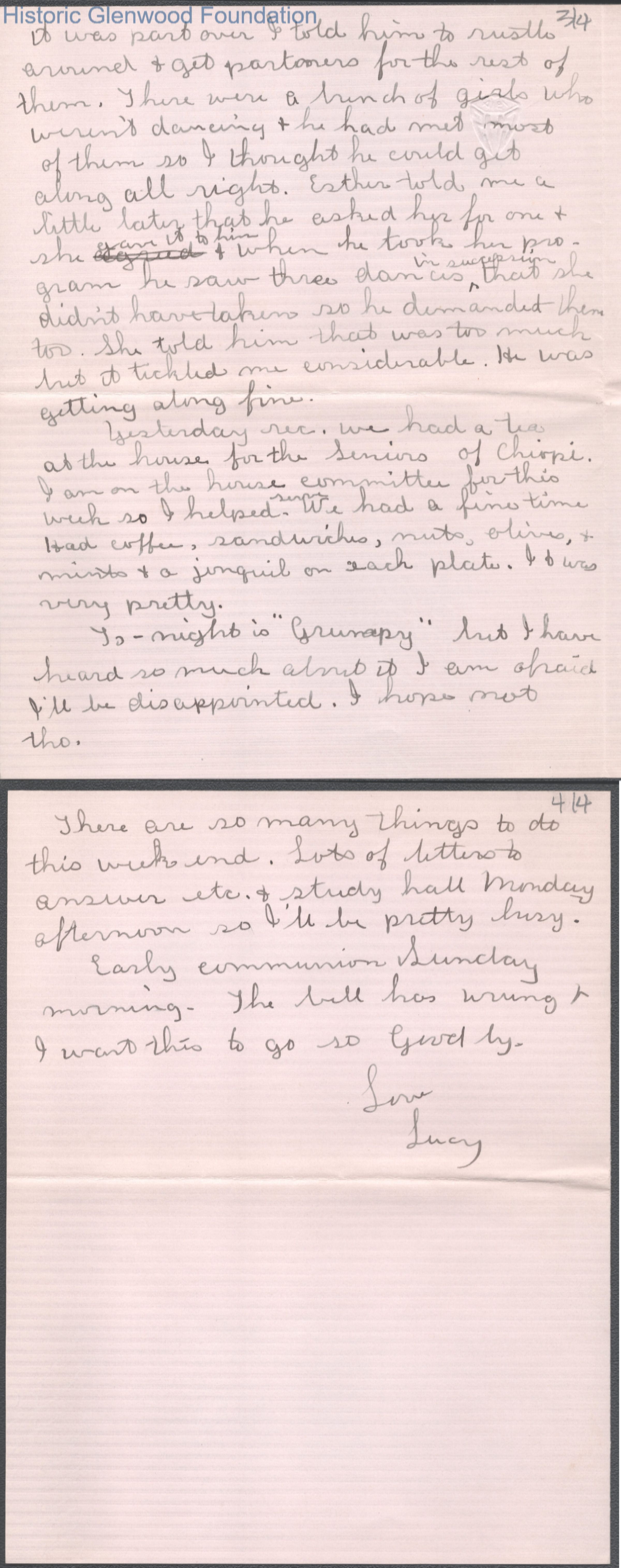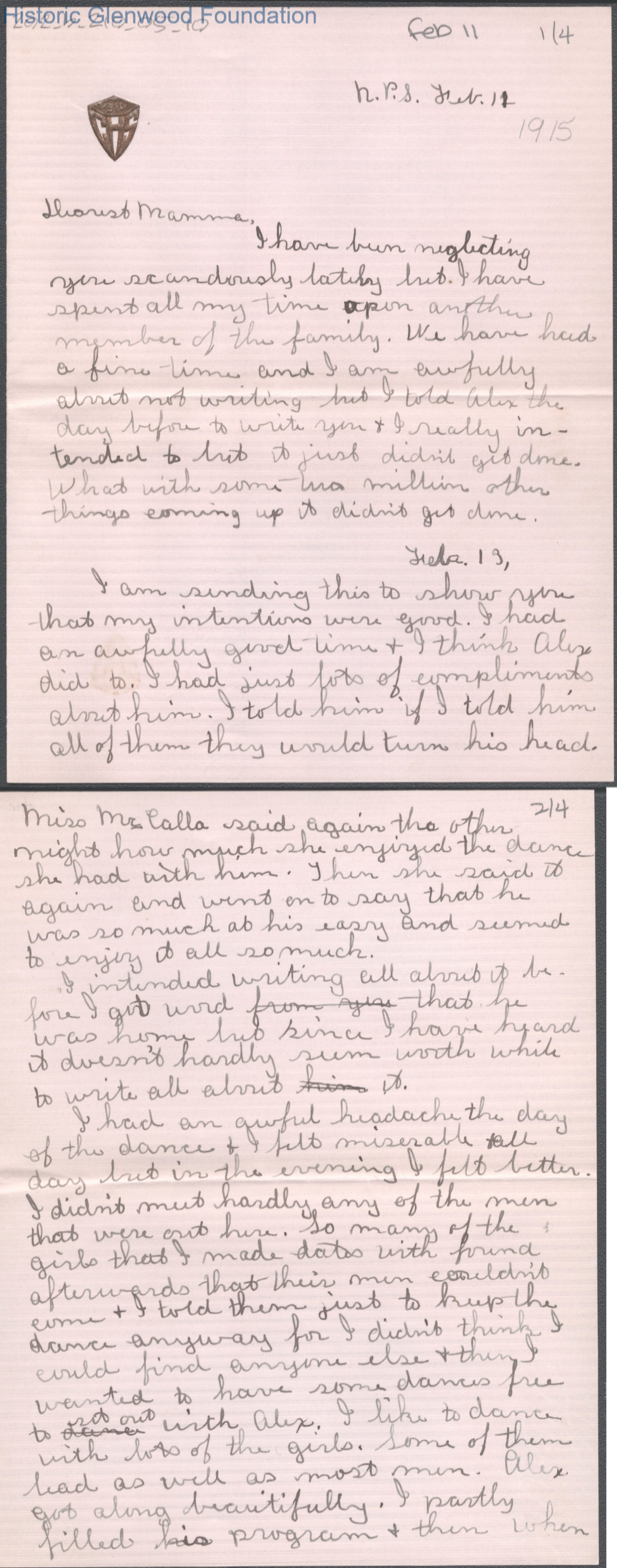 Four-page letter to Elizabeth S. Quarrier from Lucy S. Quarrier, Feb 11, 1915.