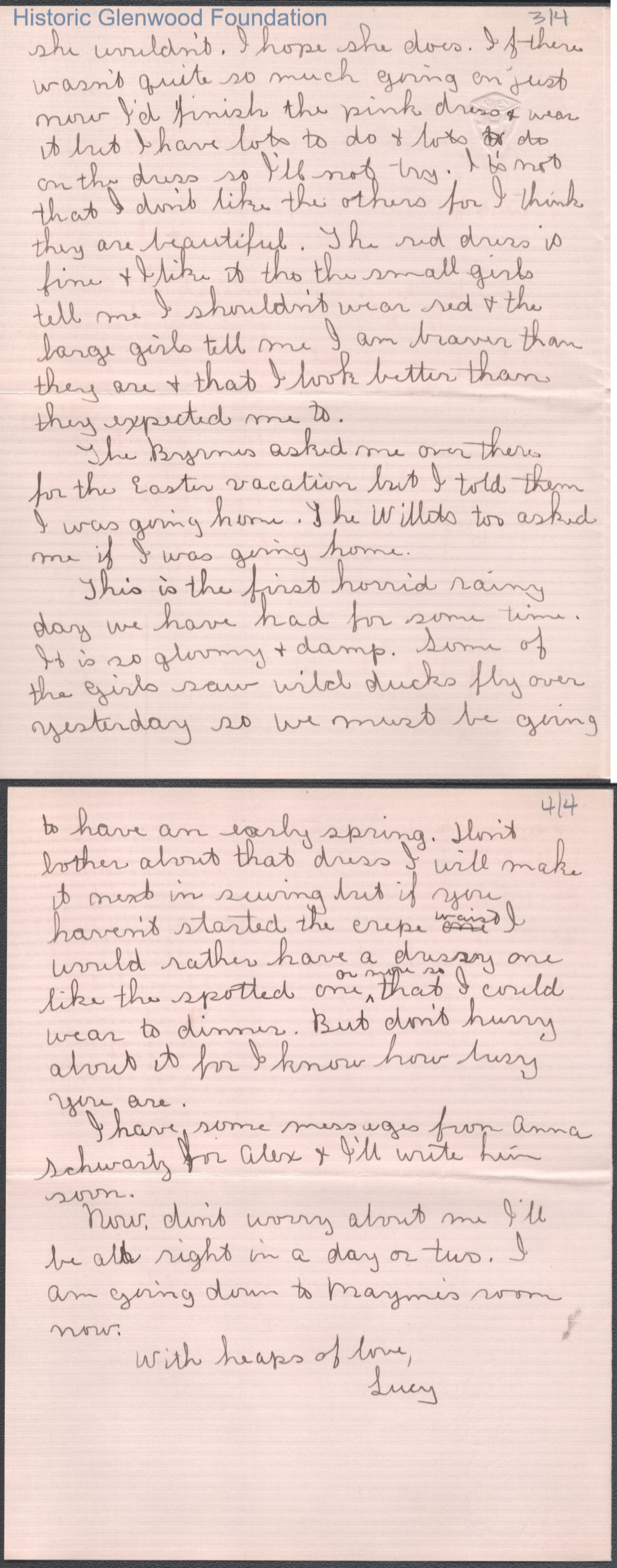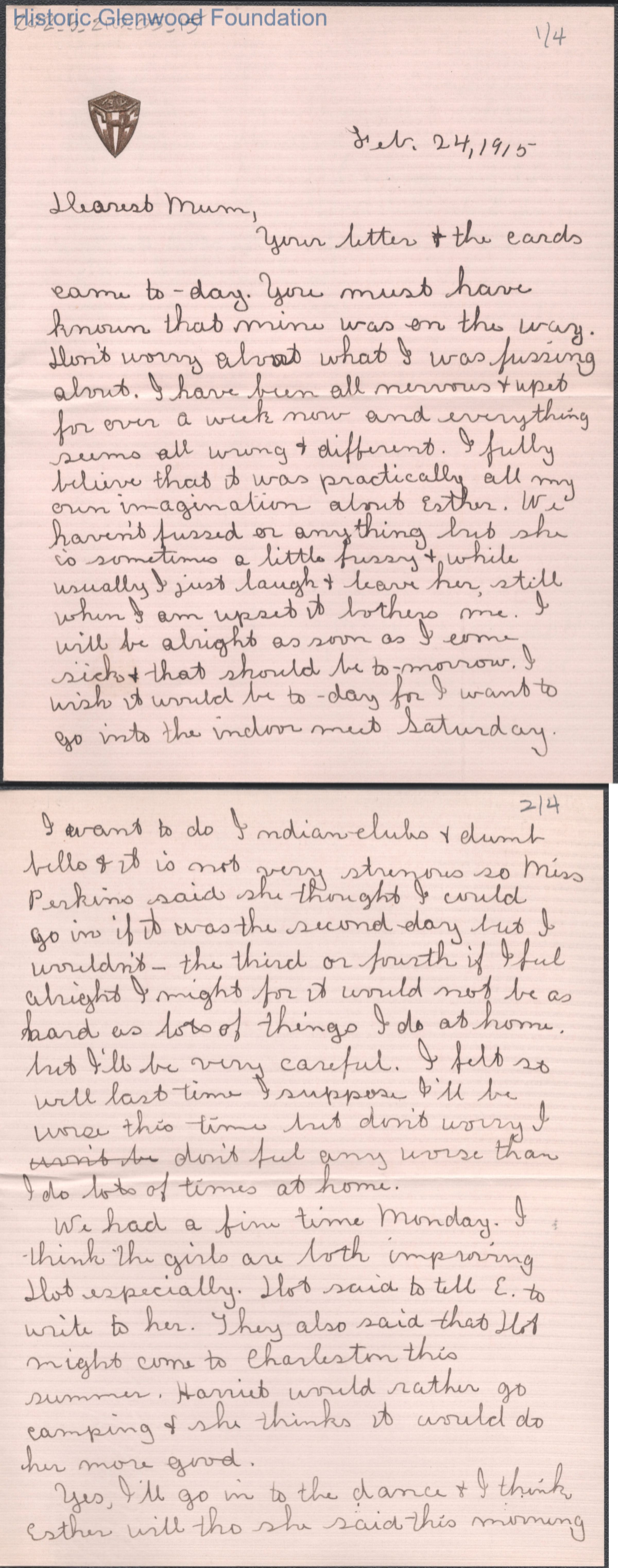 Four-page letter to Elizabeth S. Quarrier from Lucy S. Quarrier, Feb 24, 1915.
