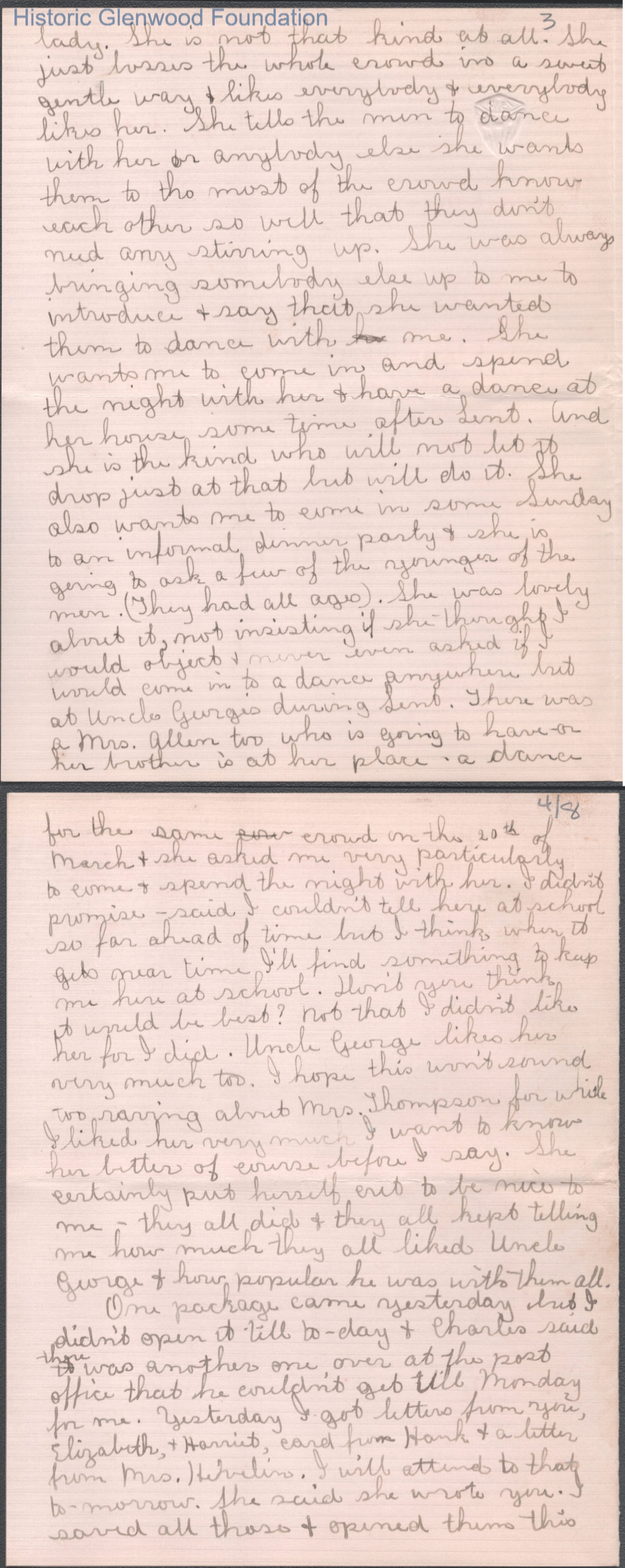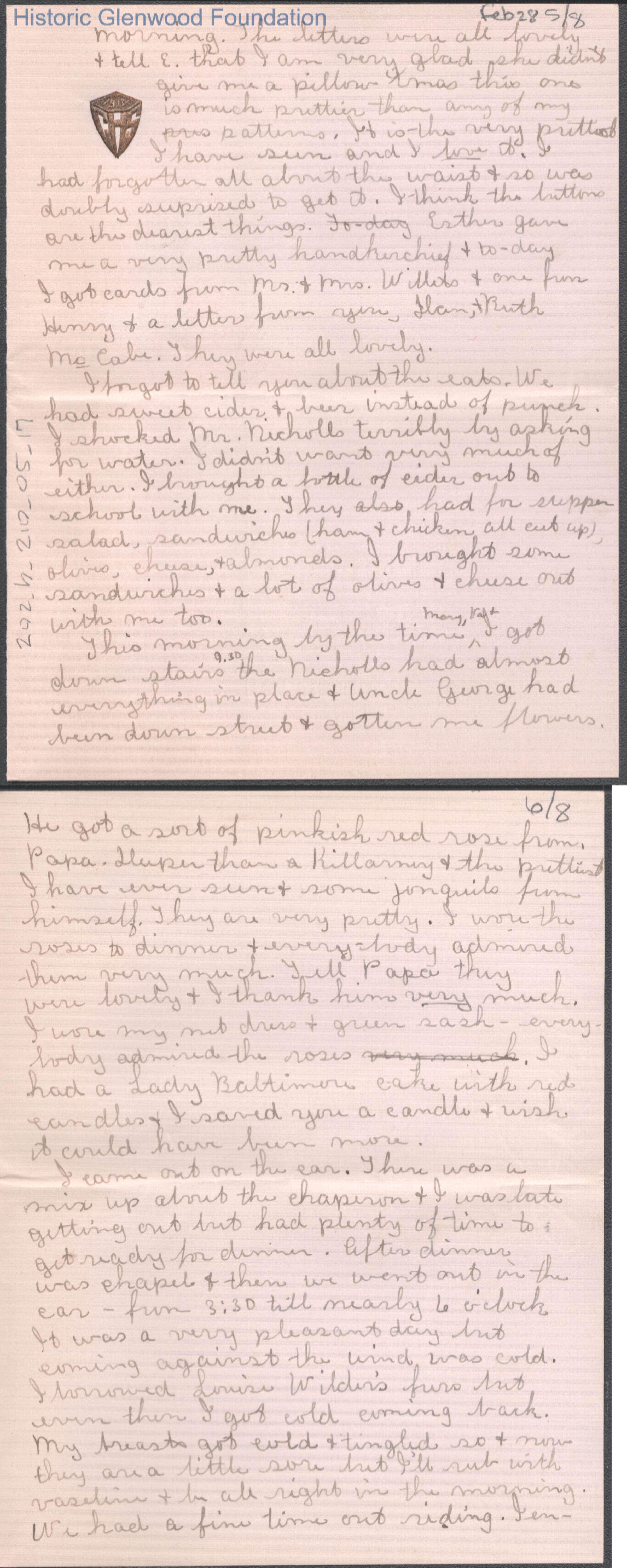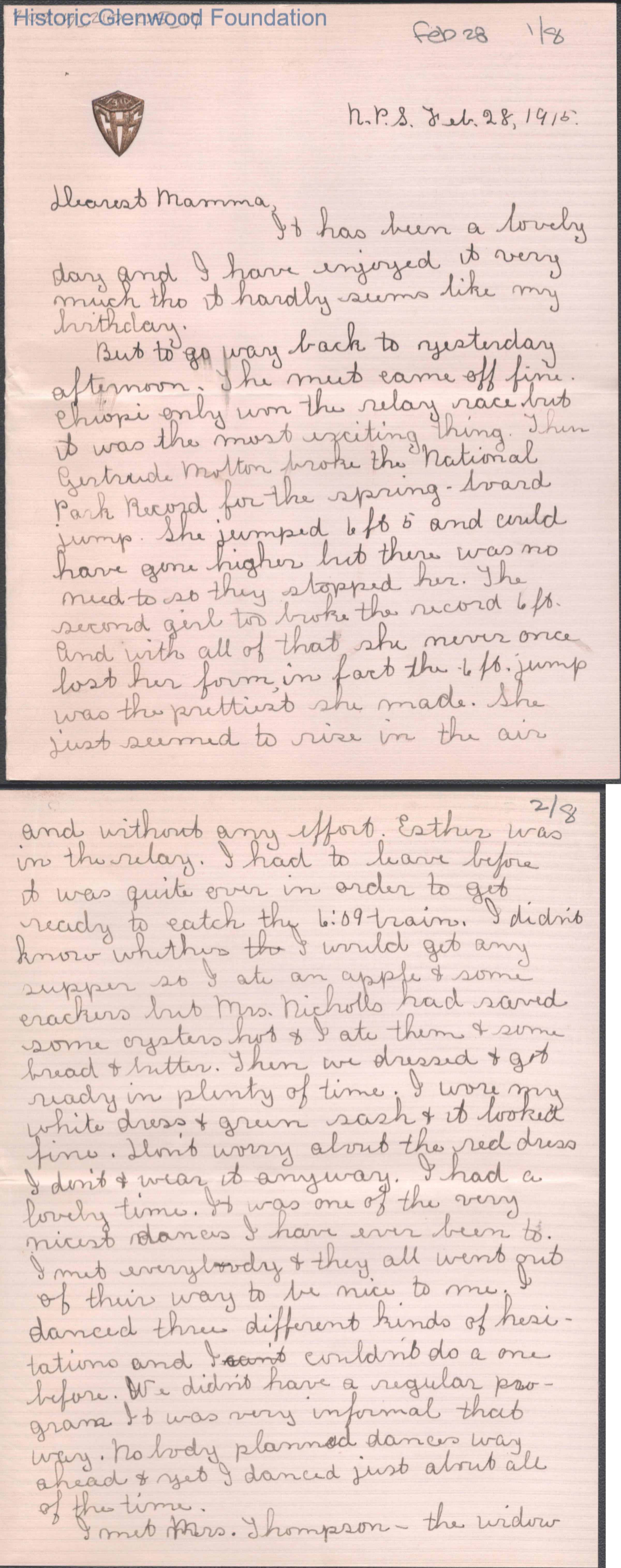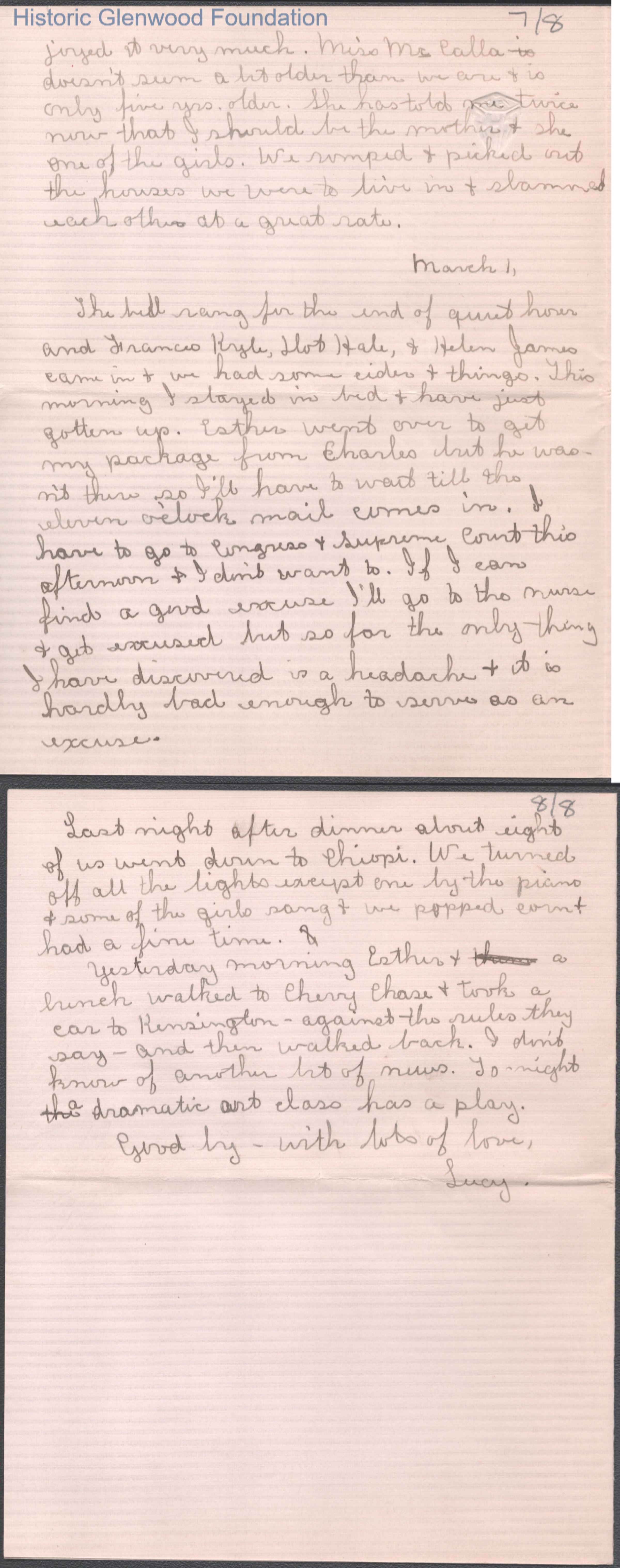 Eight-page letter to Elizabeth S. Quarrier from Lucy S. Quarrier, Feb 28, 1915.