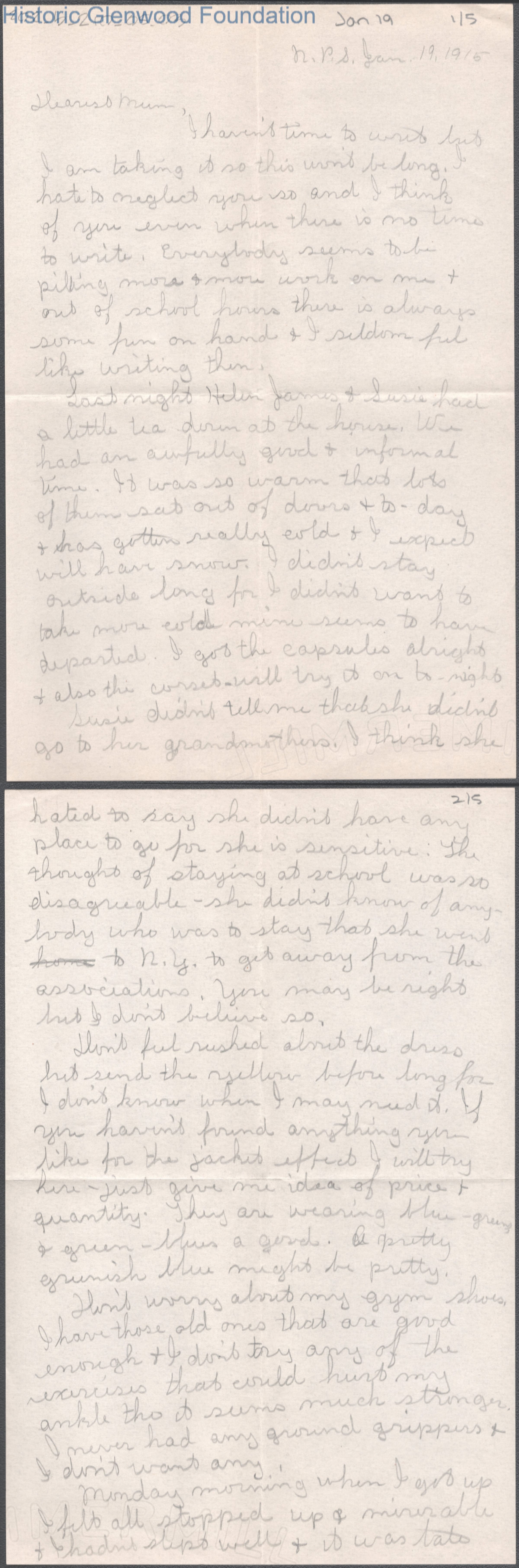 Elizabeth S. Quarrier from Lucy S. Quarrier, Jan 19, 1915