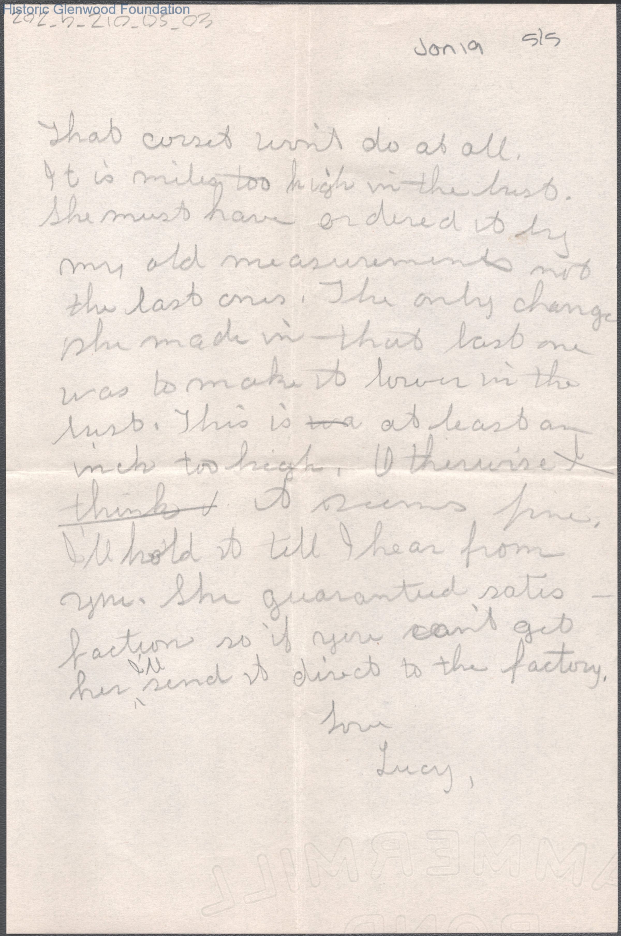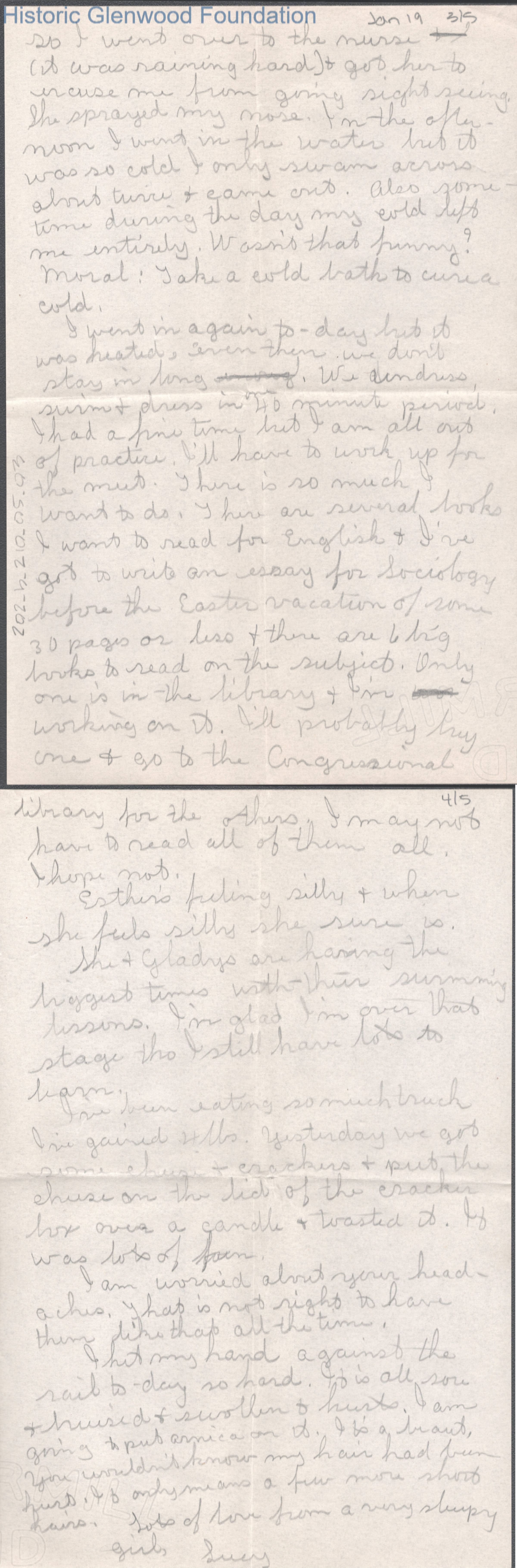 Five-page letter to Elizabeth S. Quarrier from Lucy S. Quarrier, Jan 19, 1915.