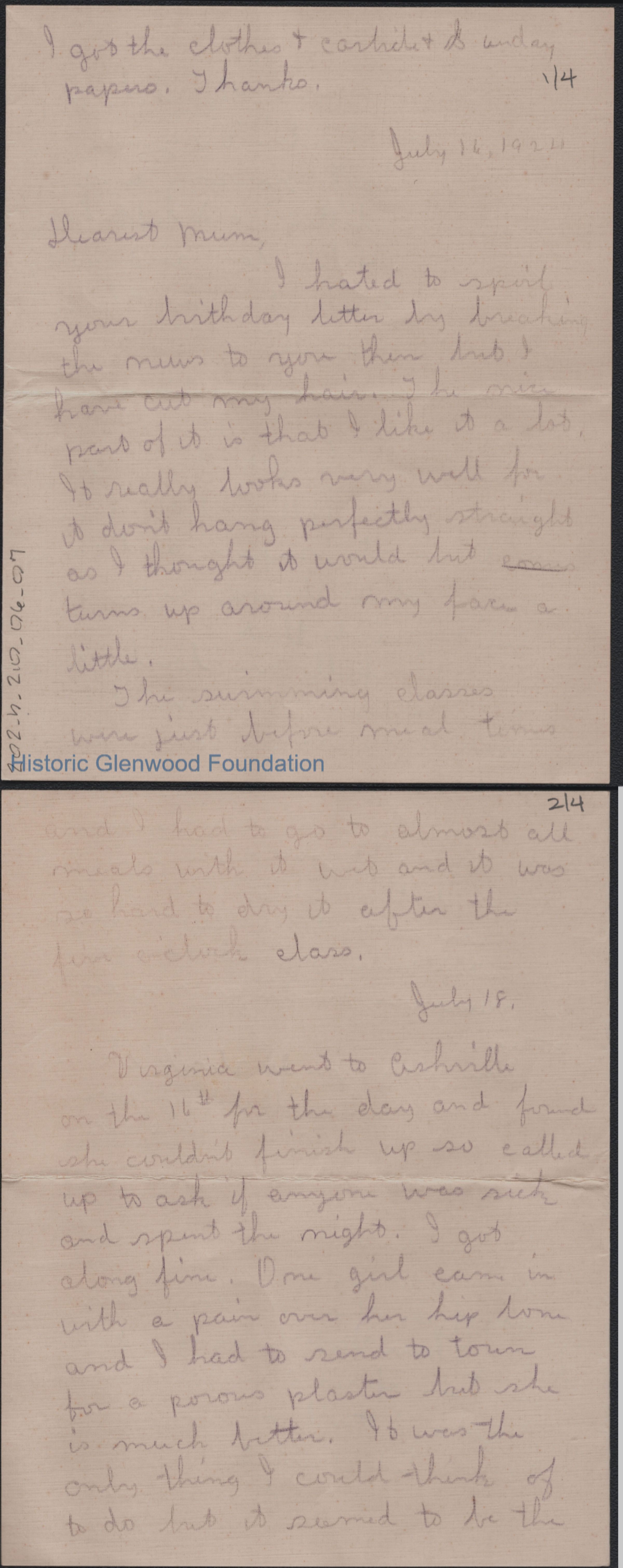 Four-page letter to Elizabeth S. Quarrier from Lucy S. Quarrier, Jul 16, 1924.