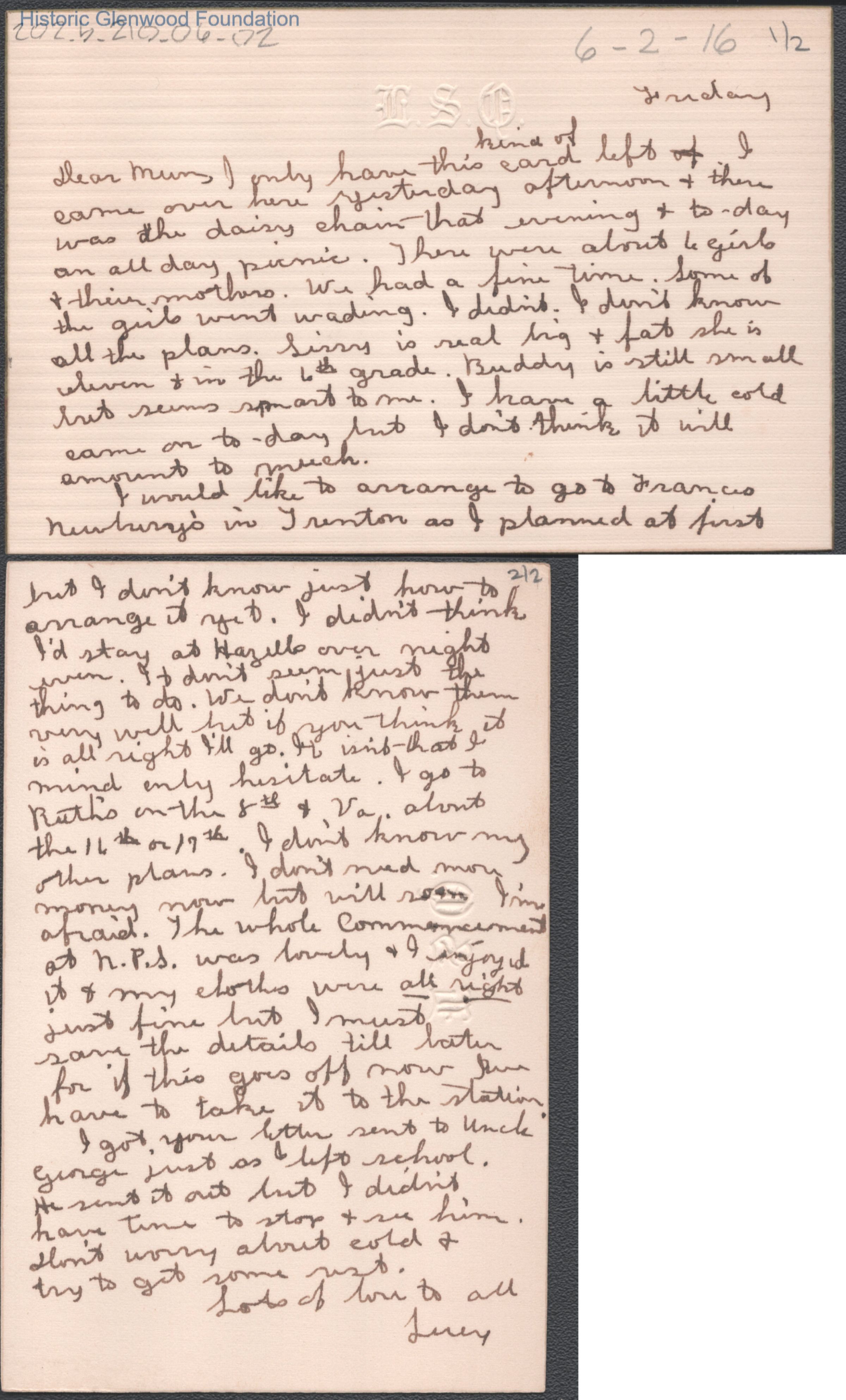 Elizabeth S. Quarrier from Lucy S. Quarrier, Jun 2, 1916