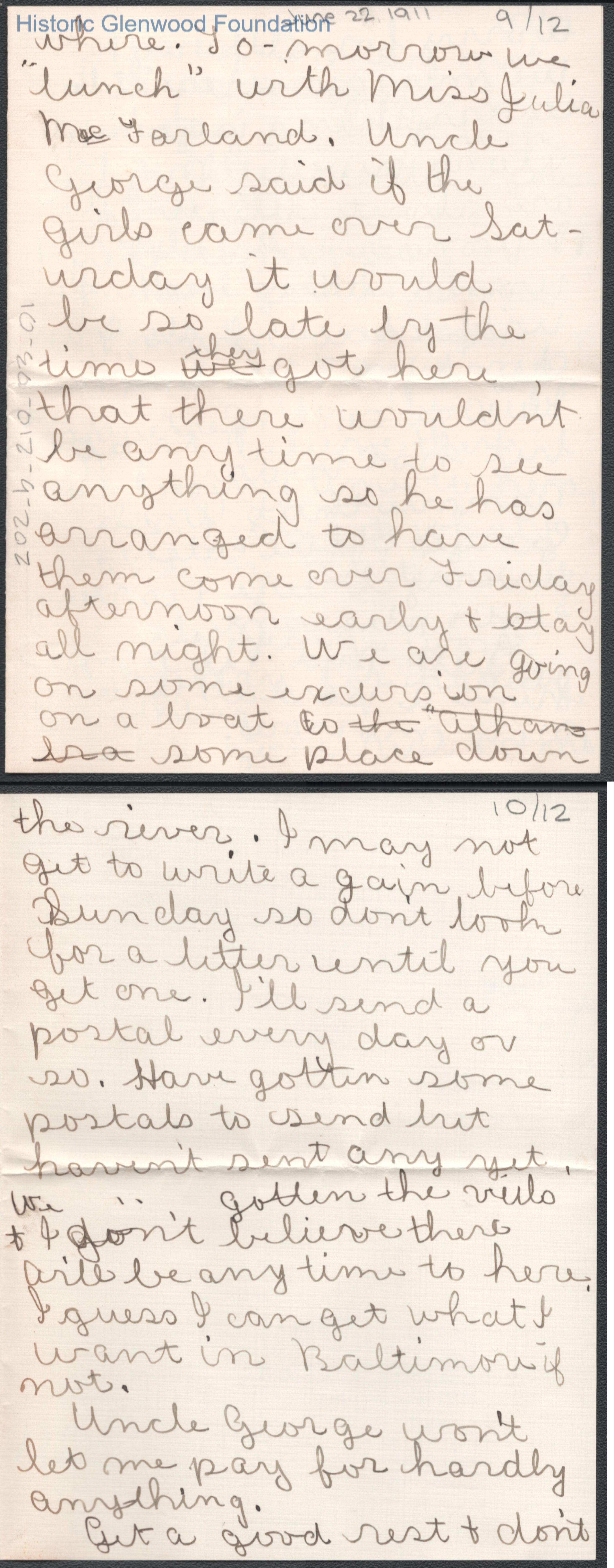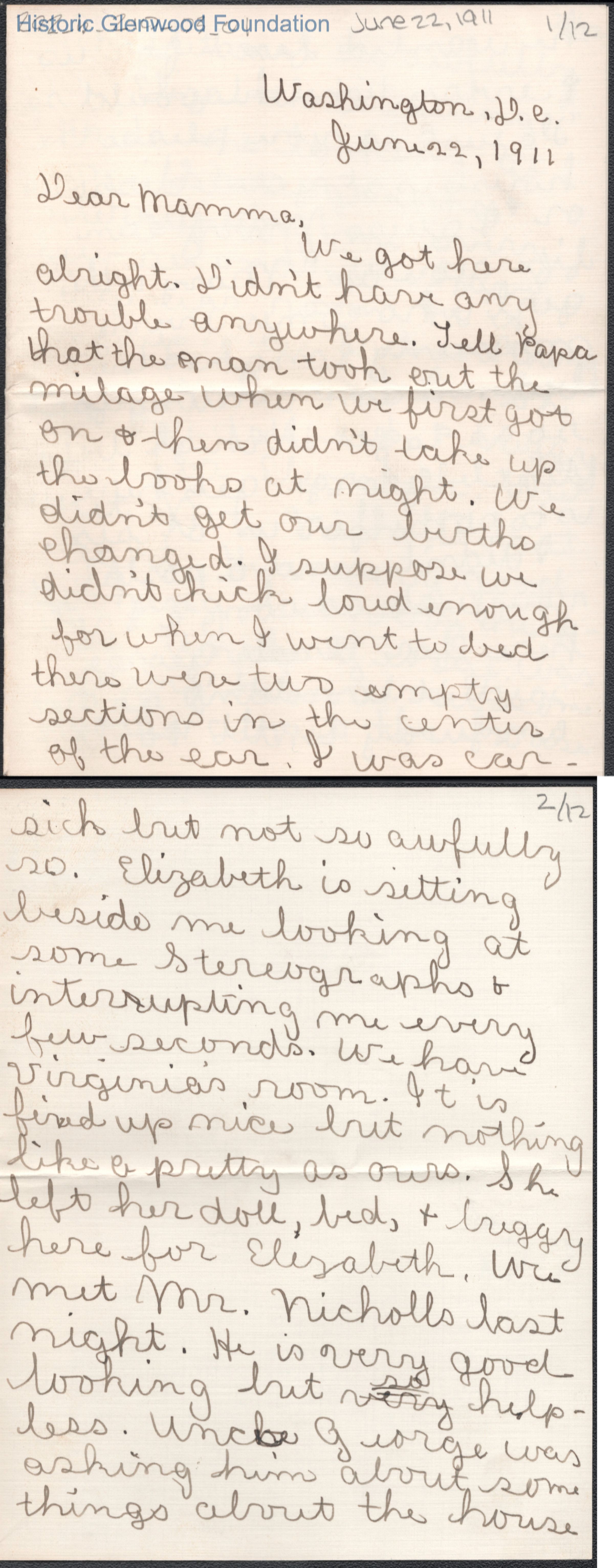 Twelve-page letter to Elizabeth S. Quarrier from Lucy S. Quarrier, Jun 22, 1911.