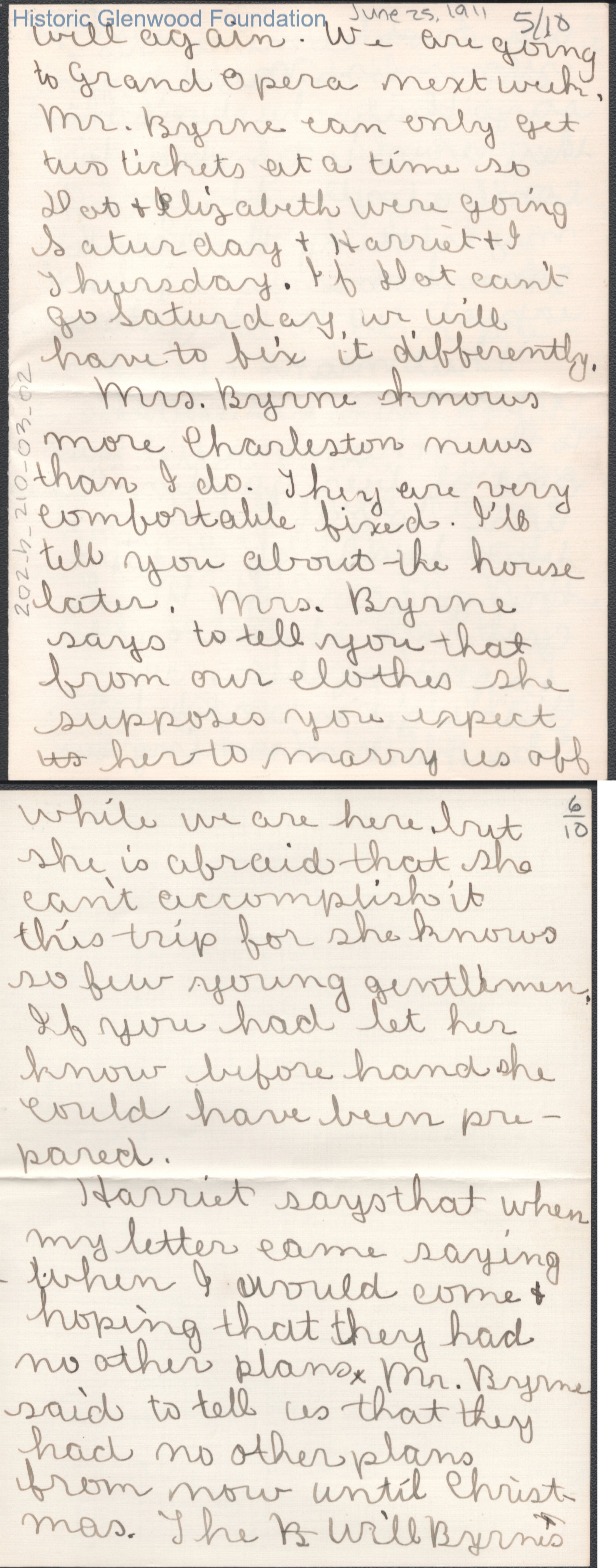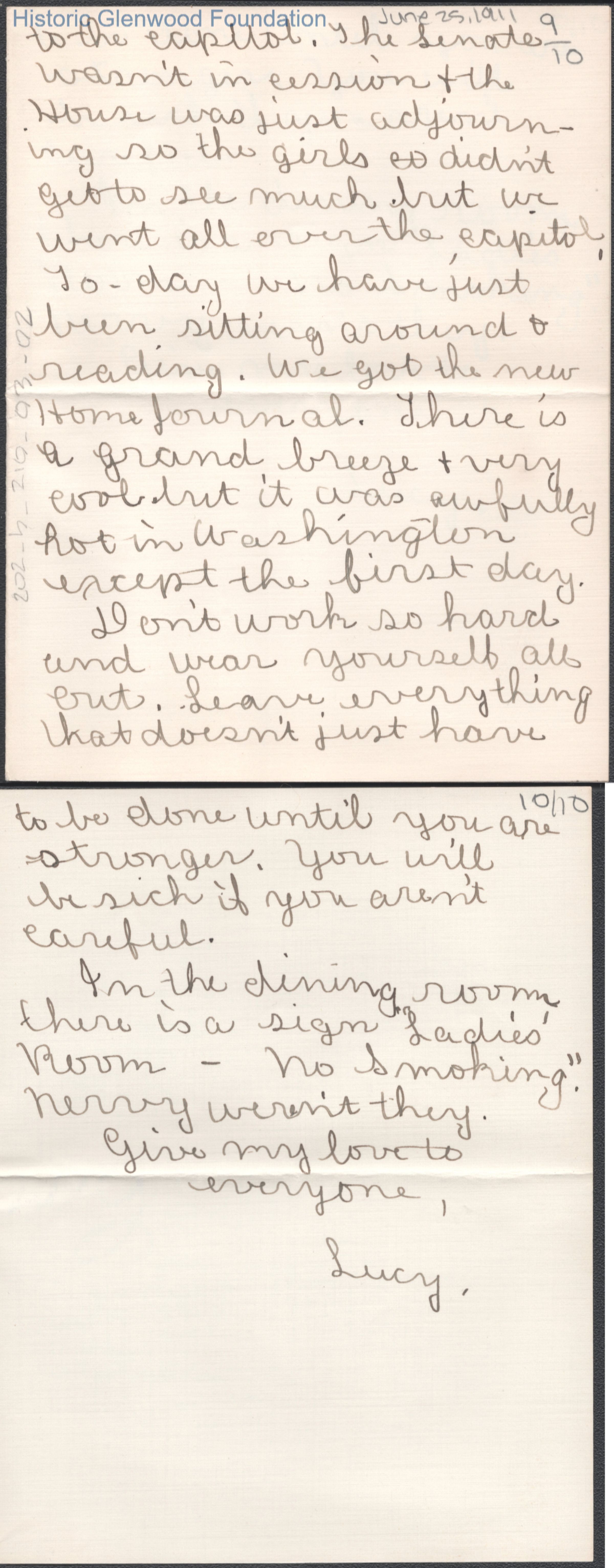 Ten-page letter to Elizabeth S. Quarrier from Lucy S. Quarrier, Jun 25, 1911.