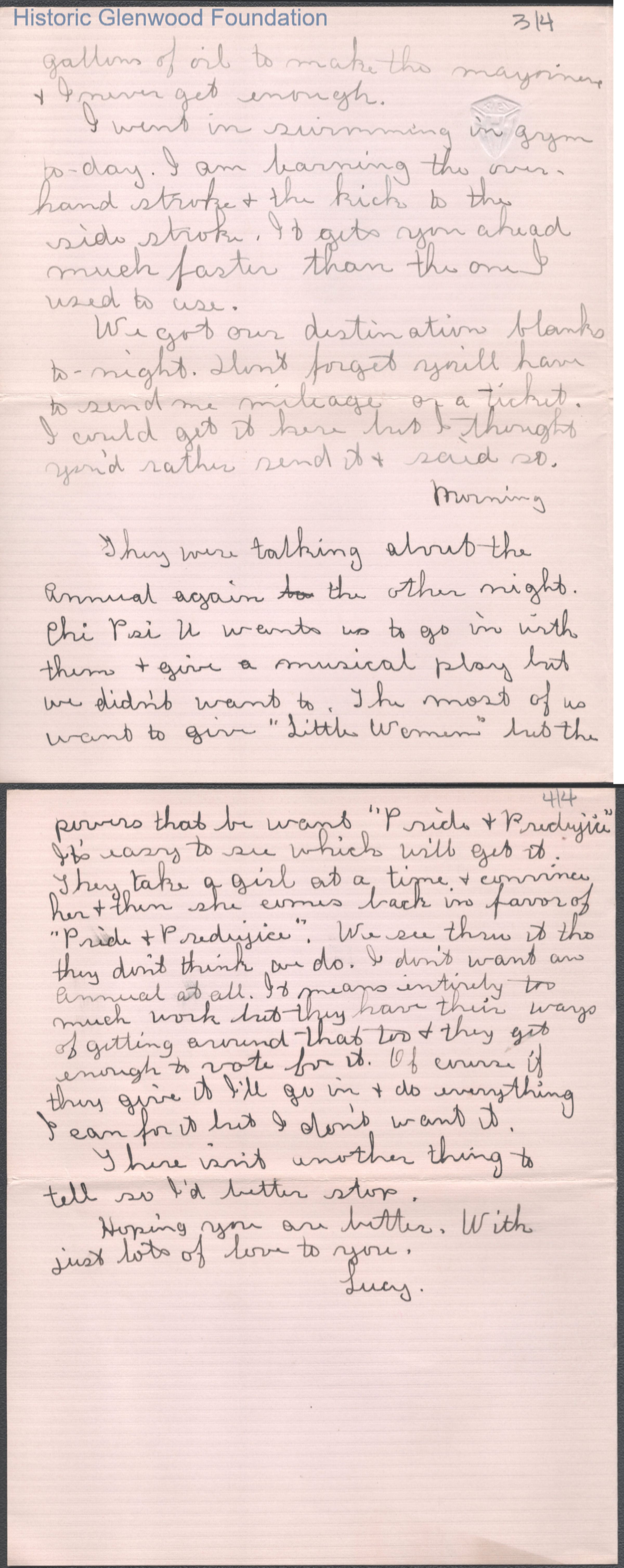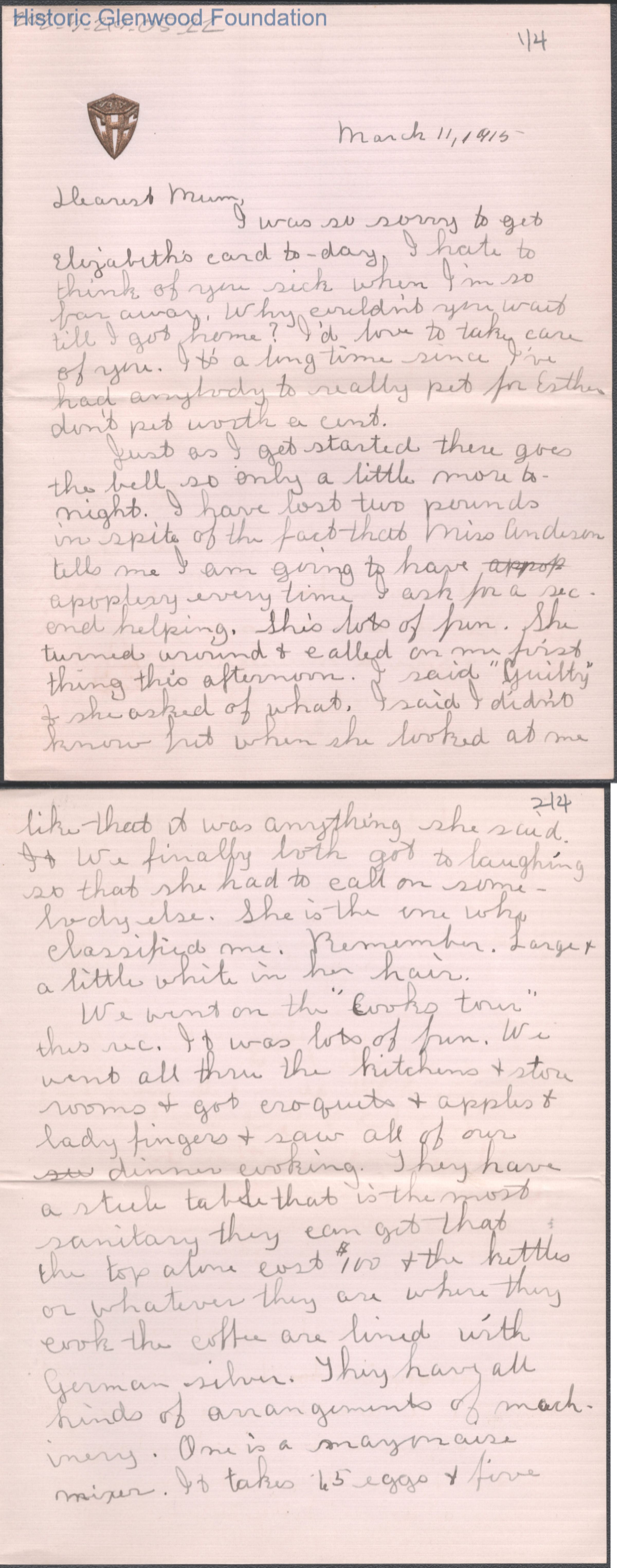 Four-page letter to Elizabeth S. Quarrier from Lucy S. Quarrier, Mar 11, 1915.