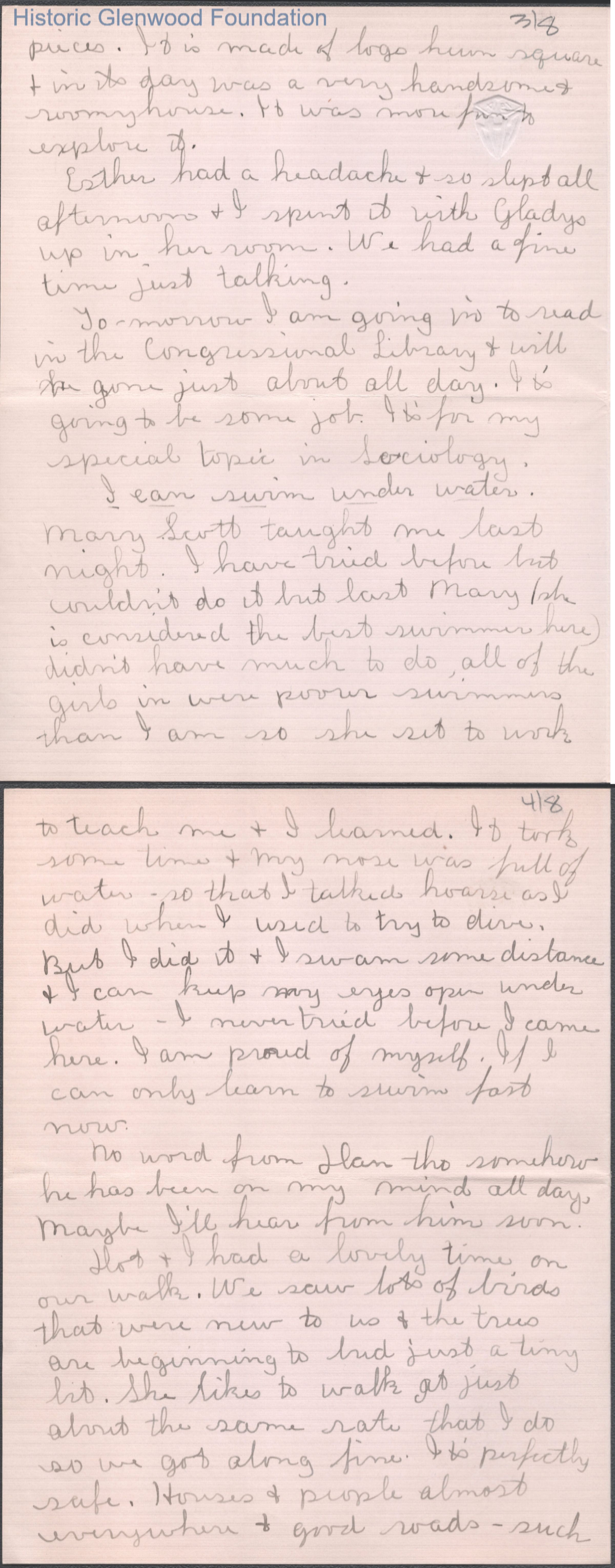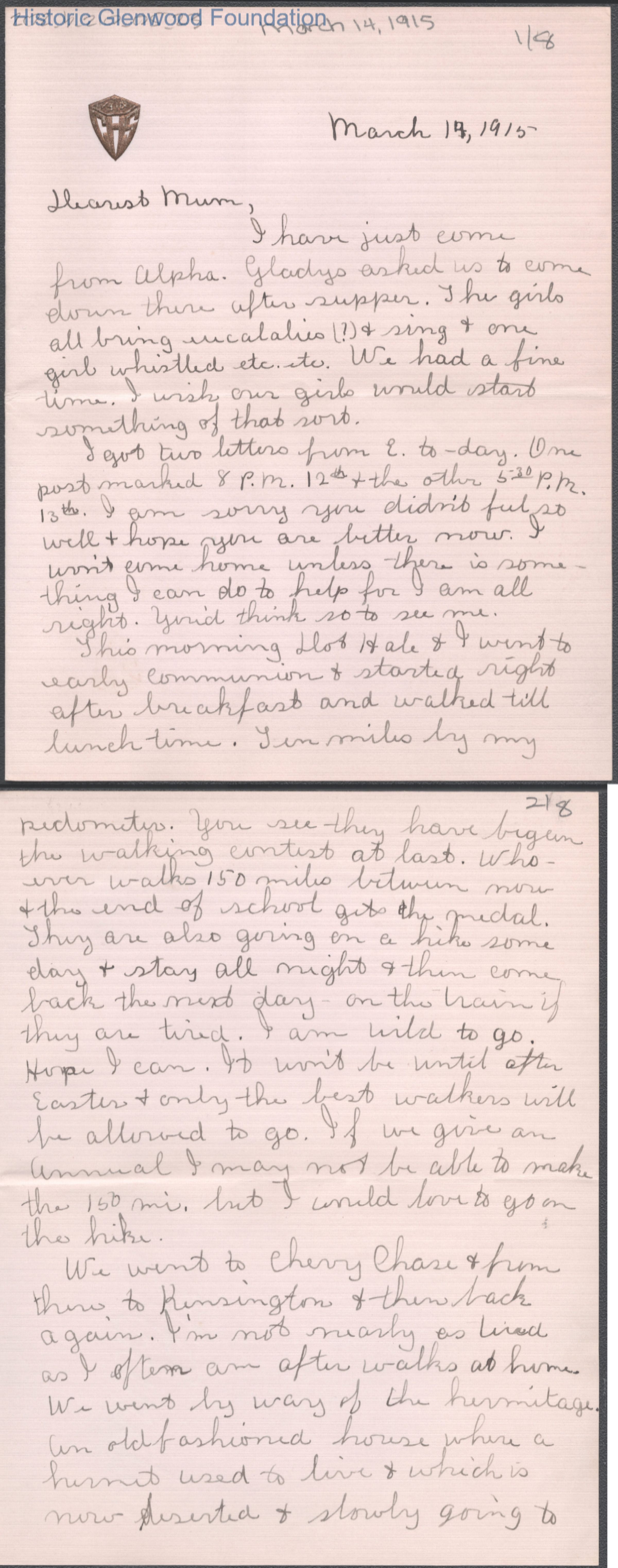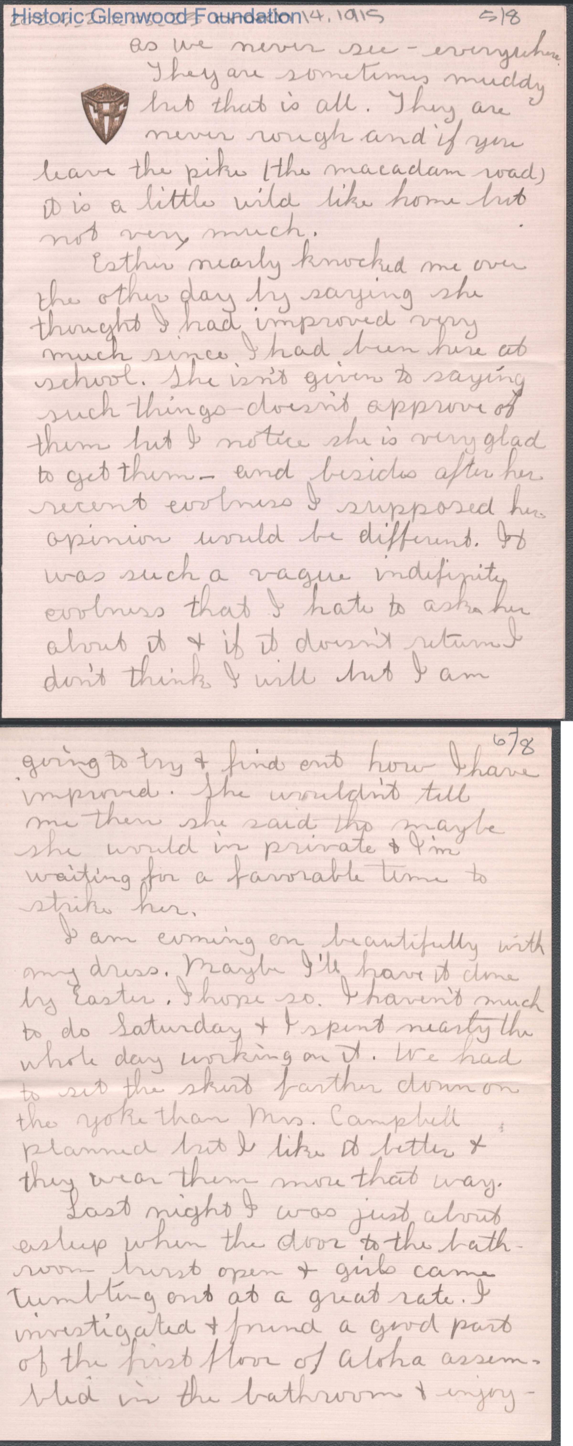 Eight-page letter to Elizabeth S. Quarrier from Lucy S. Quarrier, Mar 14, 1915.