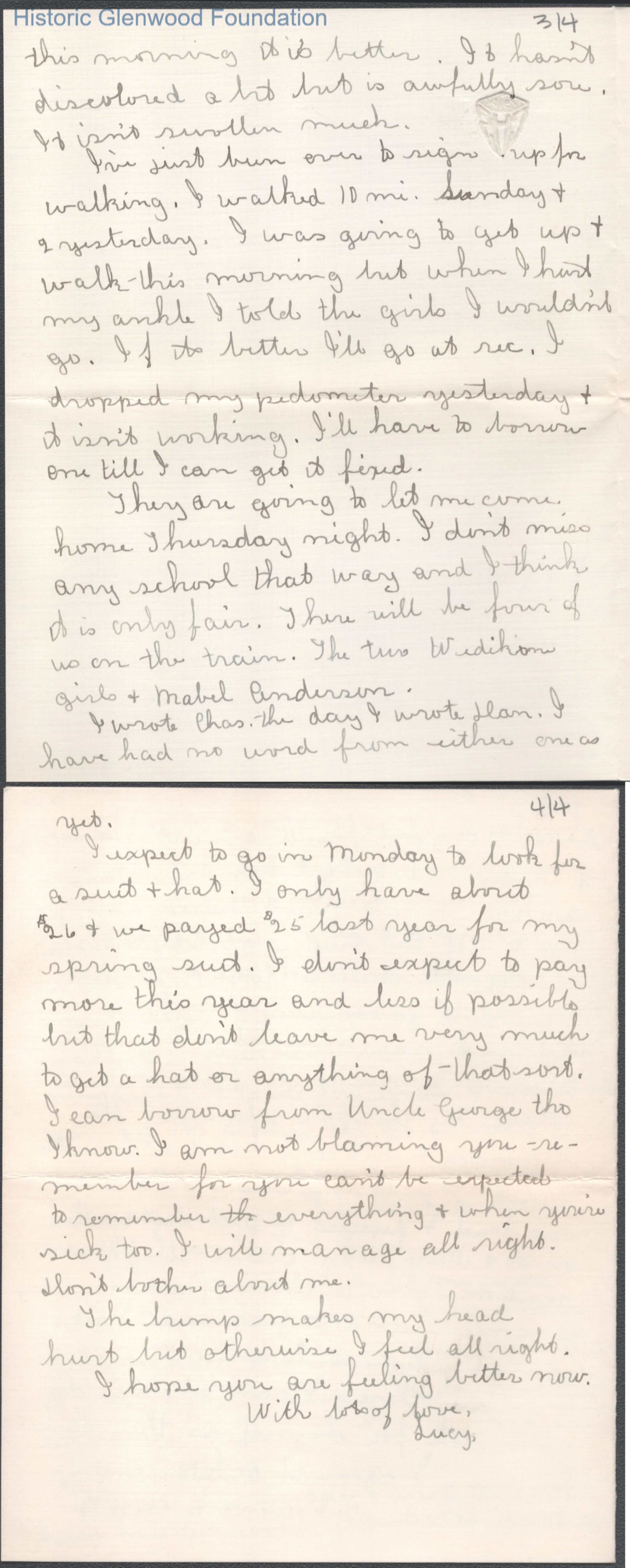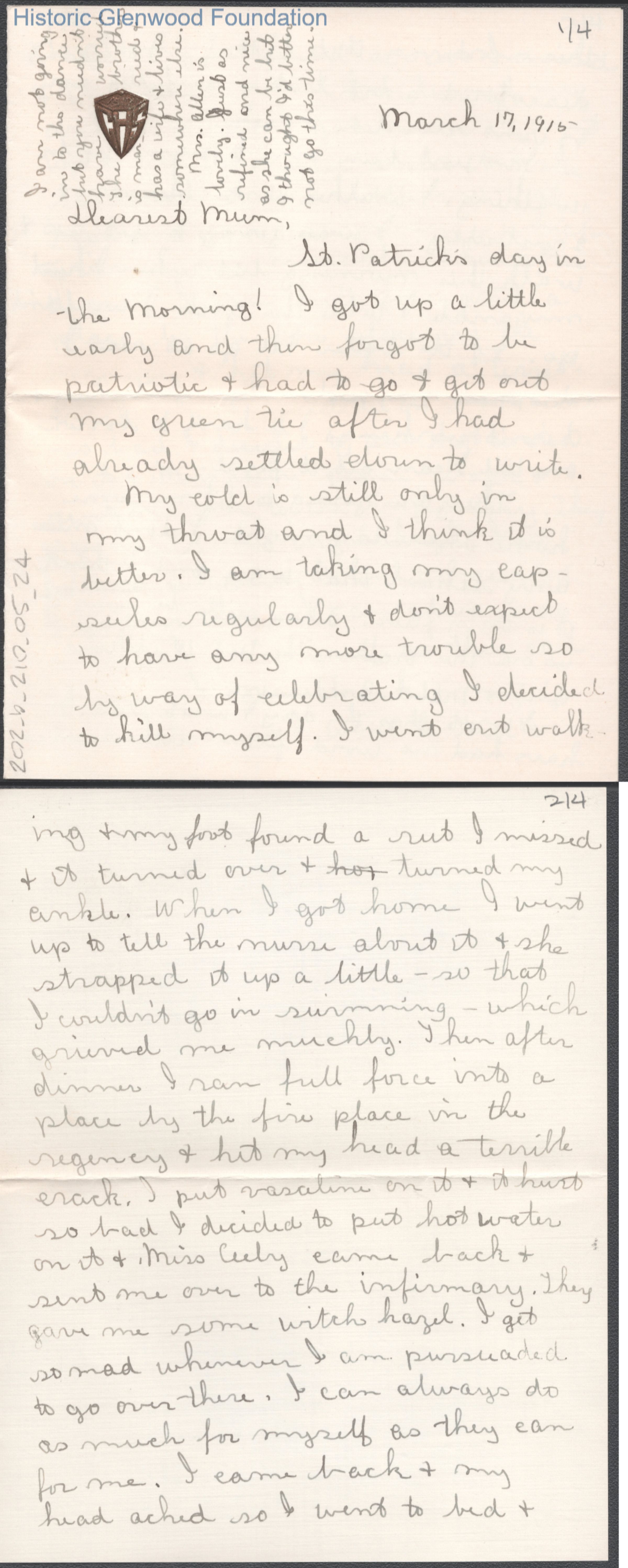 Four-page letter to Elizabeth S. Quarrier from Lucy S. Quarrier, Mar 17, 1915.