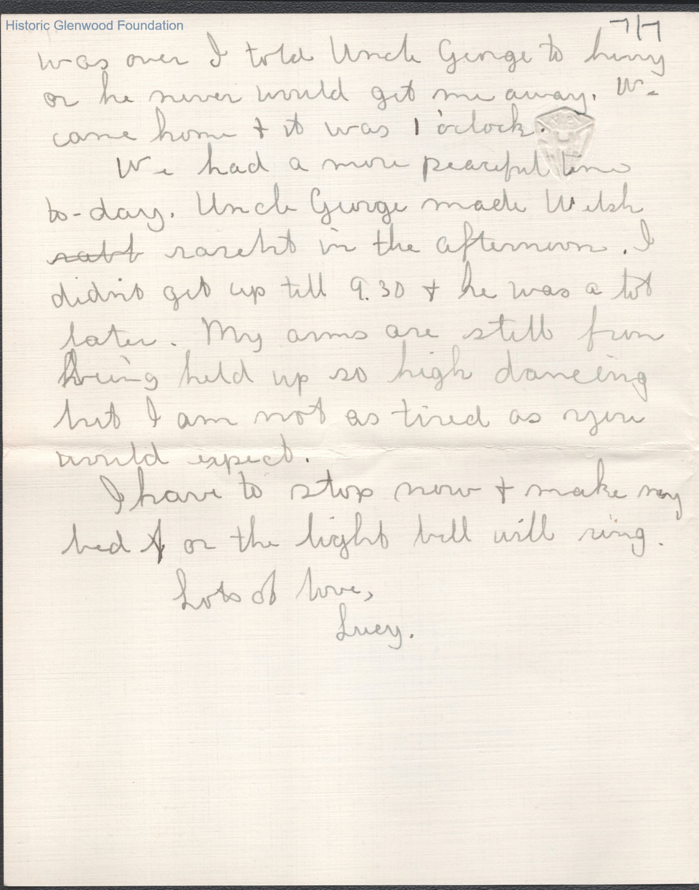 Seven-page letter to Elizabeth S. Quarrier from Lucy S. Quarrier, May 2, 1915.