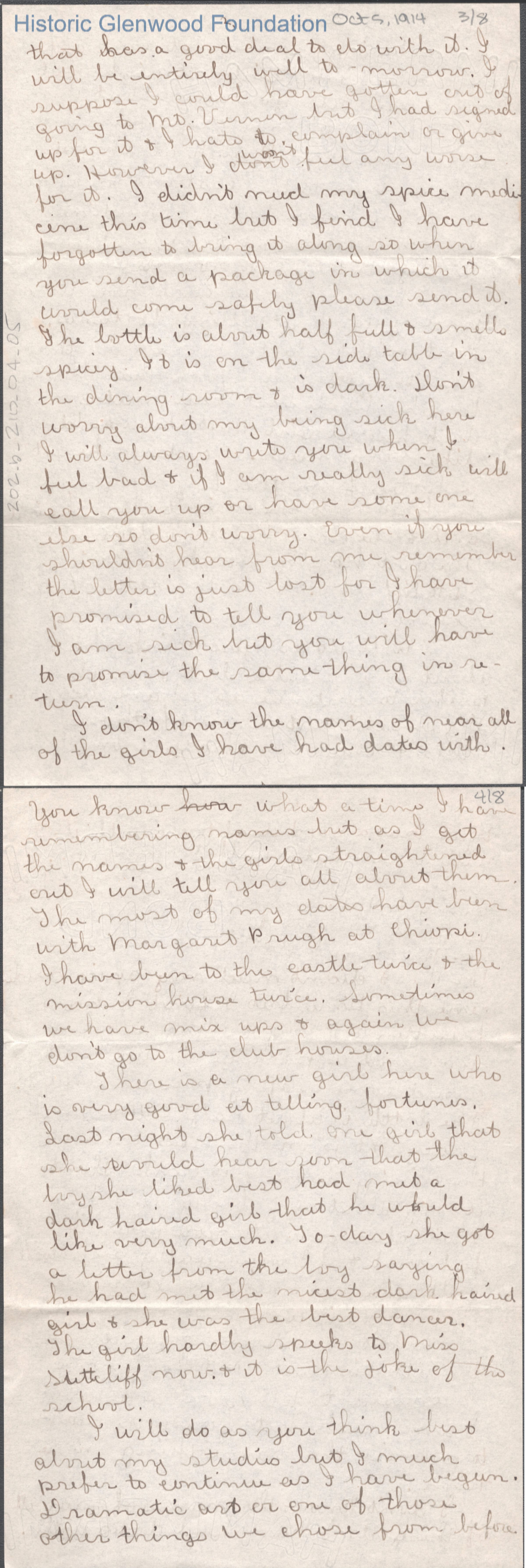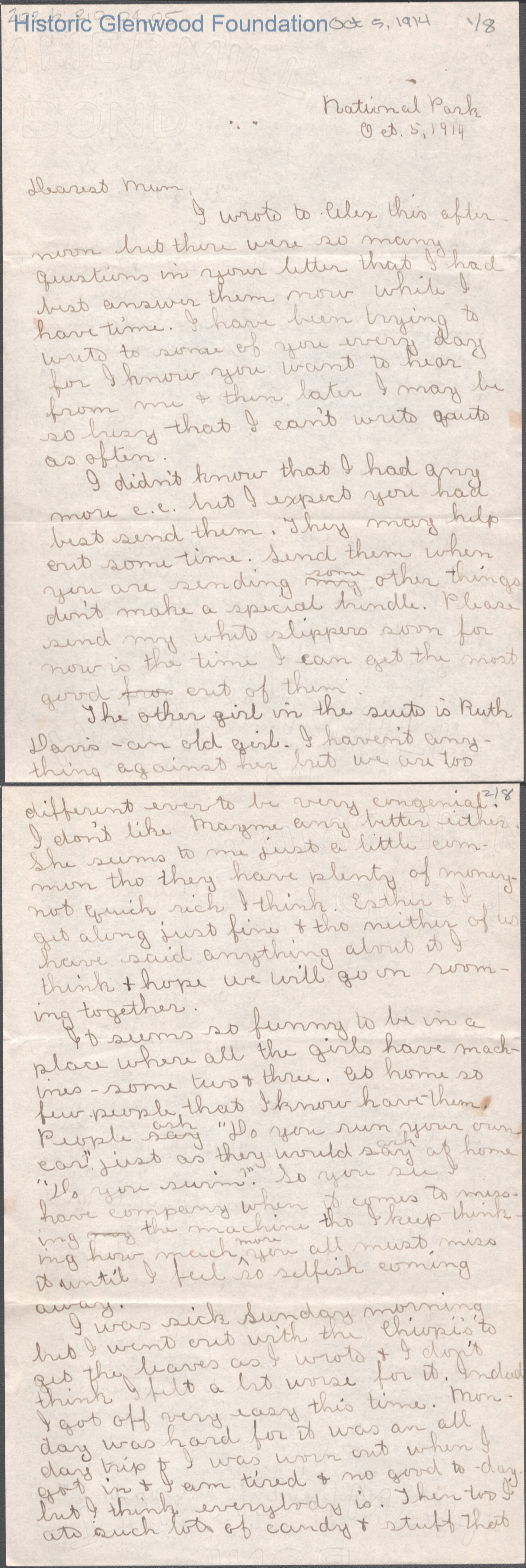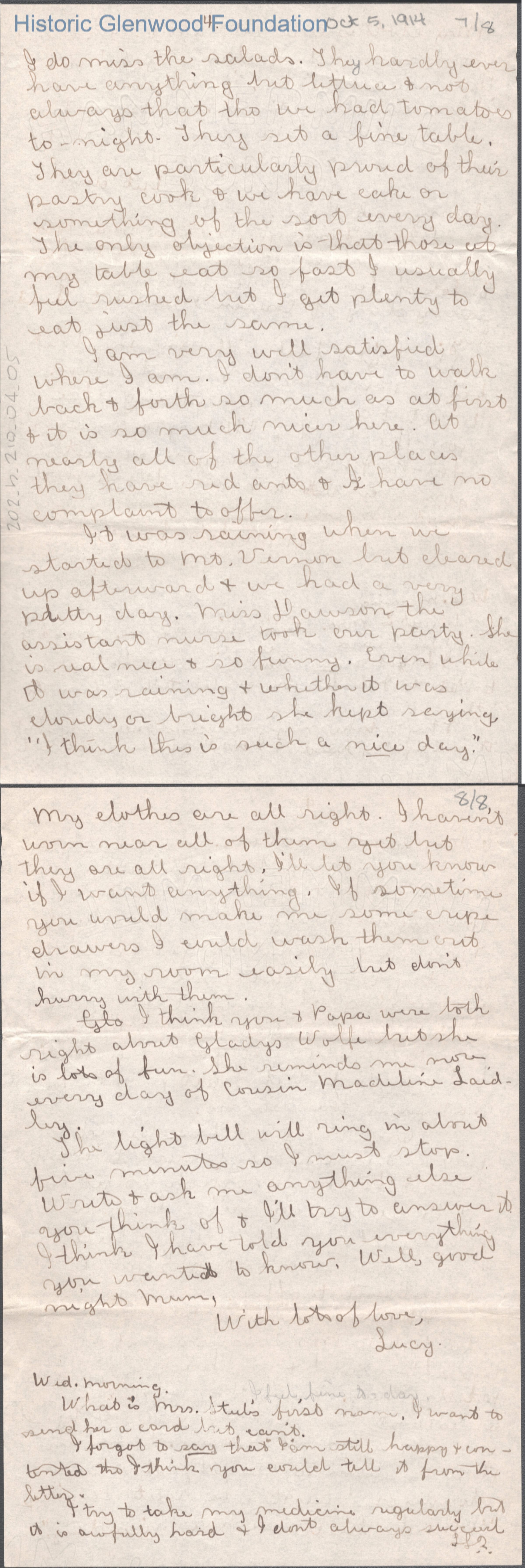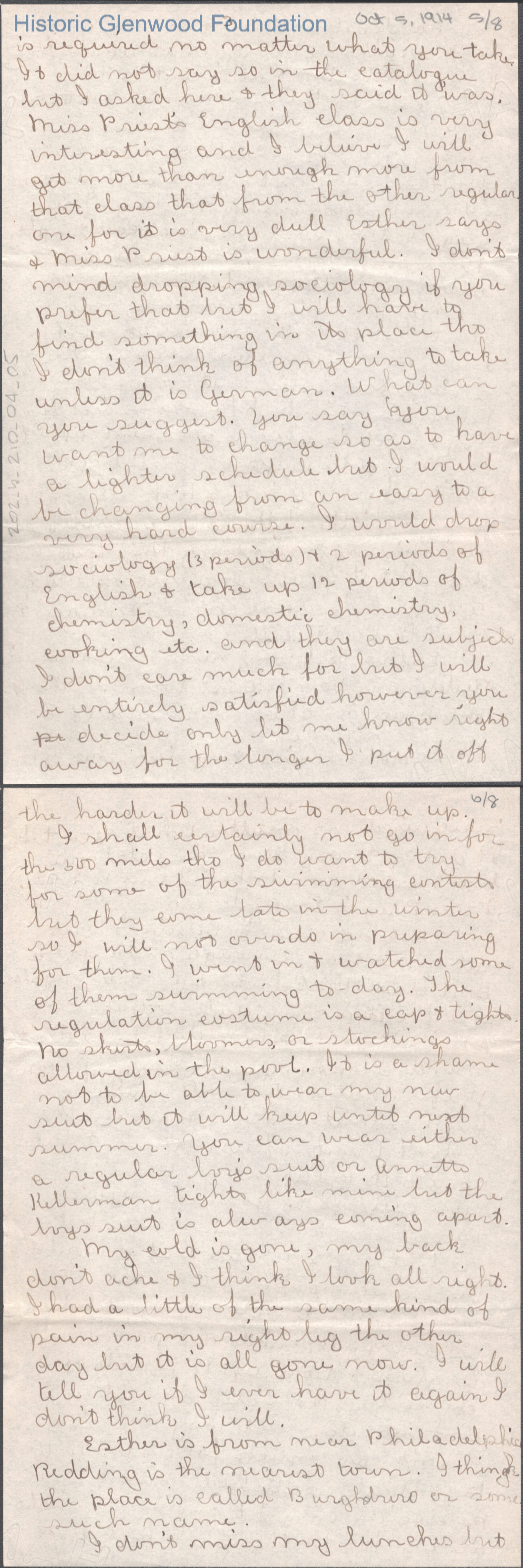 Eight-page letter to Elizabeth S. Quarrier from Lucy S. Quarrier, Oct 5, 1914.