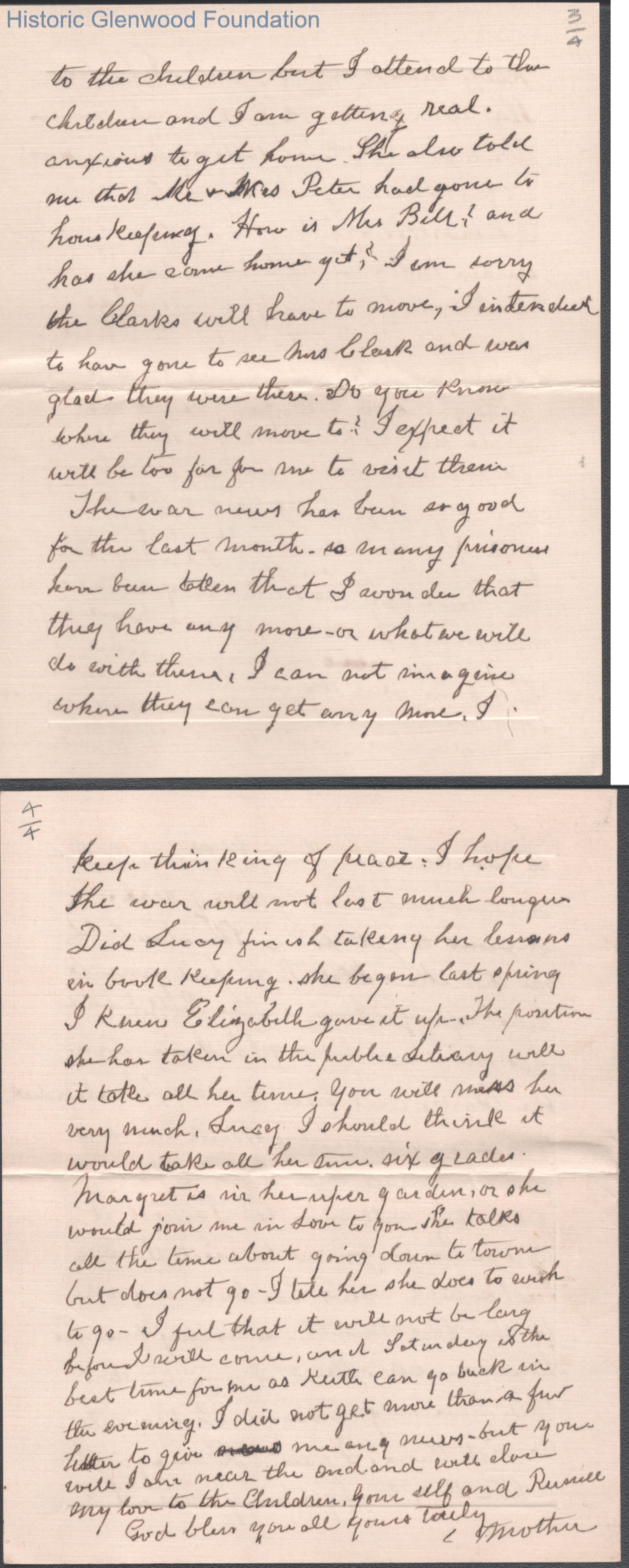 Four-page letter to Elizabeth S. Quarrier from mother Lucy W. Summers, Aug 1918.