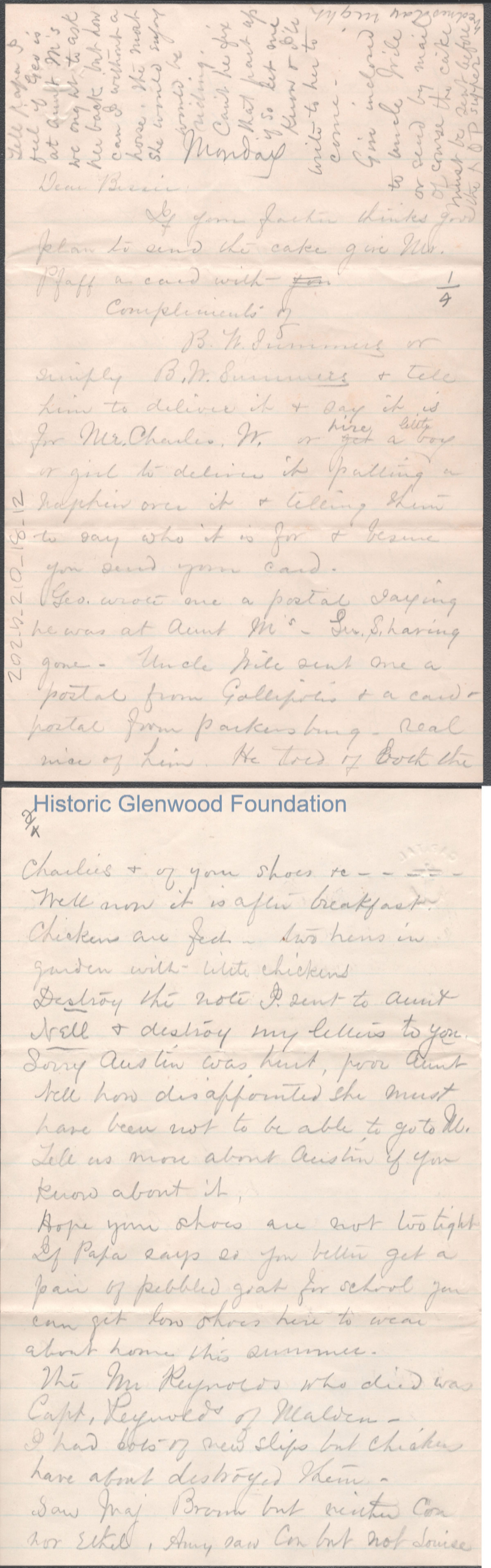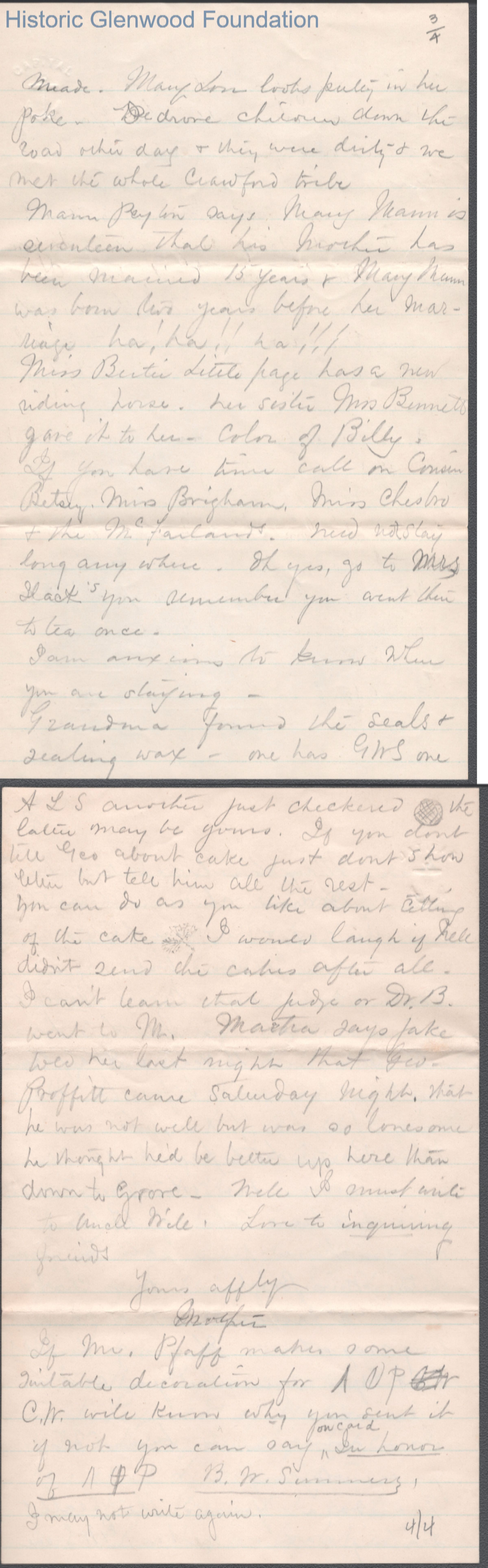 Four-page letter to Elizabeth S. Quarrier from mother Lucy W. Summers, no date.