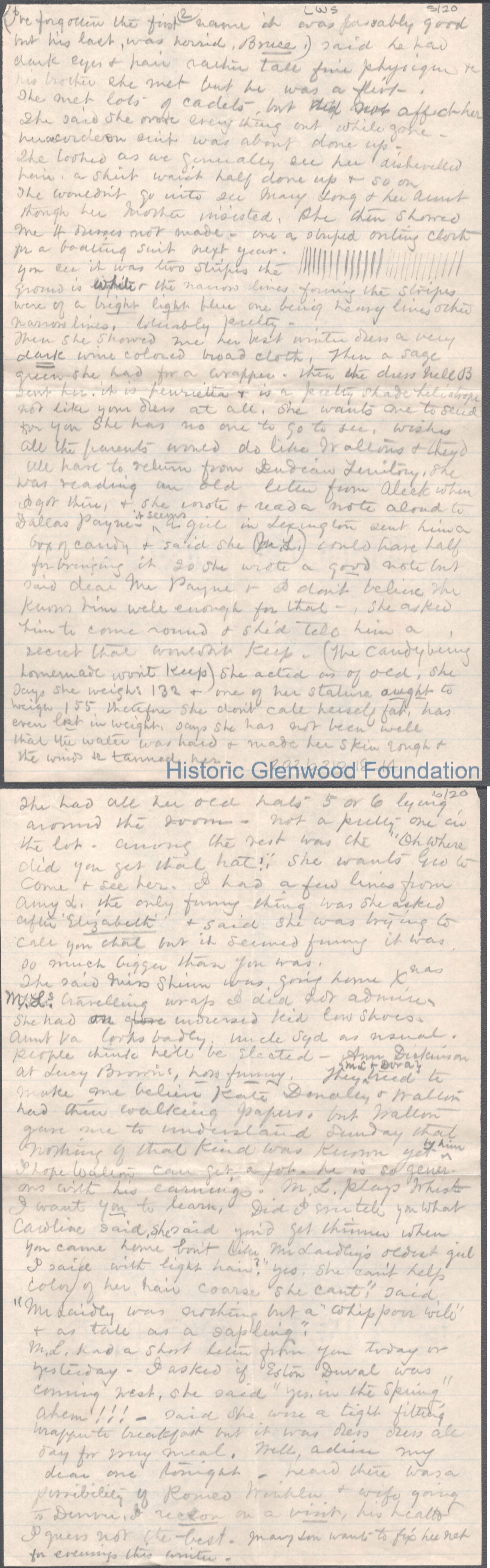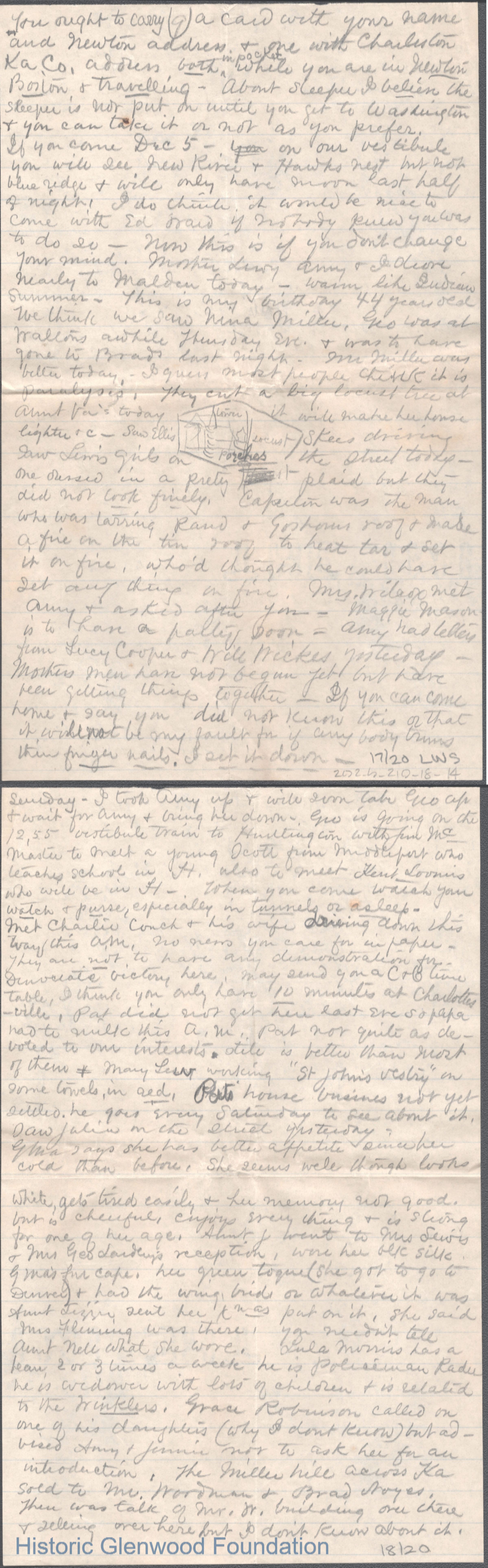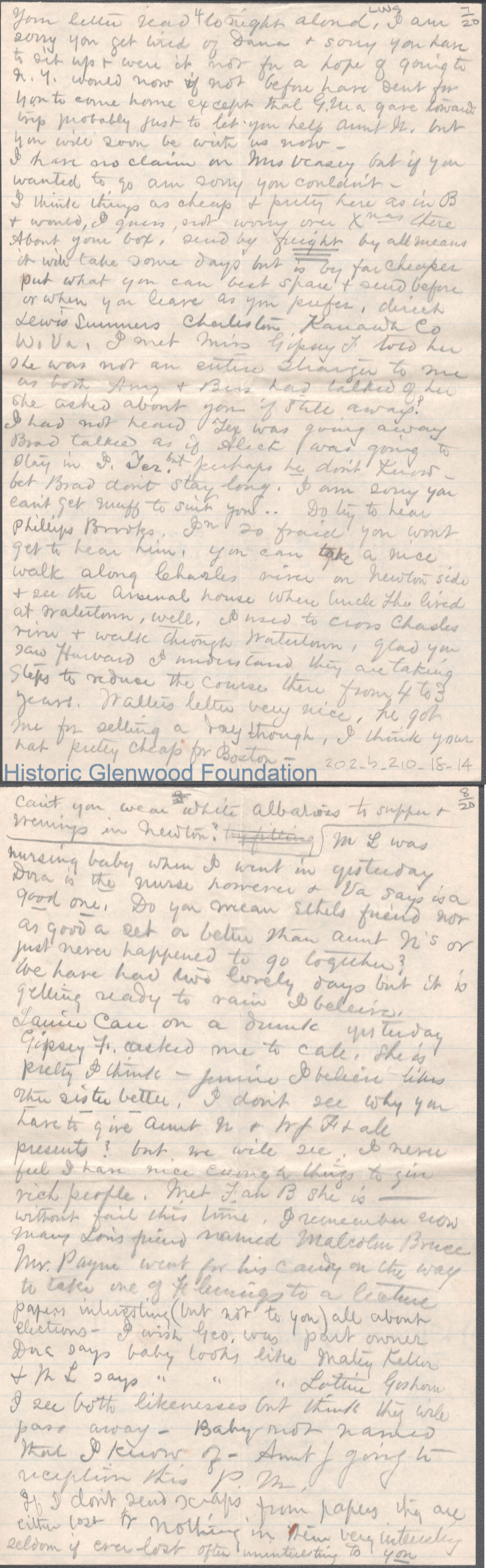 Twenty-page letter to Elizabeth S. Quarrier from mother Lucy W. Summers, no date.