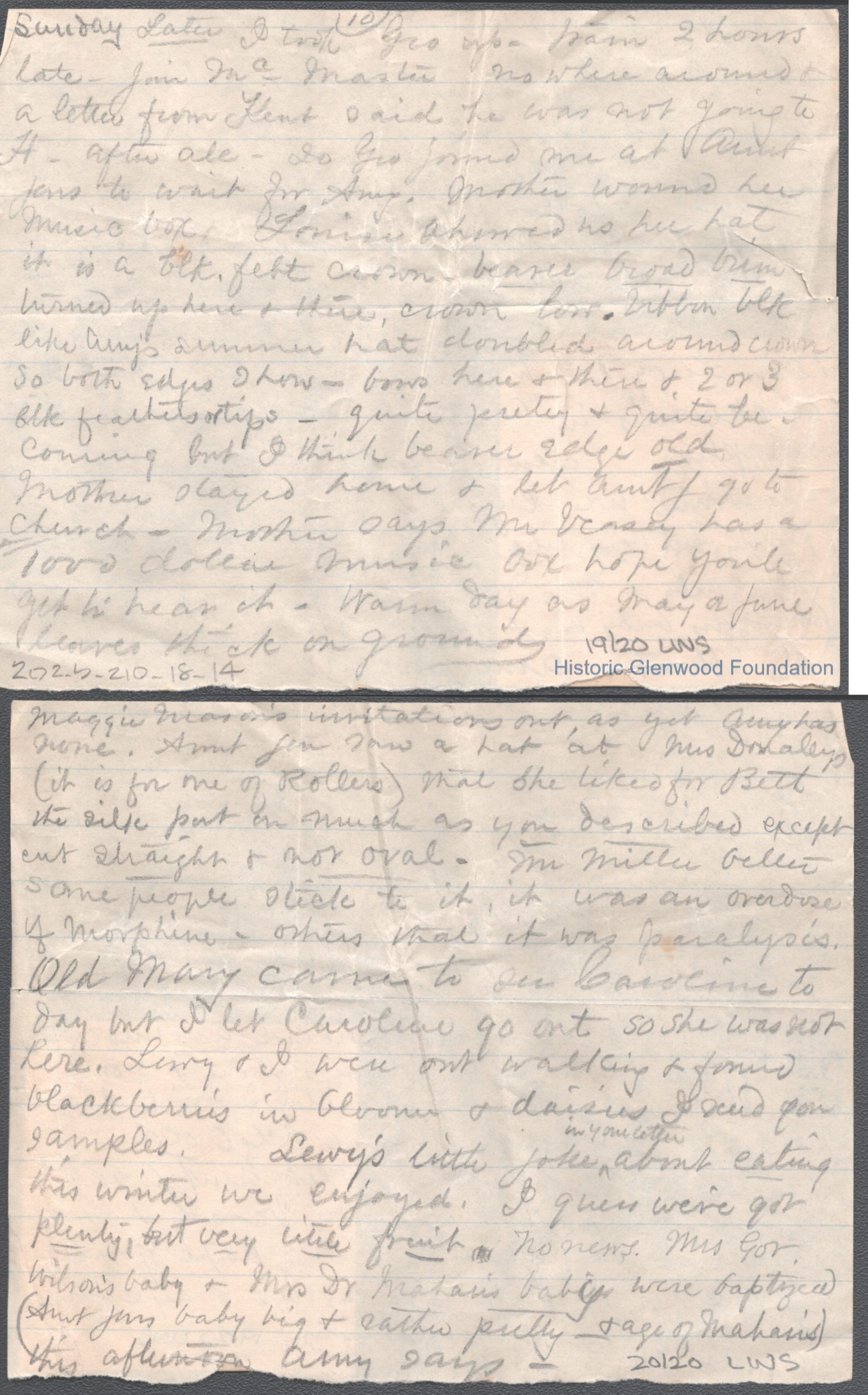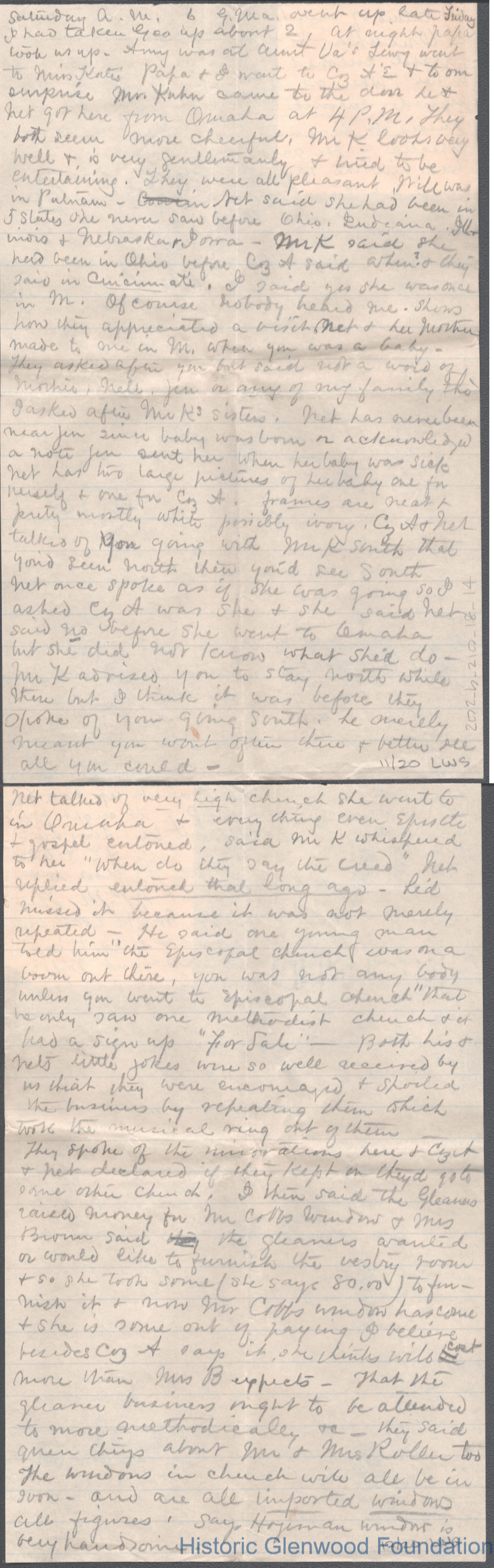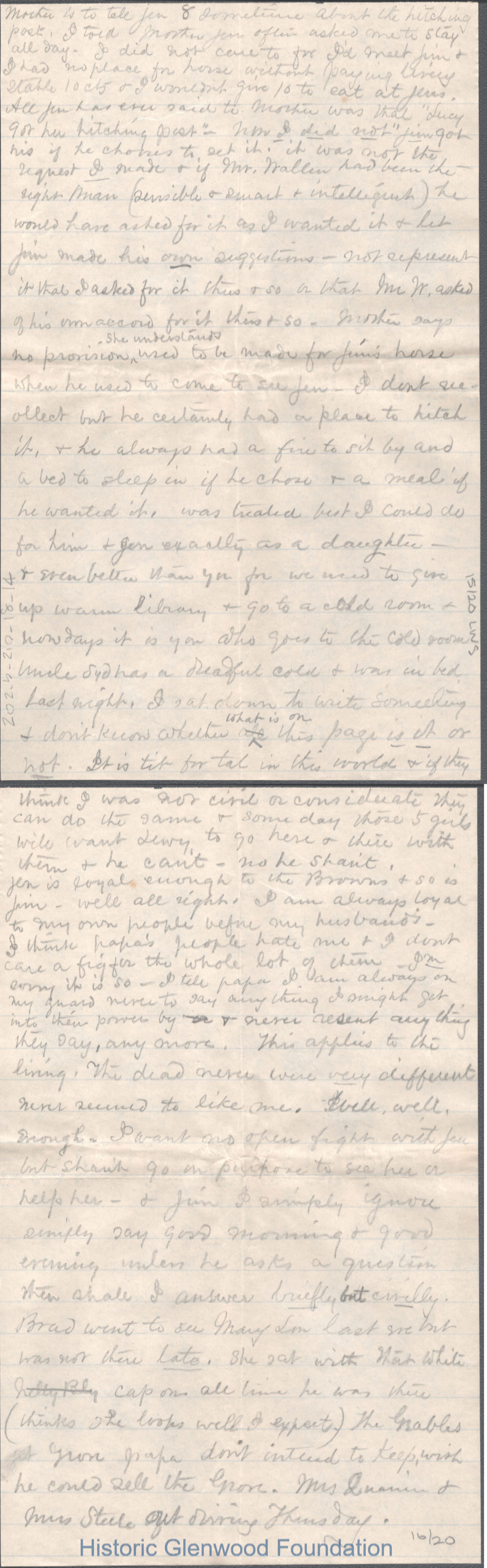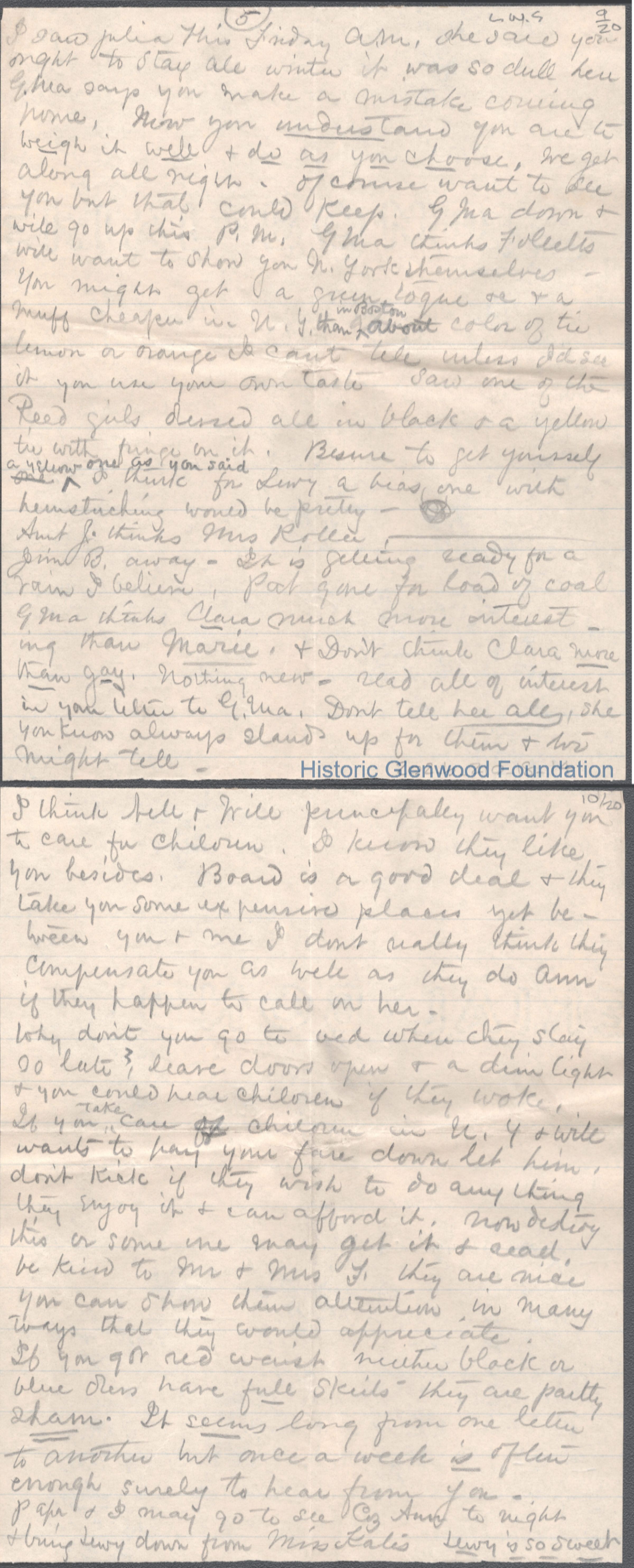Twenty-page letter to Elizabeth S. Quarrier from mother Lucy W. Summers, no date.