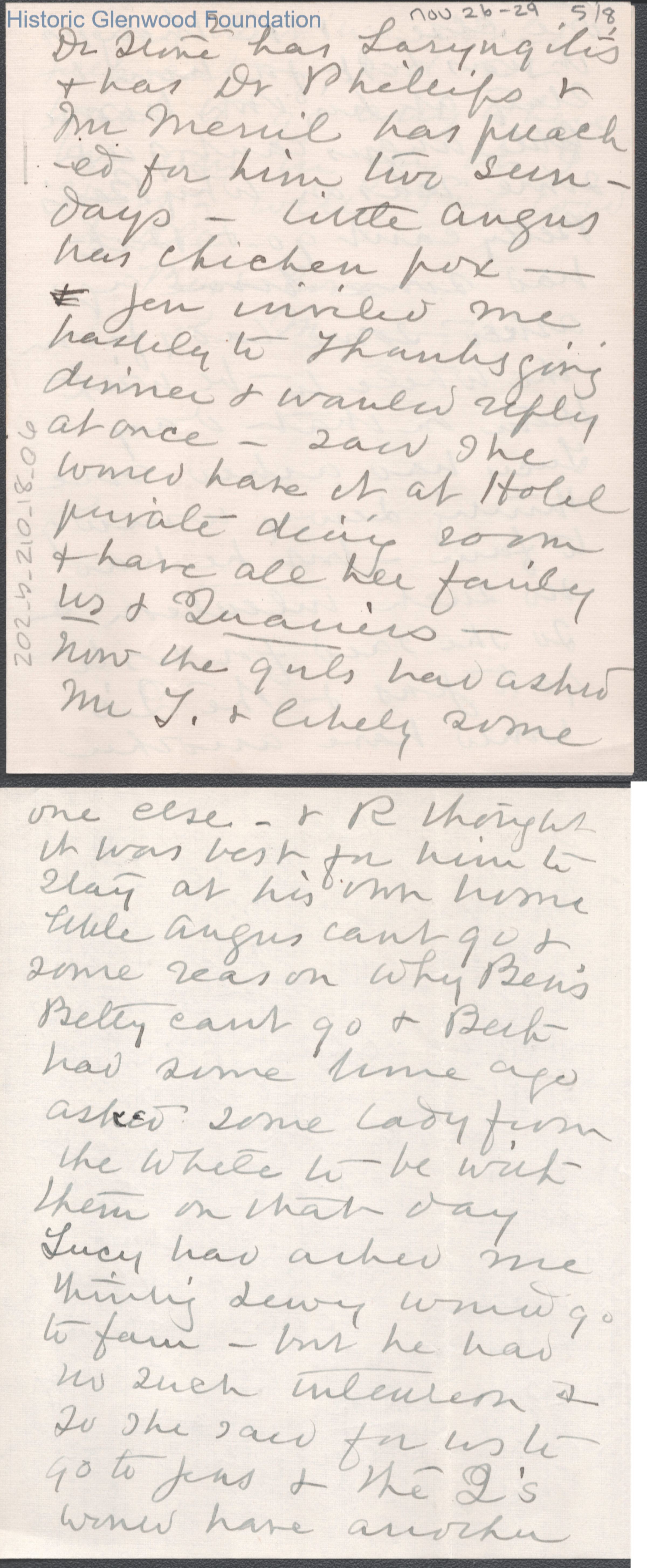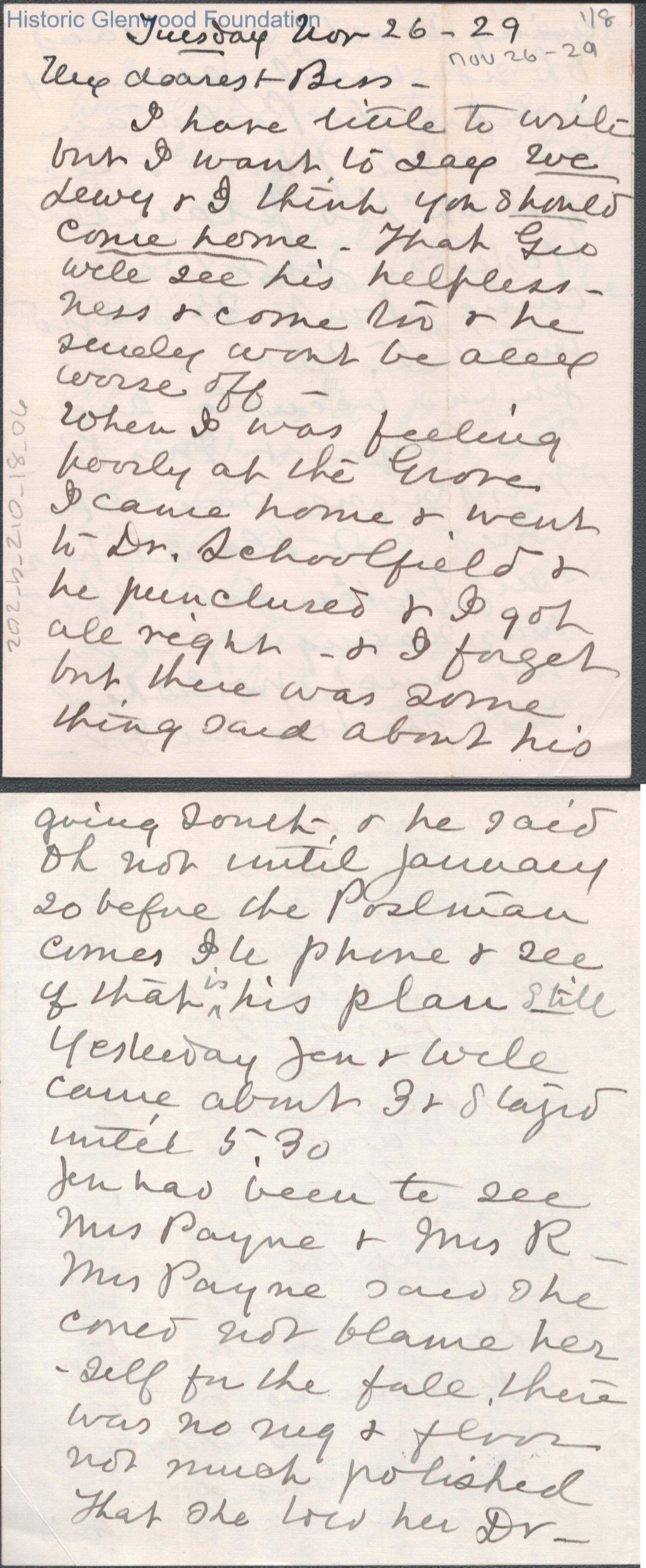 Eight-page letter to Elizabeth S. Quarrier from mother Lucy W. Summers, Nov 26, 1929.