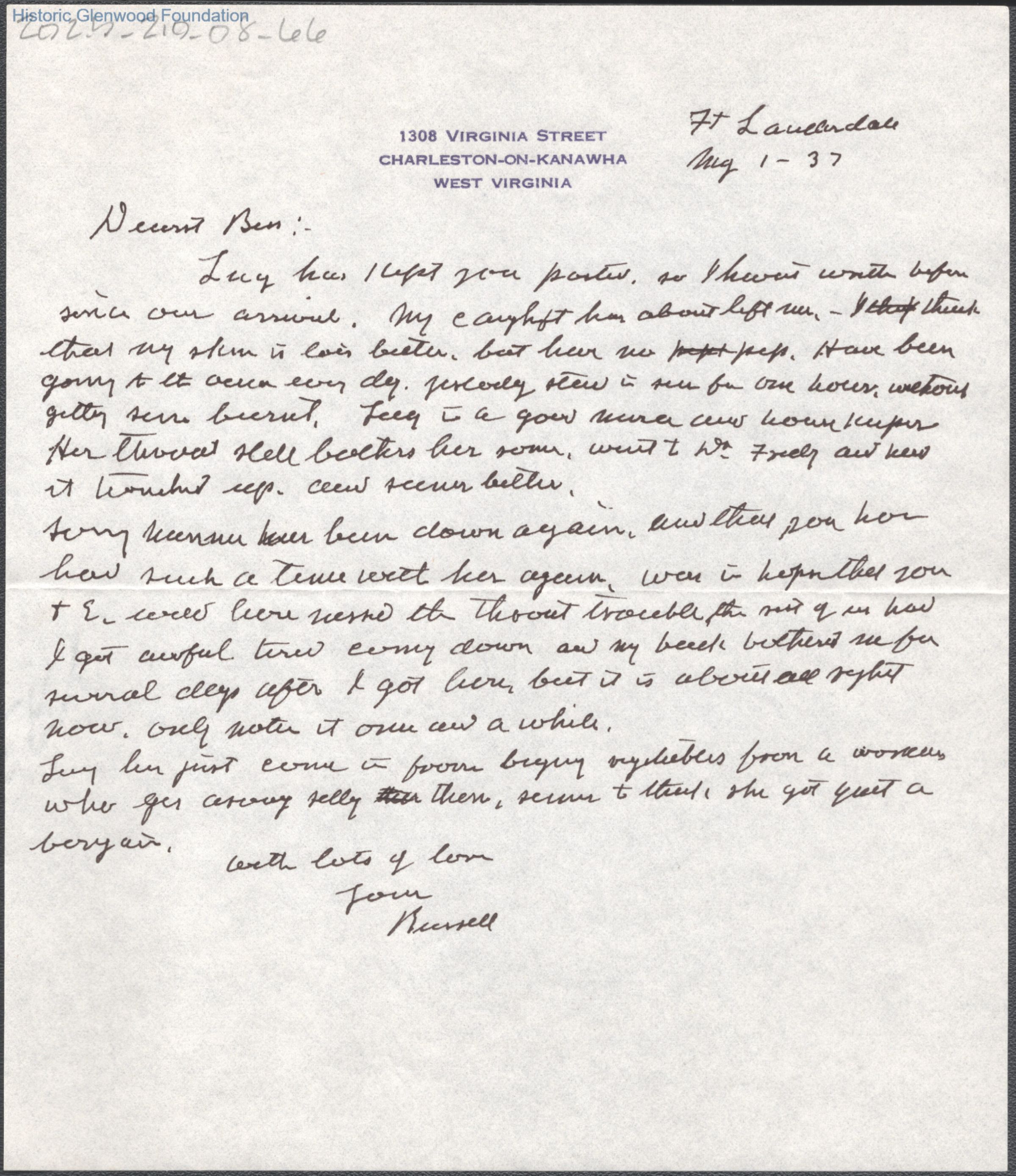 Elizabeth S. Quarrier from Russell G. Quarrier, Aug 1, 1937
