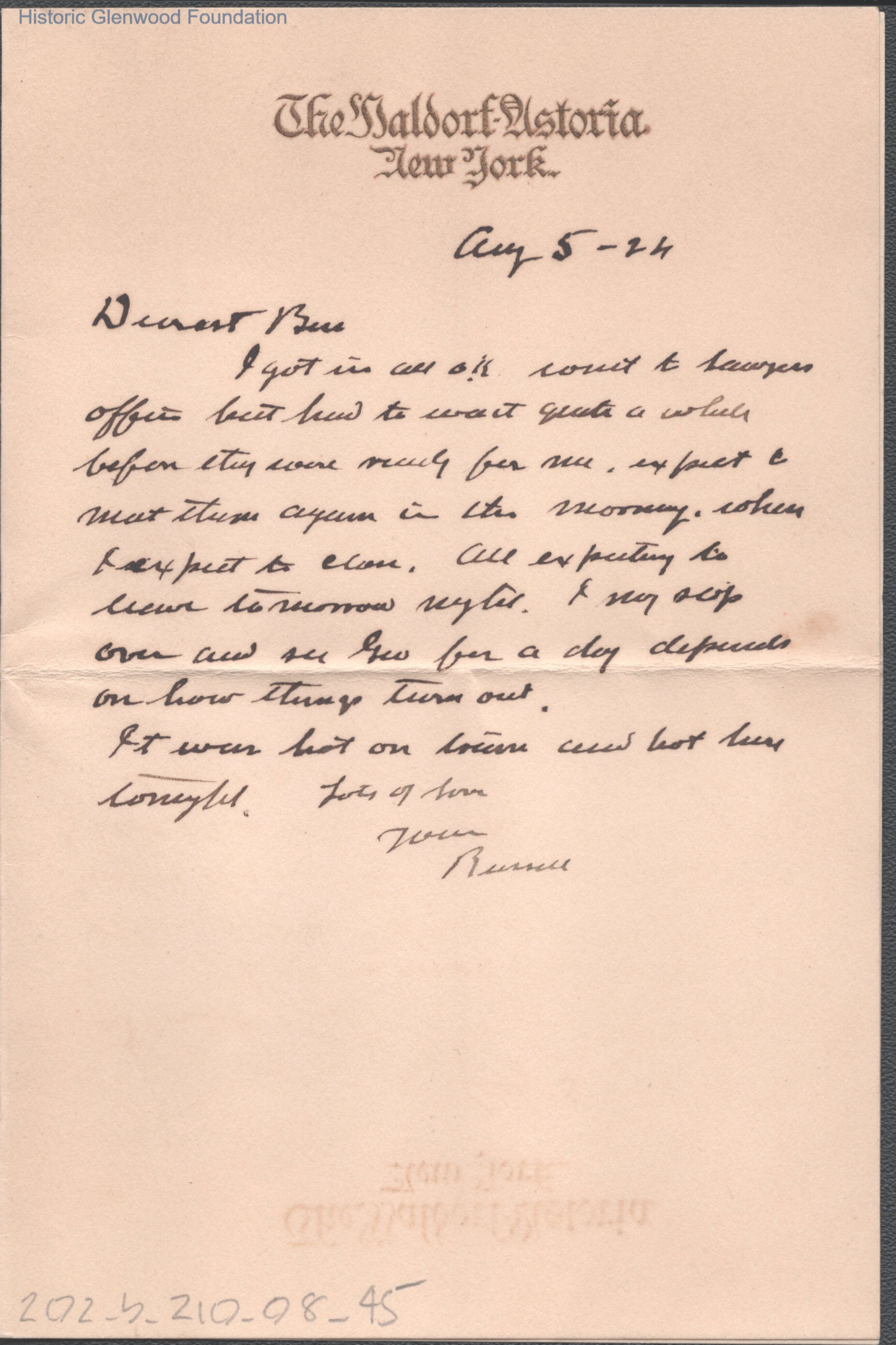 Elizabeth S. Quarrier from Russell G. Quarrier, Aug 5, 1924
