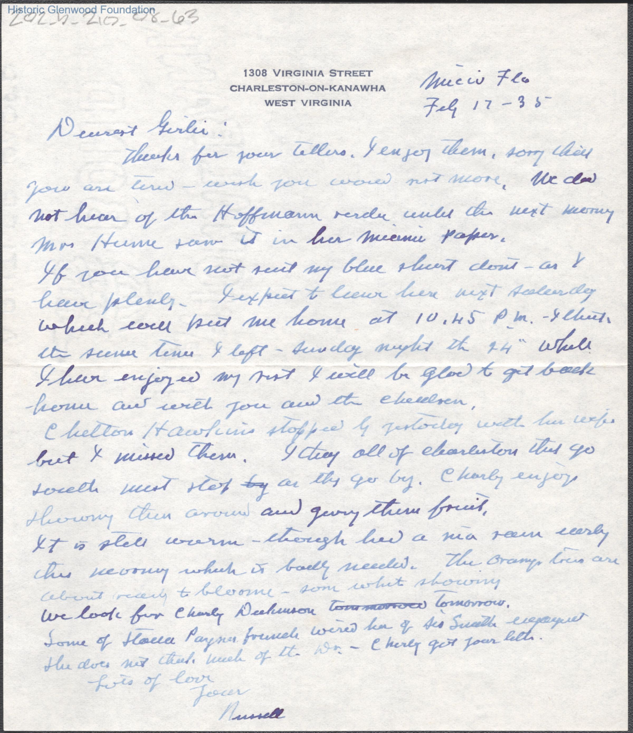 Elizabeth S. Quarrier from Russell G. Quarrier, Feb 17, 1935