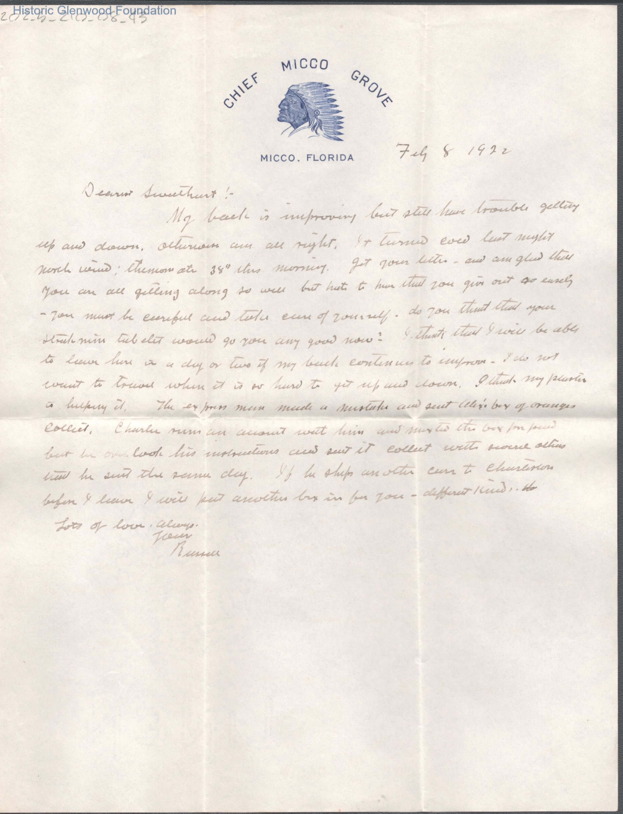 Elizabeth S. Quarrier from Russell G. Quarrier, Feb 8, 1922