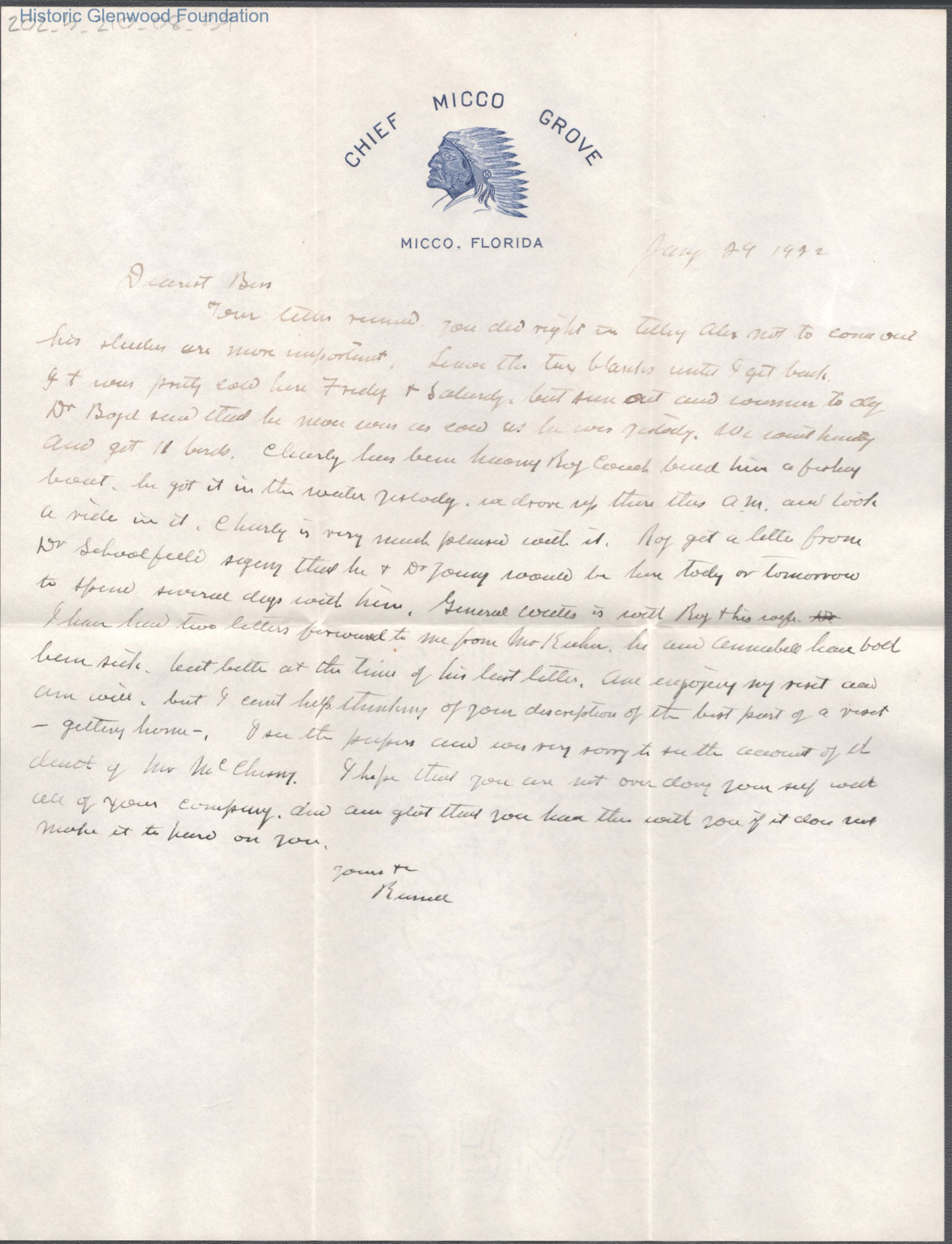 Elizabeth S. Quarrier from Russell G. Quarrier, Jan 29, 1922