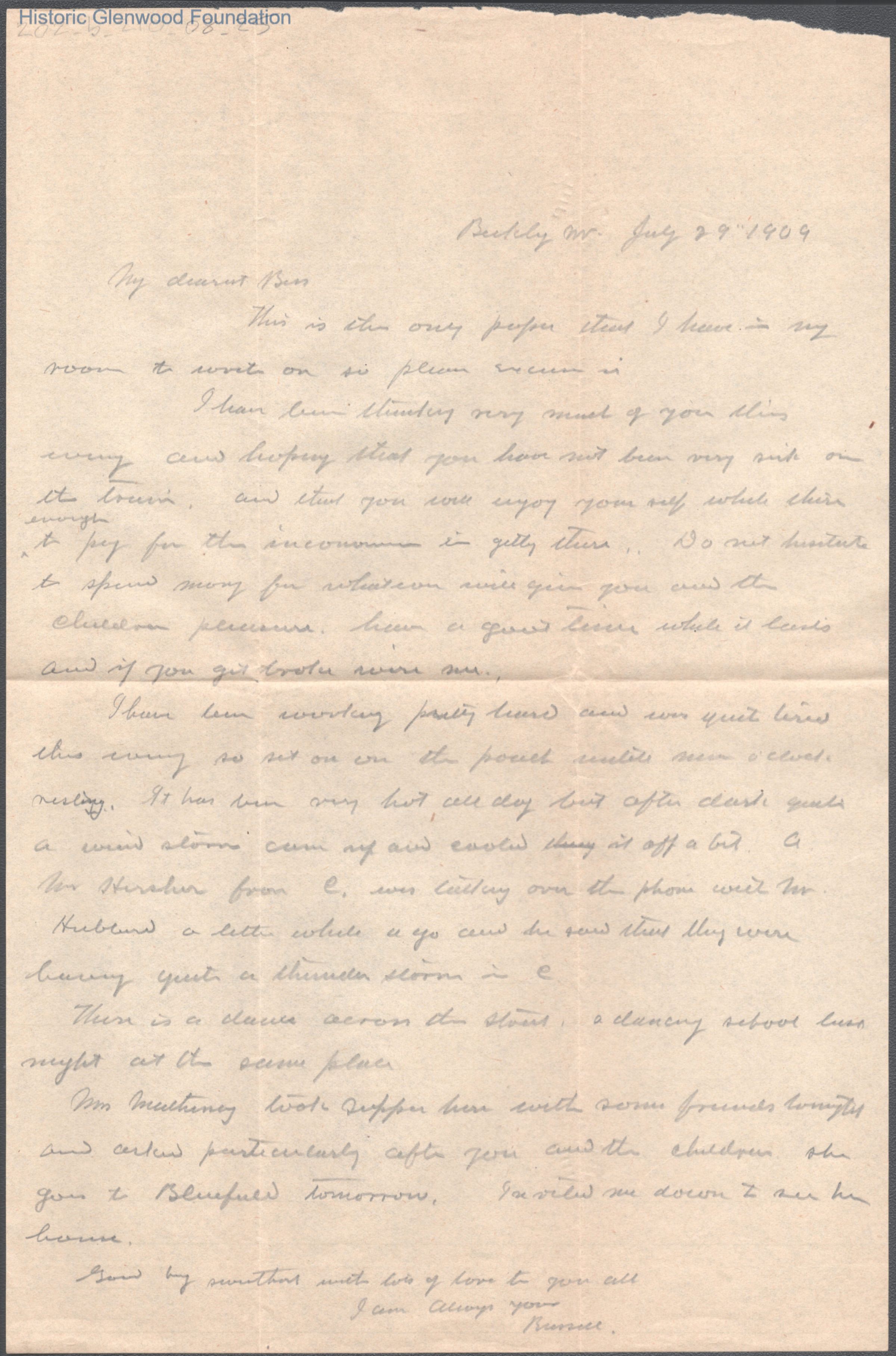 Elizabeth S. Quarrier from Russell G. Quarrier, Jul 29, 1909