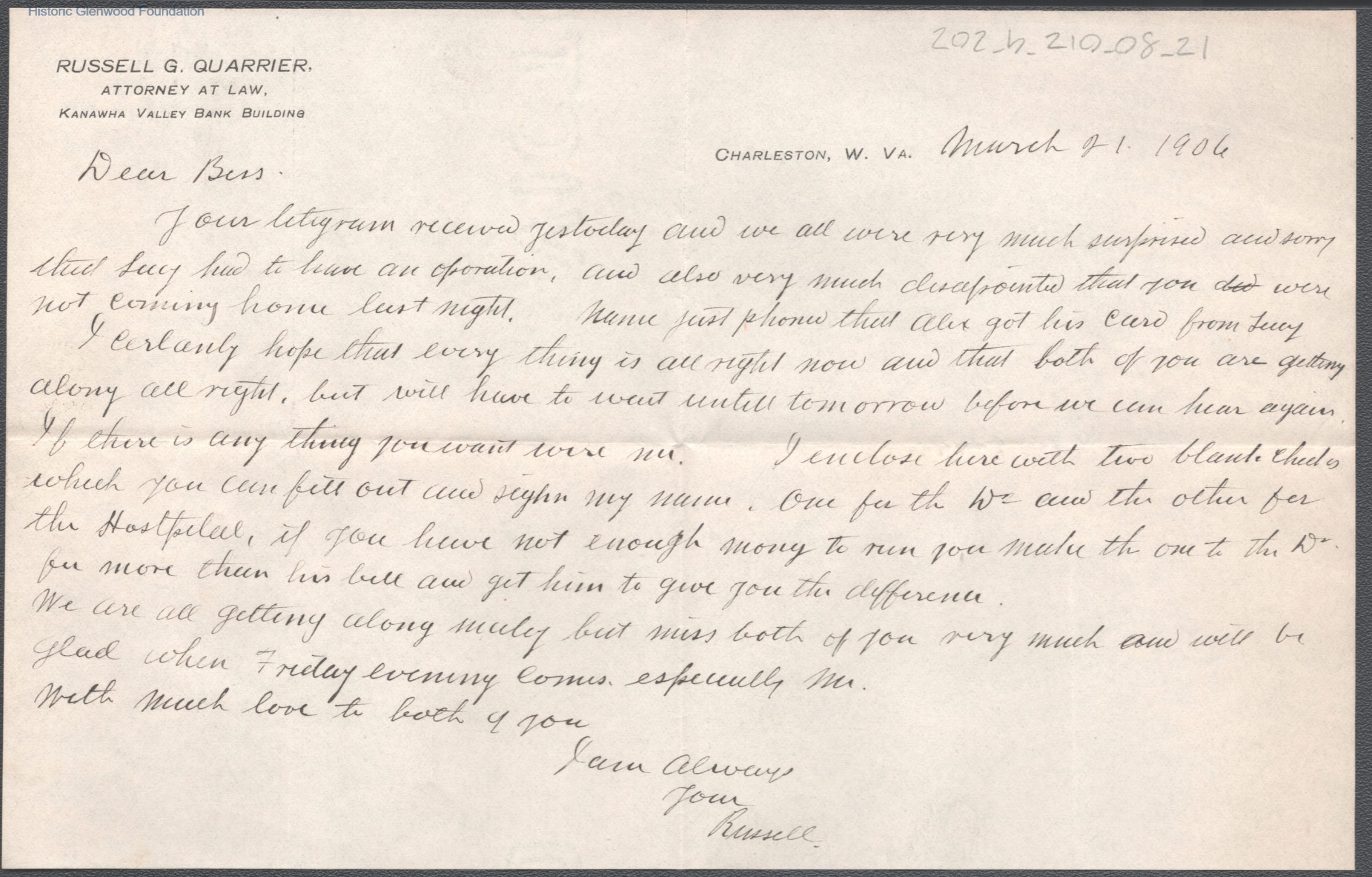 Elizabeth S. Quarrier from Russell G. Quarrier, Mar 21, 1906