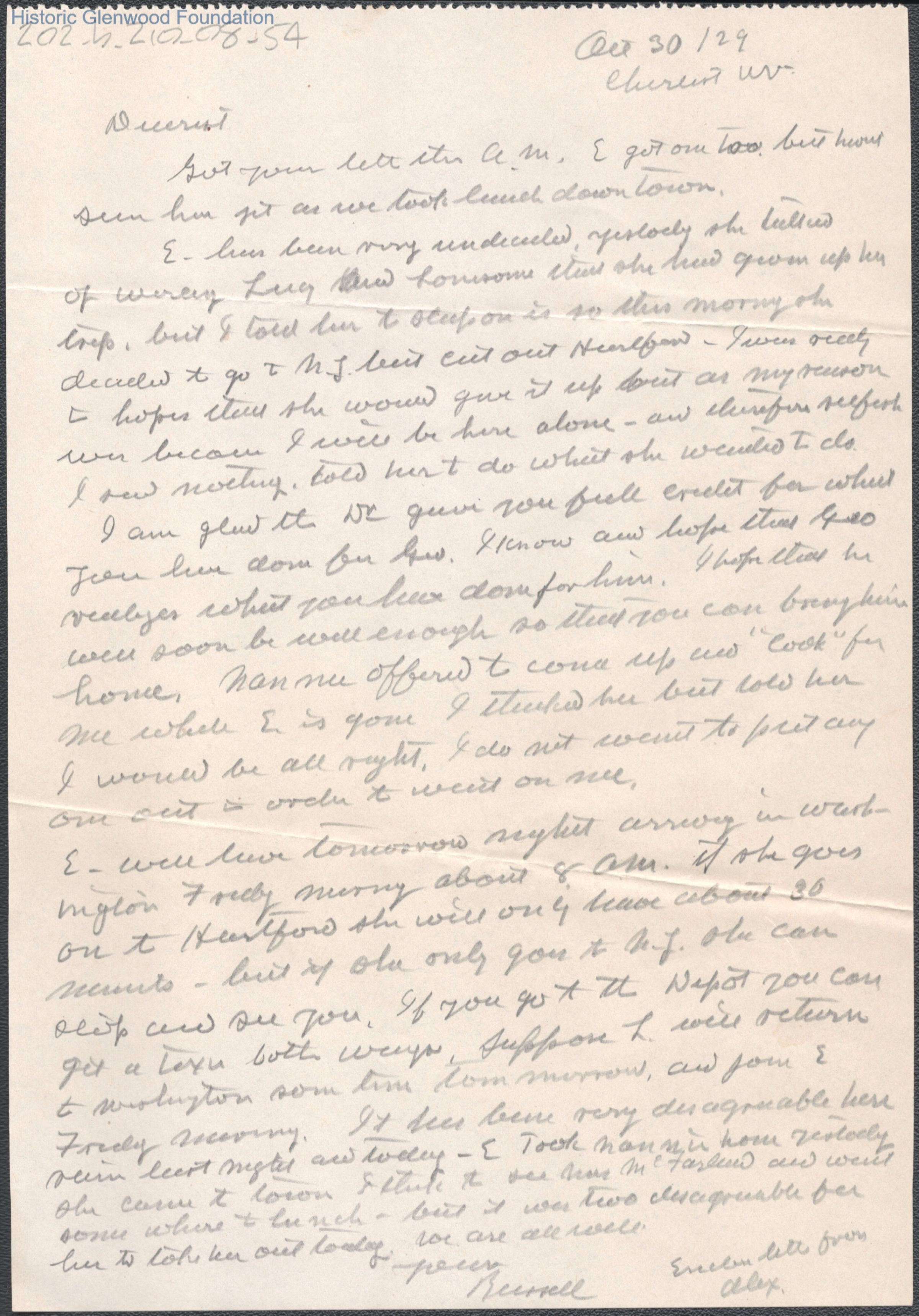 Single page letter to Elizabeth S. Quarrier from Russell G. Quarrier, Oct 30, 1929.