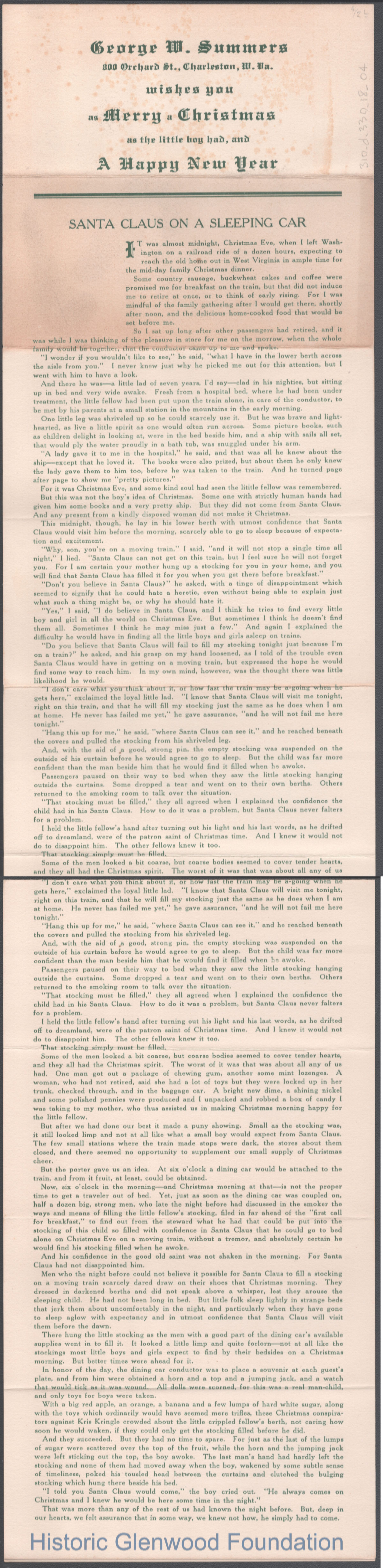 George W. Summers, Christmas greeting, no date