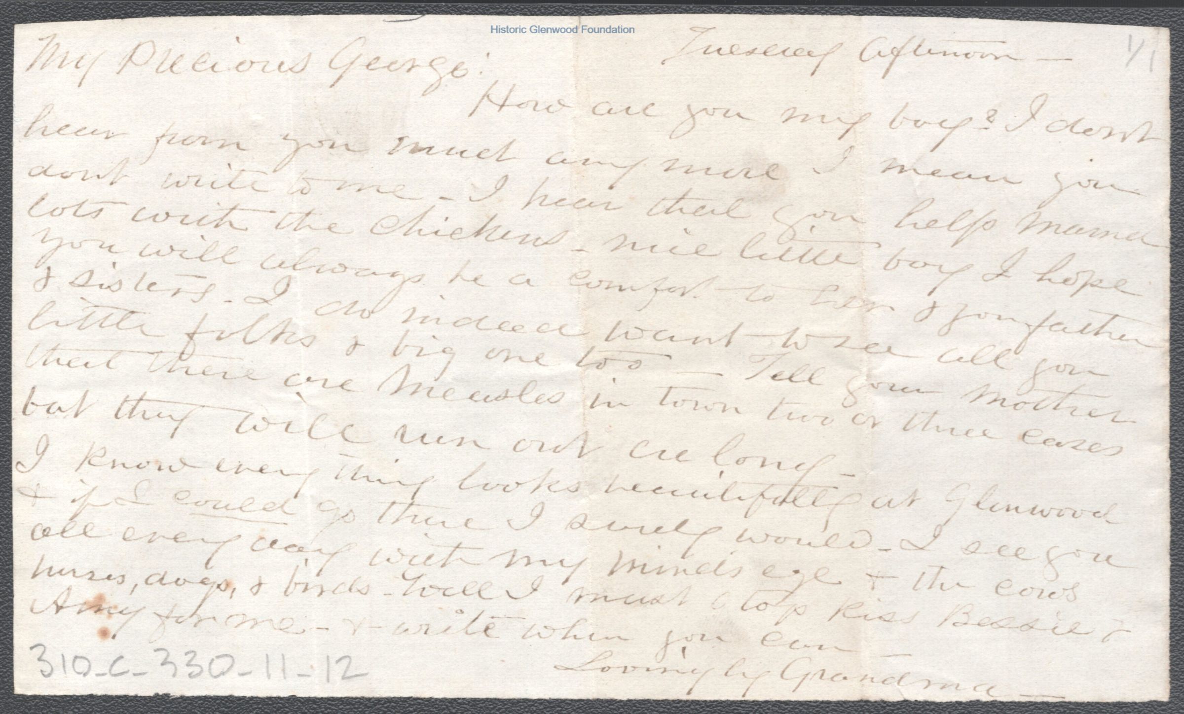 Single page letter to George W. Summers from his grandmother Abigail E. Woodbridge, no date.