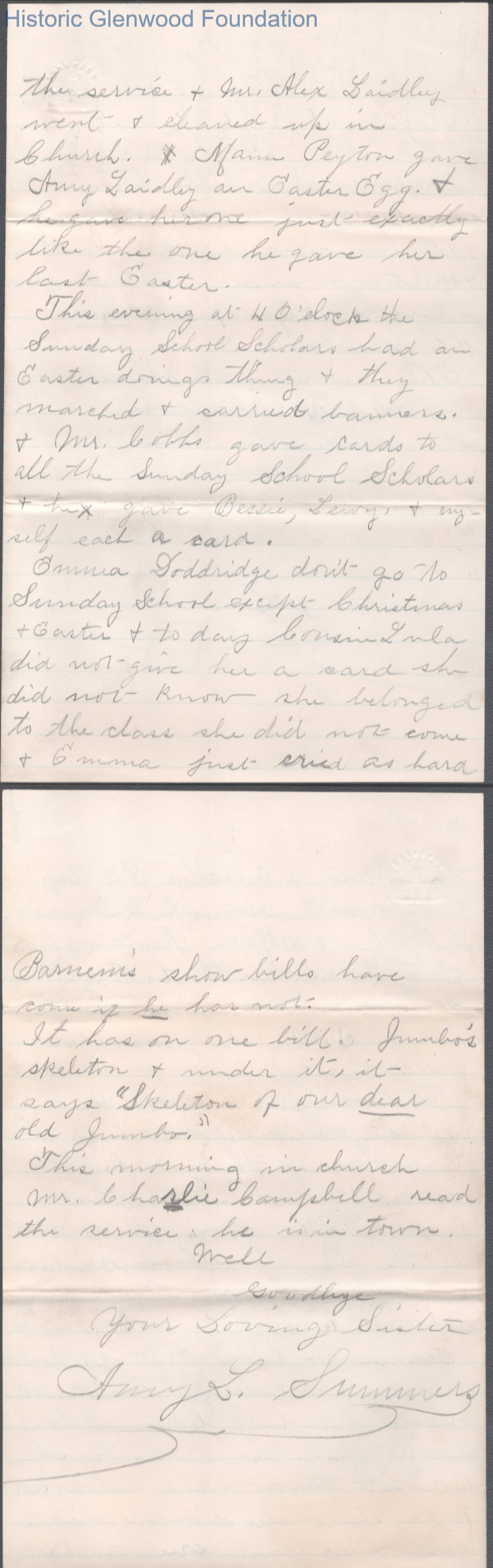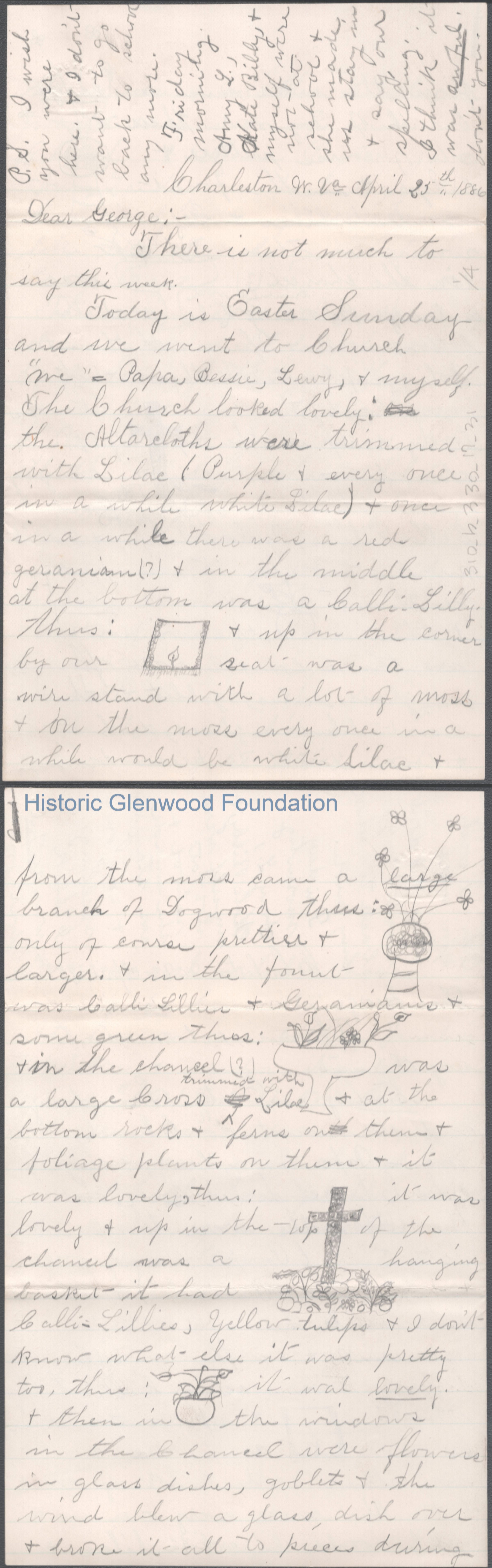 Four-page letter to George W. Summers from his sister Amacetta Summers, Apr 25, 1886.