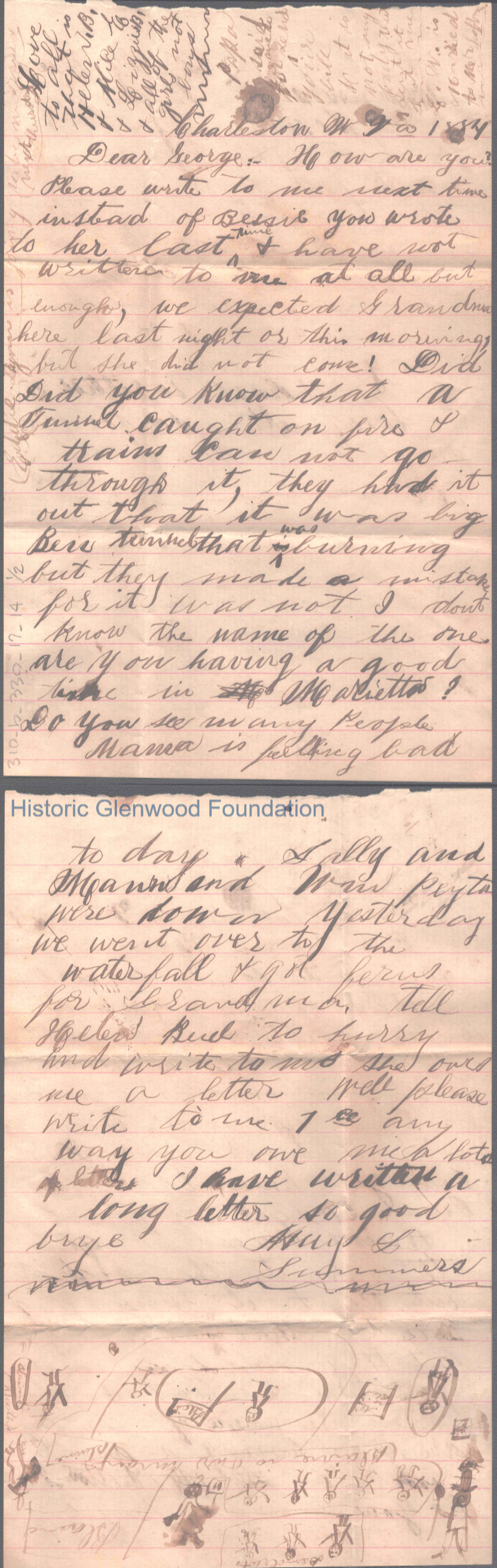 Two-page letter to George W. Summers from his sister Amacetta Summers, c. 1884.