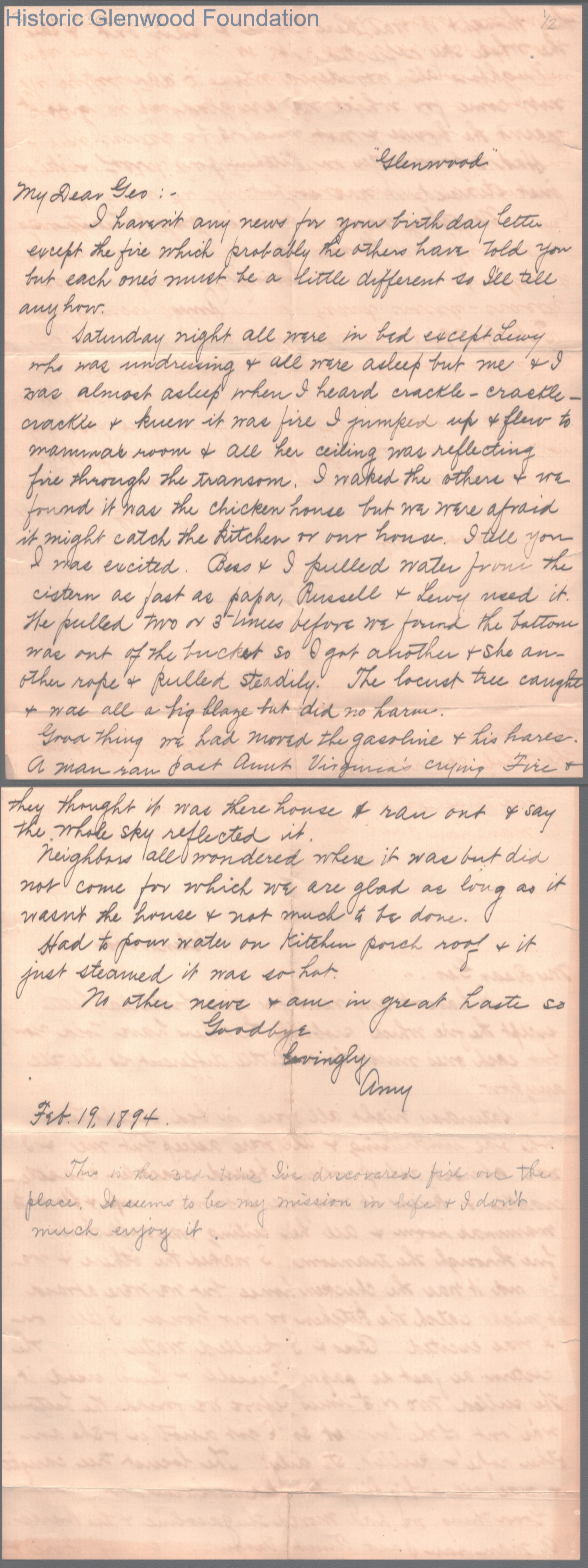 George W. Summers from Amacetta Summers, Feb 19, 1894