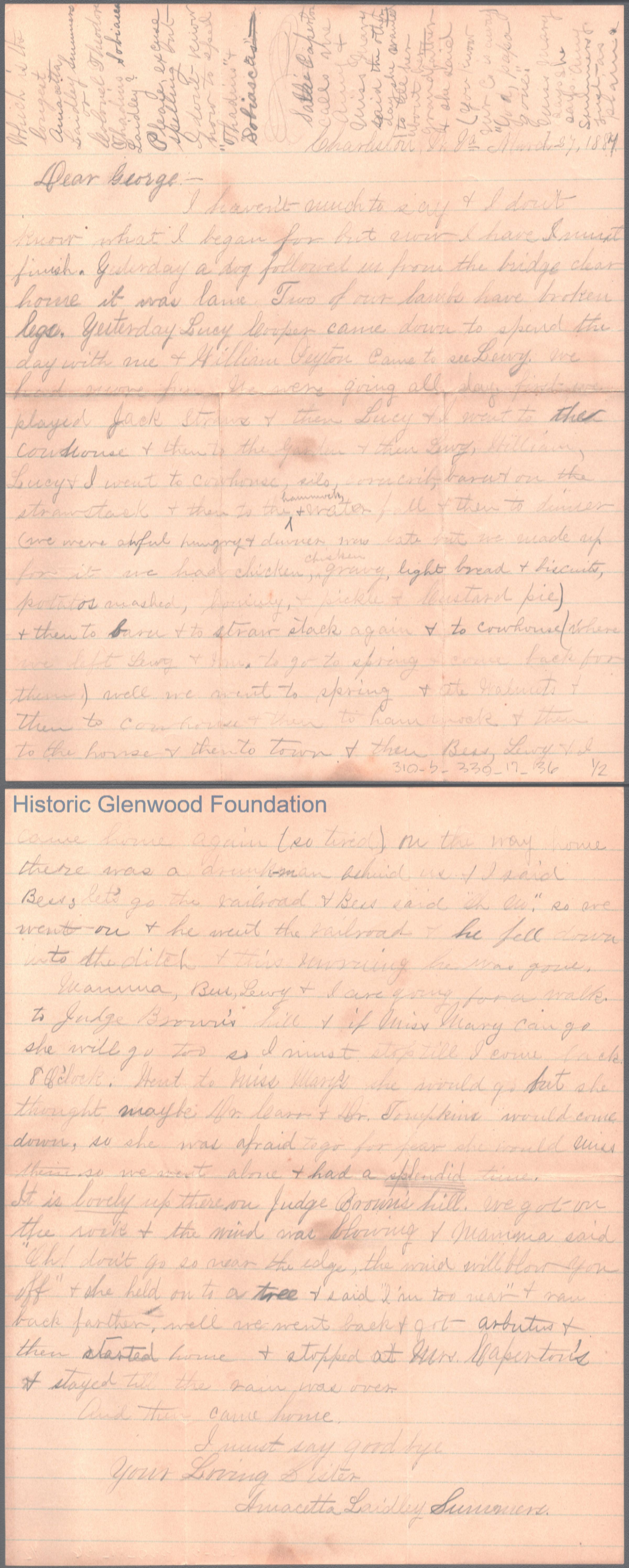 Two-page letter to George W. Summers from his sister Amacetta Summers, Mar 27, 1887.