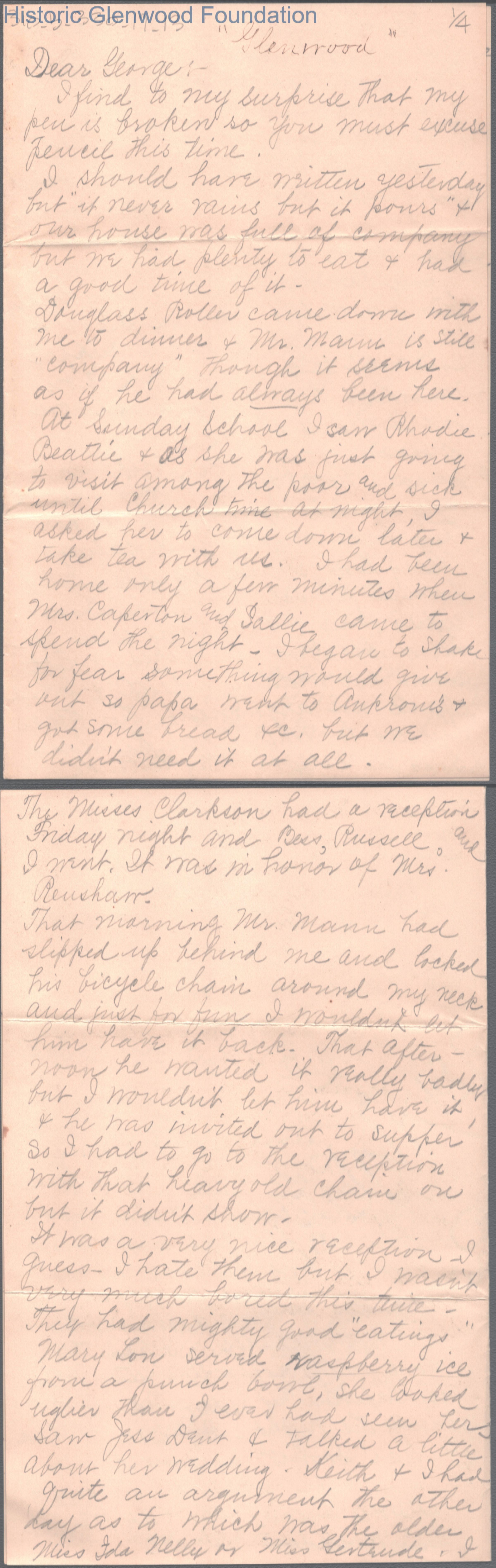 Four-page letter to George W. Summers from his sister Amacetta Summers, no date.