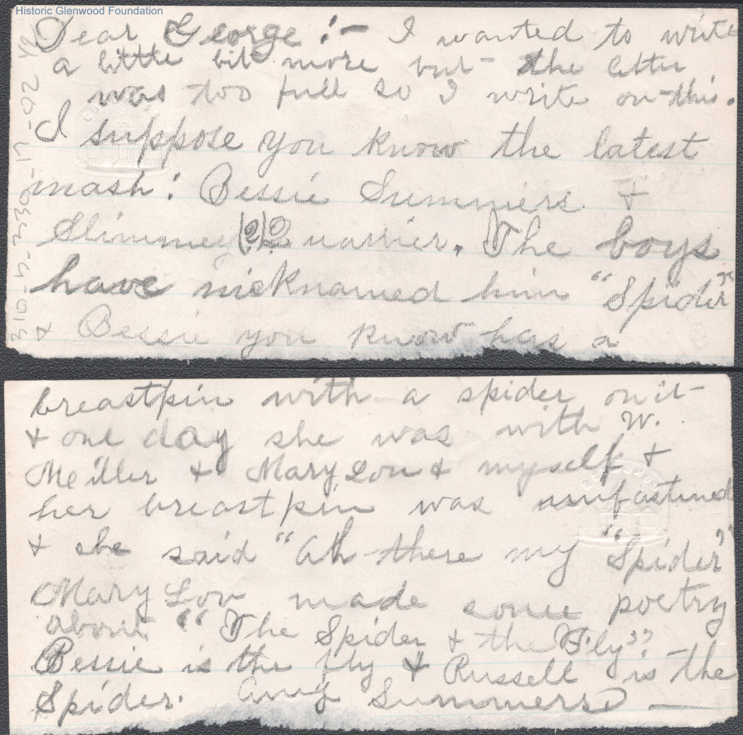 George W. Summers from Amacetta Summers, no date