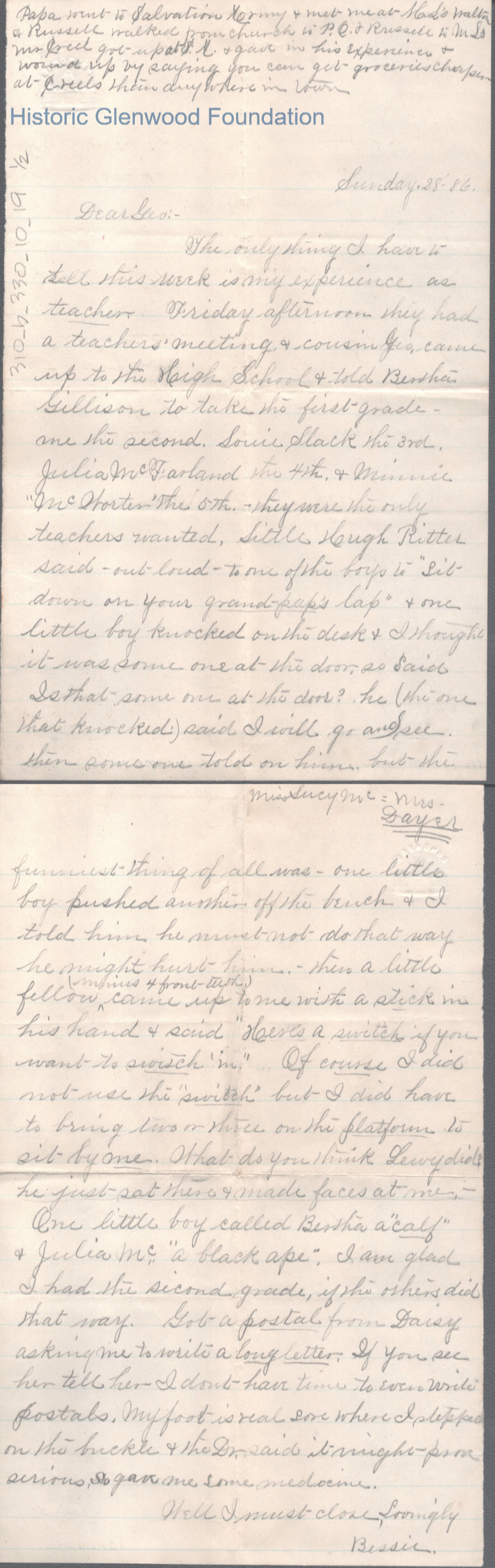 Two-page letter to George W. Summers from his sister Elizabeth S. Quarrier, c. 1886.