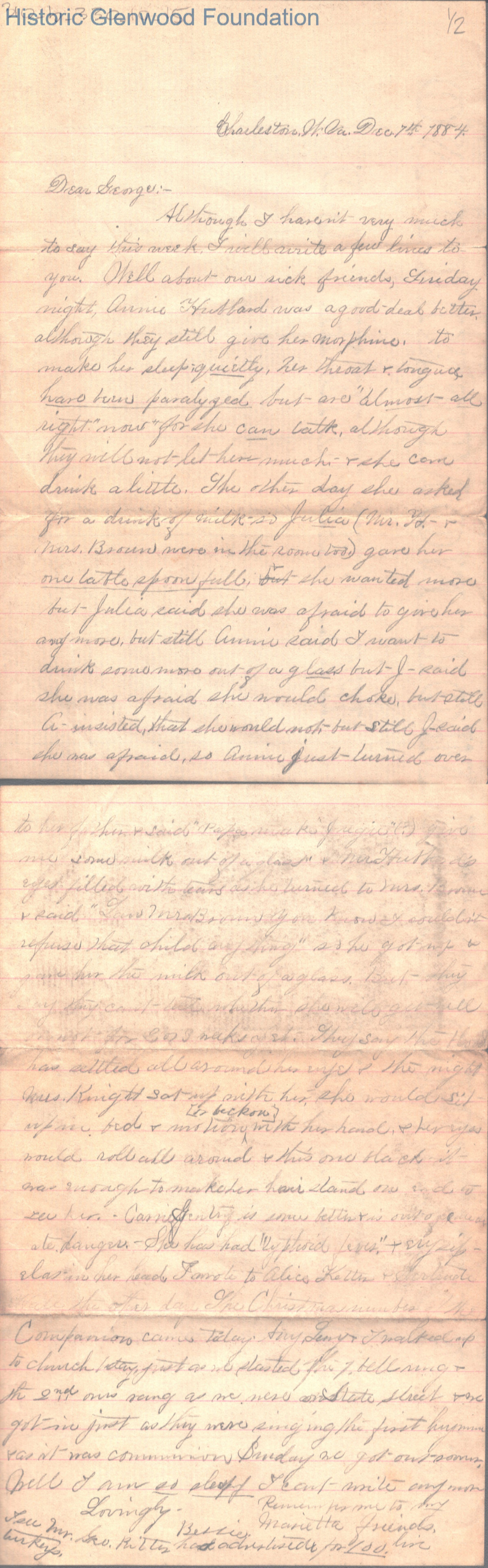 Two-page letter to George W. Summers from his sister Elizabeth S. Quarrier, Dec 7, 1884.